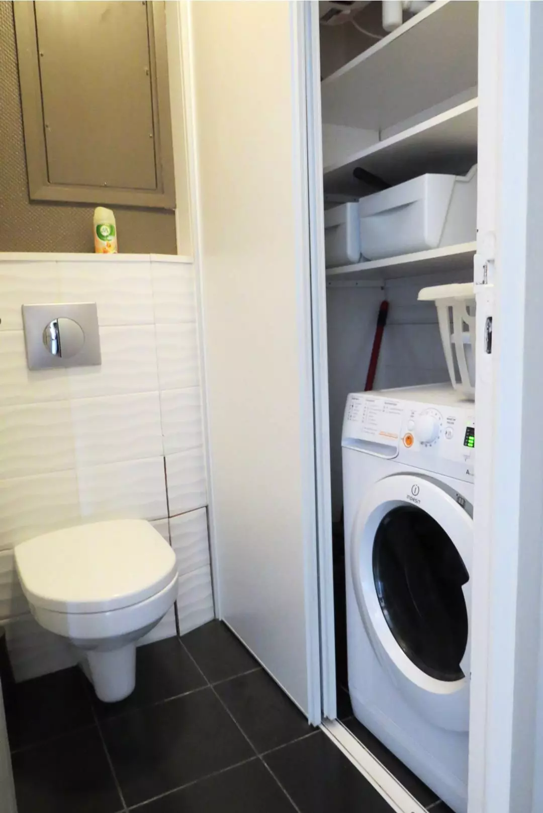 WC séparé avec lave-linge et placard de rangement