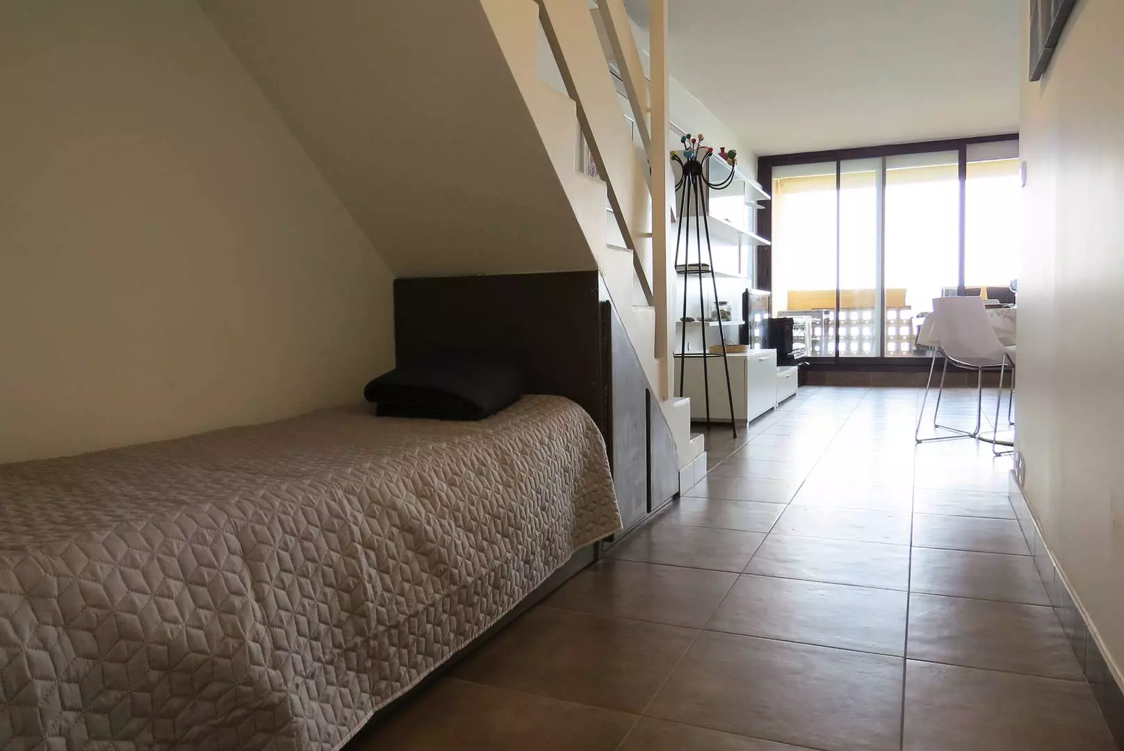 Dégagement avec deux lits simples en tiroir (90 cm)