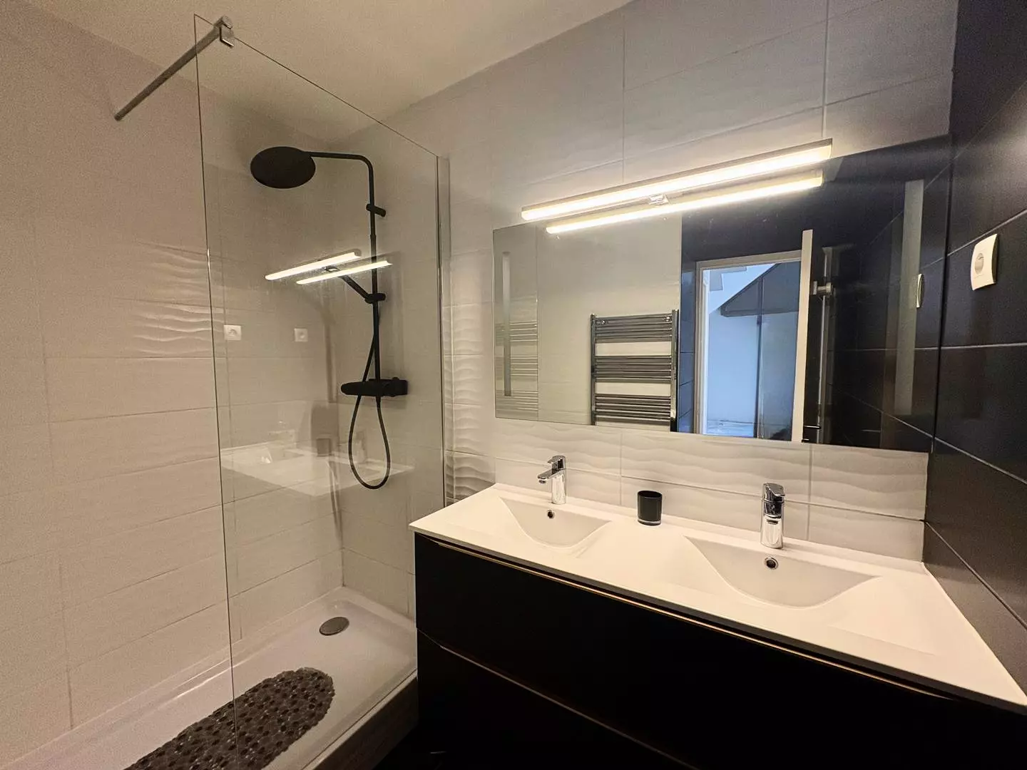 Salle d’eau avec double vasque et douche