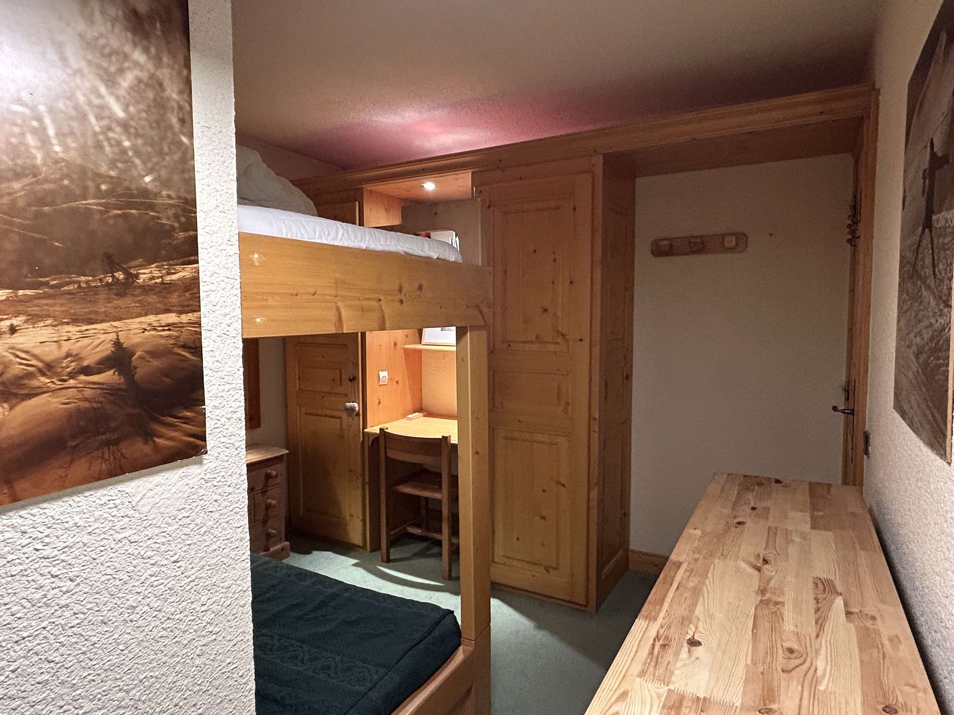 Cet appartement à la montagne, accessible par l'entrée A, situé au 3ème étage avec ascenseur comprend une cuisine équipée ouverte sur le séjour donnant sur un balcon loggia ouest, un salon avec télévision, une chambre 1 lit 2 personnes en 140x190 fermée par une porte coulissante, une chambre avec un lit double en 140x190, une alcôve ouverte sur couloir avec un 1 ensemble de lits superposés en 80x190, une salle de bain, un WC indépendant et un casier à ski à l'entrée de la résidence.