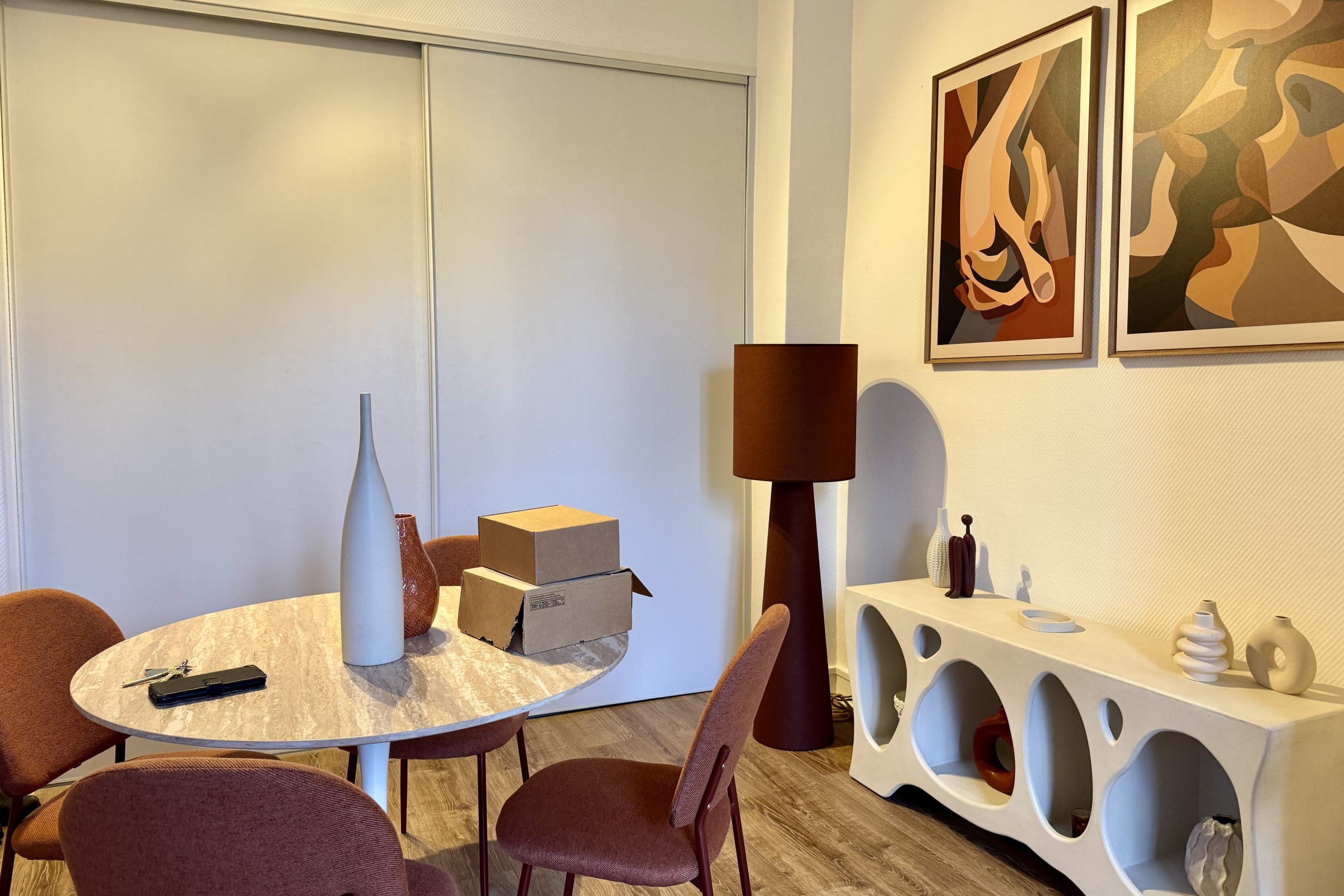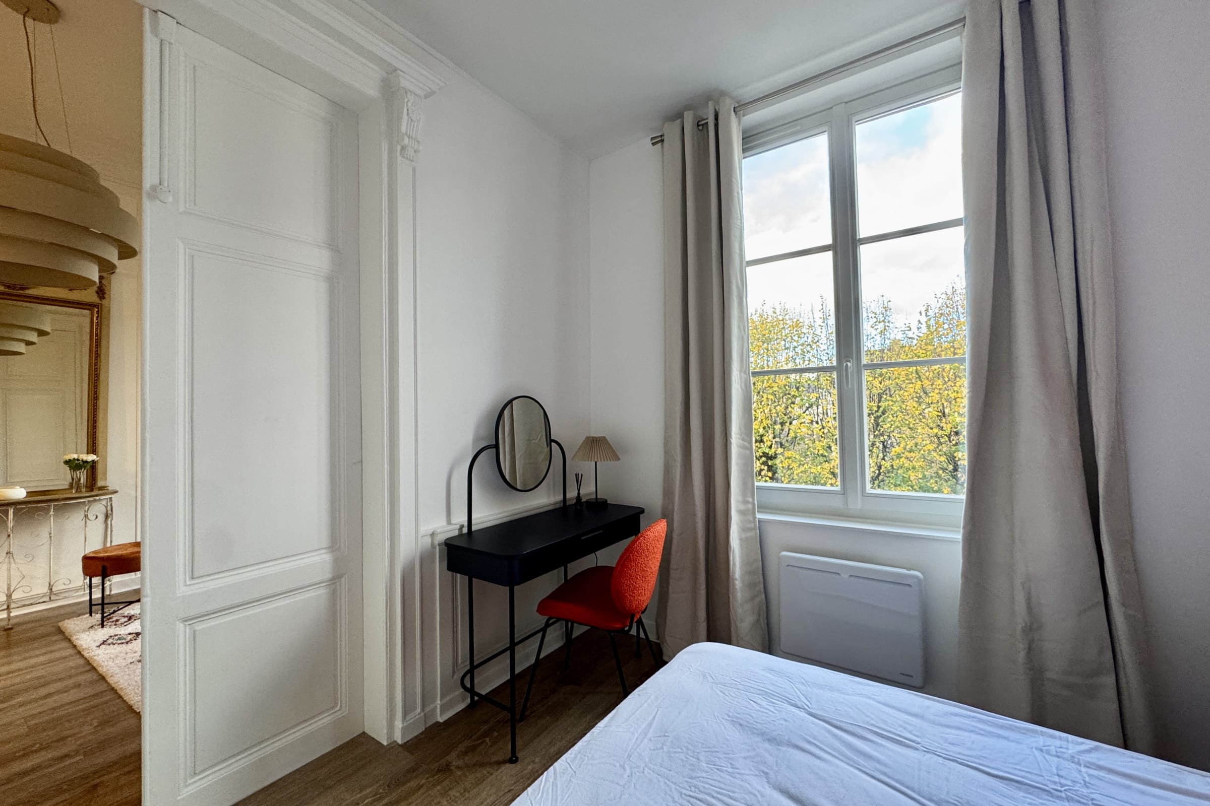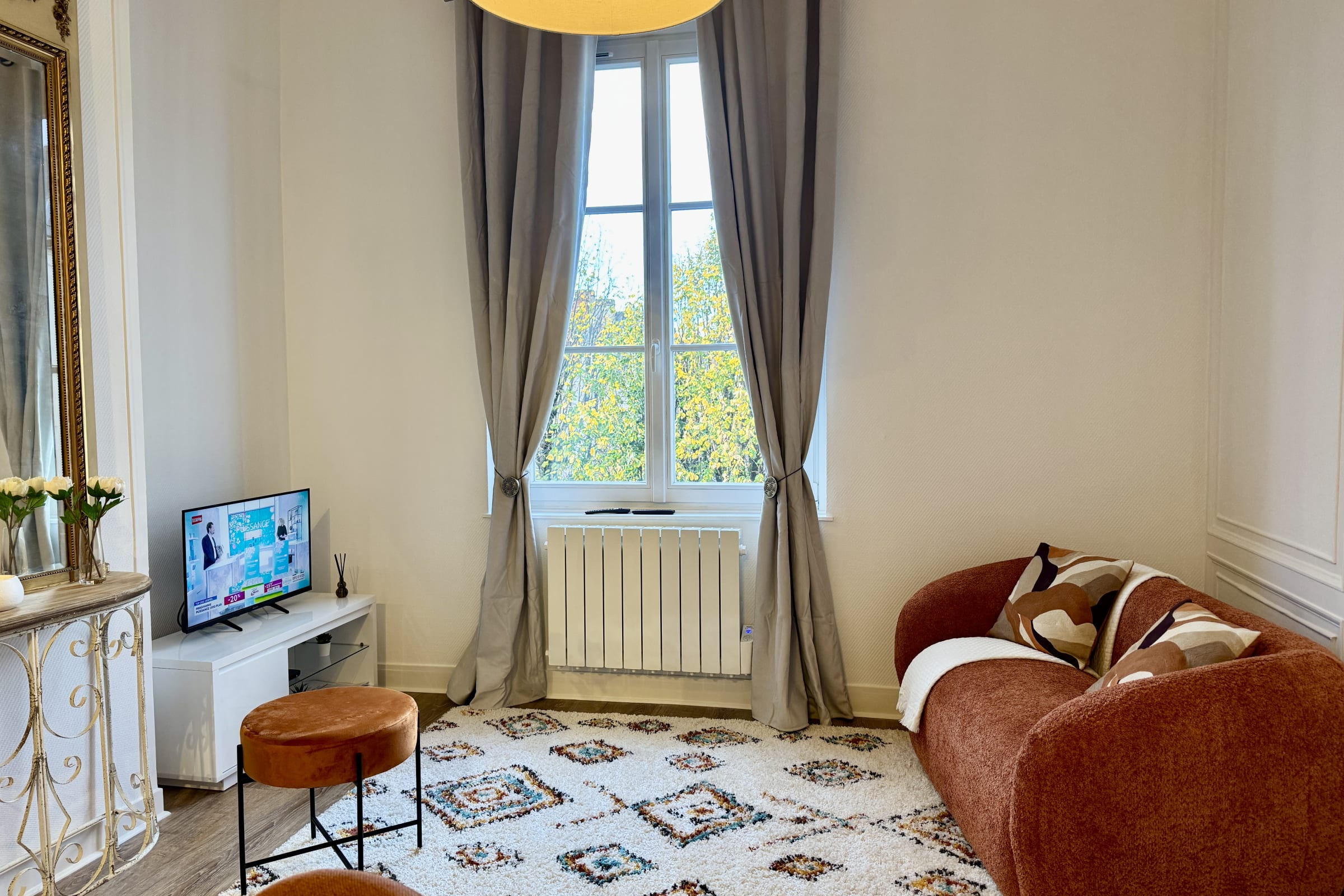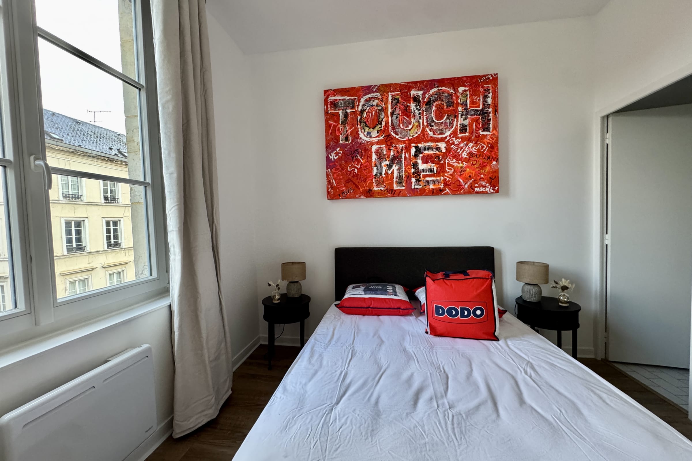 Bienvenue dans ce magnifique appartement niché directement sur la célèbre Place des Carmes, en hyper centre de Rouen. Installé au 3ᵉ étage d’un ancien hôtel particulier, ce cocon de 36 m² à l’ambiance soignée et contemporaine est parfaitement conçu pour accueillir deux voyageurs en quête de charme, de douceur et de tranquillité. Dès que vous franchissez la porte, la lumière vous accueille : la belle hauteur sous plafond et l’exposition sud-ouest inondent l’espace d’une clarté chaleureuse, du matin jusqu’aux derniers rayons du soleil. Depuis le séjour, il vous suffit de vous approcher de la fenêtre pour sentir la ville vivre sous vos yeux : la Place des Carmes s’anime au rythme des passants et, en levant les yeux, le sommet de la Cathédrale de Rouen se découpe fièrement dans le ciel rouennais.