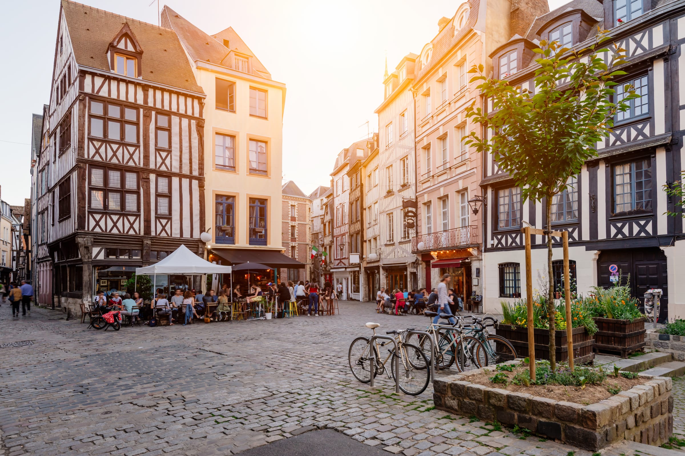 En flânant autour de la place, vous traverserez des rues pavées bordées de maisons à pans-de-bois, typiques de la ville. La Rue des Carmes, piétonne et pleine de vie, vous mènera naturellement vers les grands monuments du centre historique : la majestueuse cathédrale Notre-Dame, l’atmosphère médiévale du quartier Saint-Maclou et les ruelles secrètes qui font de Rouen.