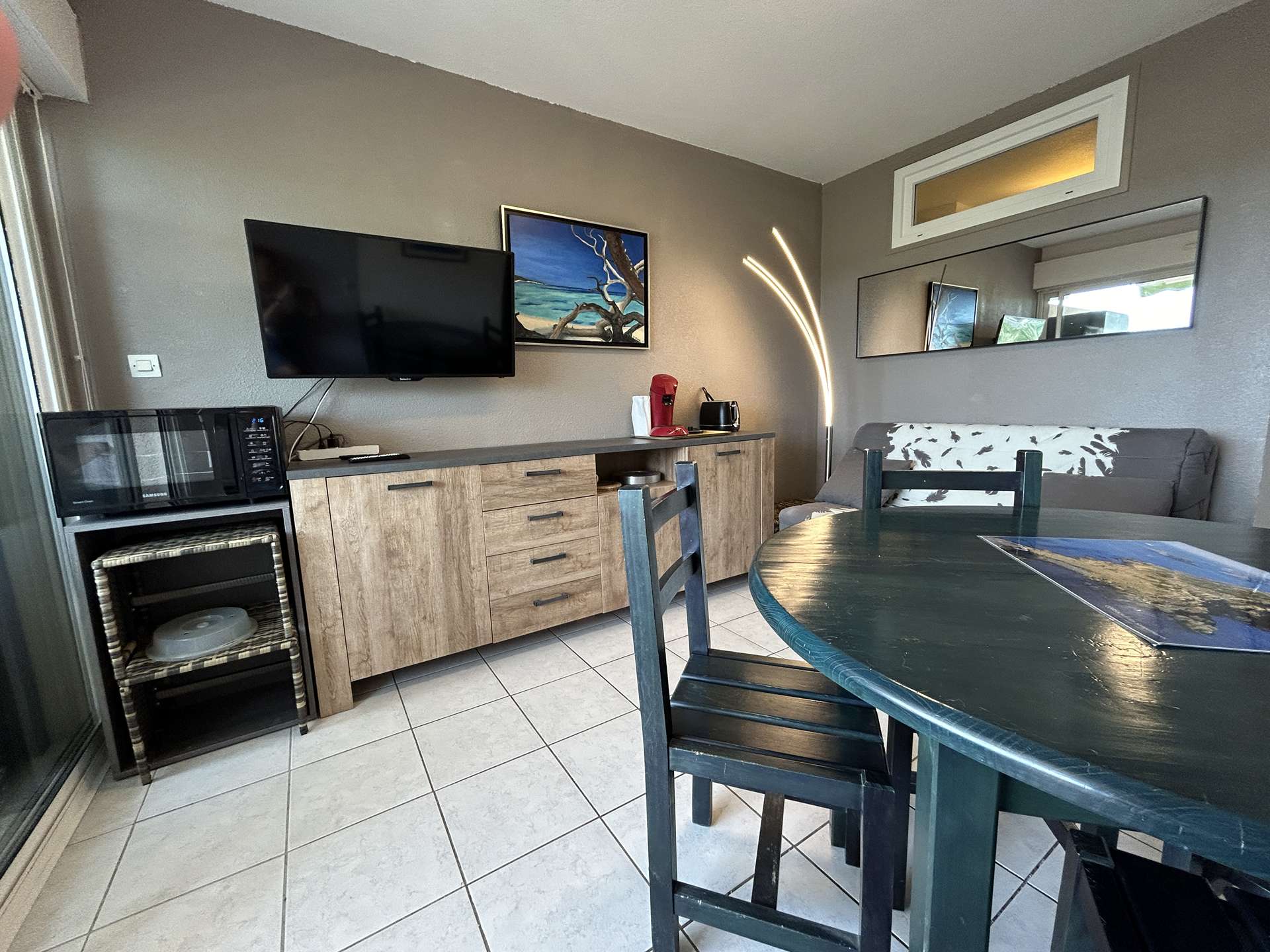 Les "plus" de cette location vacances dans le sud : un quartier calme, une résidence avec piscine collective et parking privé.La plage est a 10 minutes a pied.
