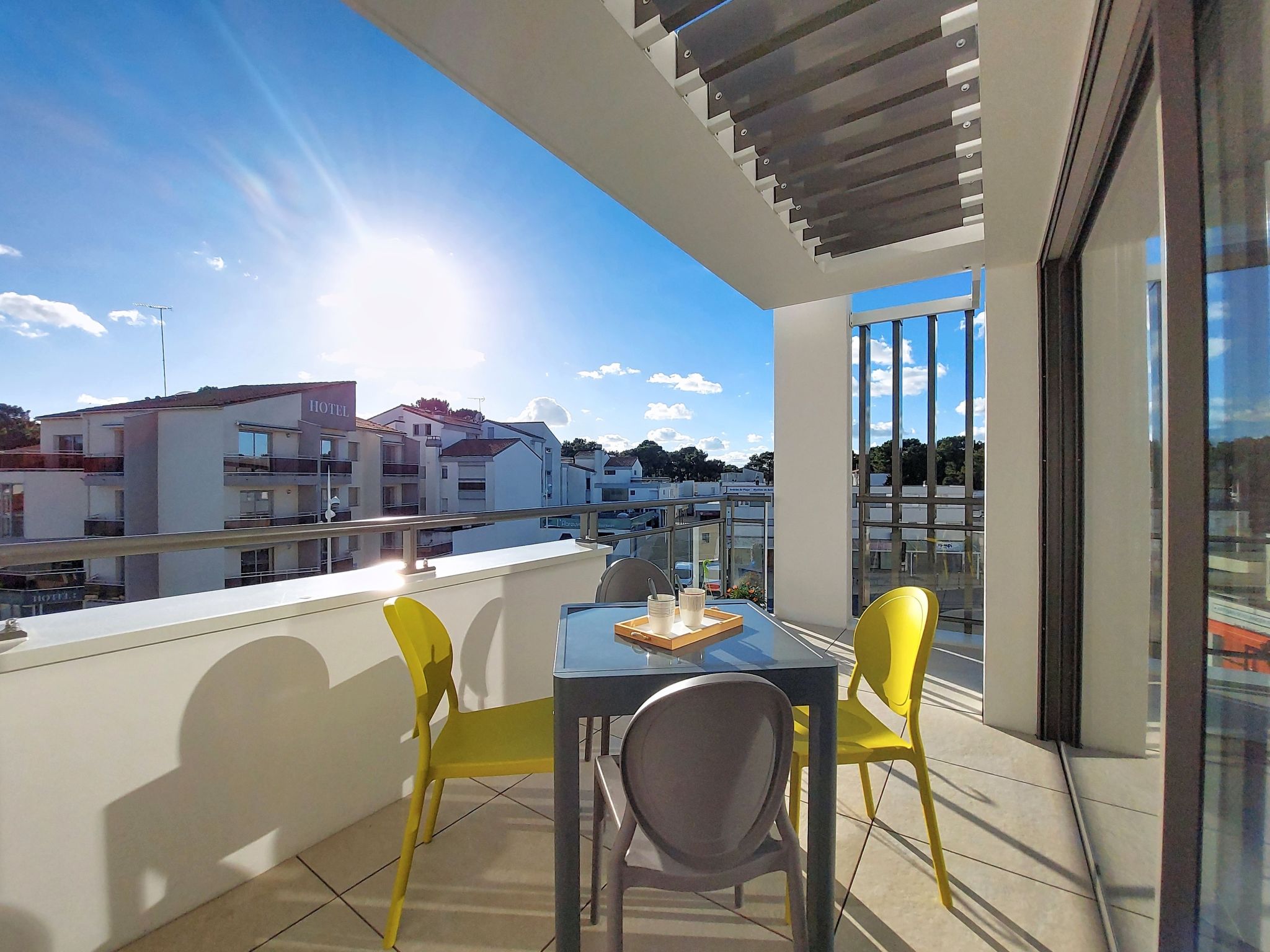 La Palmyre: Résidence "Veleda", année de construction 2025. Situation centrale, animée, à 800 m de la mer, à 800 m de la plage. Infrastructures de la résidence: ascenseur. Magasins, magasin d'alimentation 100 m, restaurant 30 m, bar 70 m, boulangerie 25 m, café 20 m, arrêt de bus "Arrêt office de tourisme" 300 m, gare ferroviaire "Royan" 19 km, plage de sable "Plage de La Palmyre" 800 m. Port plaisance 800 m, terrain de golf (9 trous) 2.5 km, ecole de surf 800 m, centre équestre 2 km. Attractions à proximité: Zoo de La Palmyre 1.1 km, Hippodrome - La Palmyre 900 m, Port La Tremblade - Boyard / Ile d'Aix 11 km, Luna Park (Juillet - Août) 4.5 km, Zagal Cabaret - La Palmyre 1.1 km, Golf Resort La Palmyre 2.5 km. Le propriétaire n'accepte pas les groupes de jeunes. La remise des clés a lieu à l’agence de La Palmyre. Environnement très sensible au bruit. Silence et bonne tenue exigés.