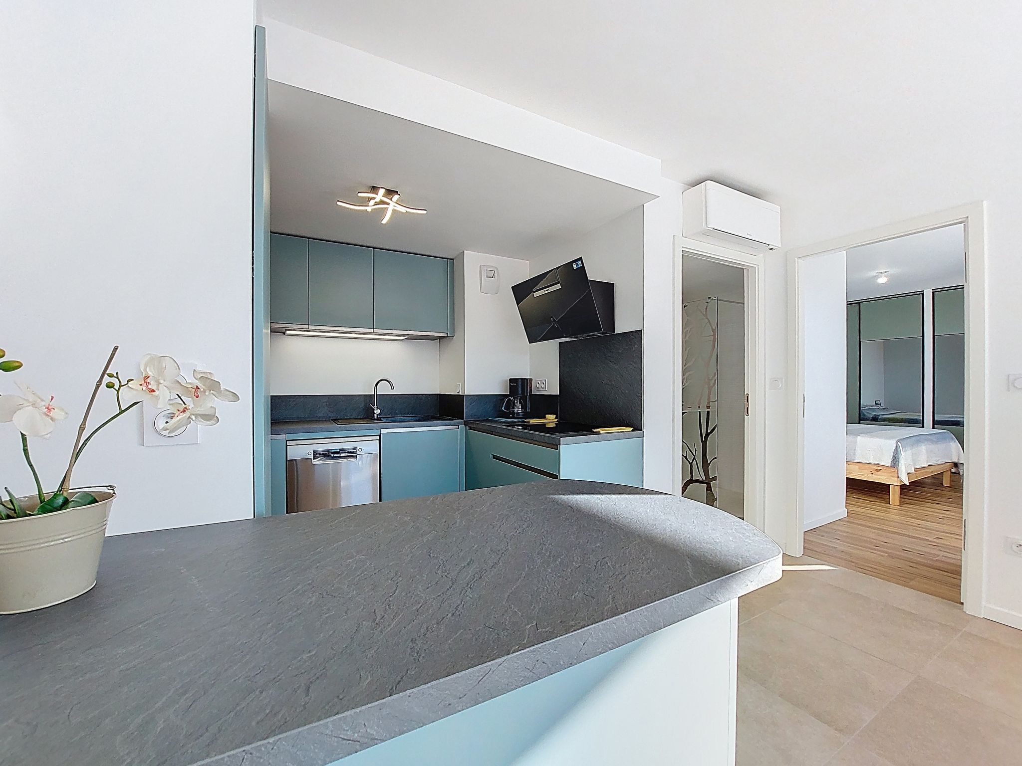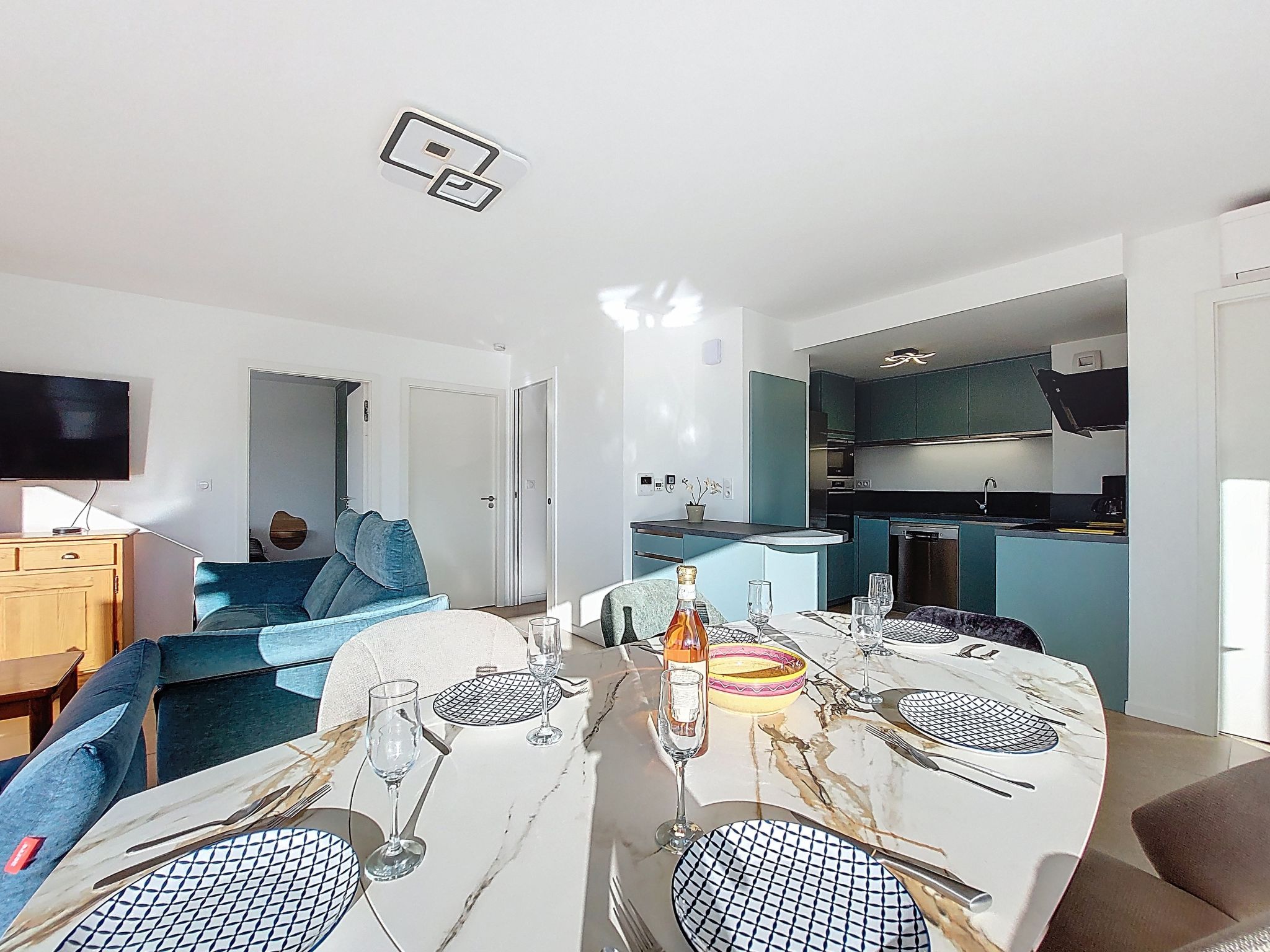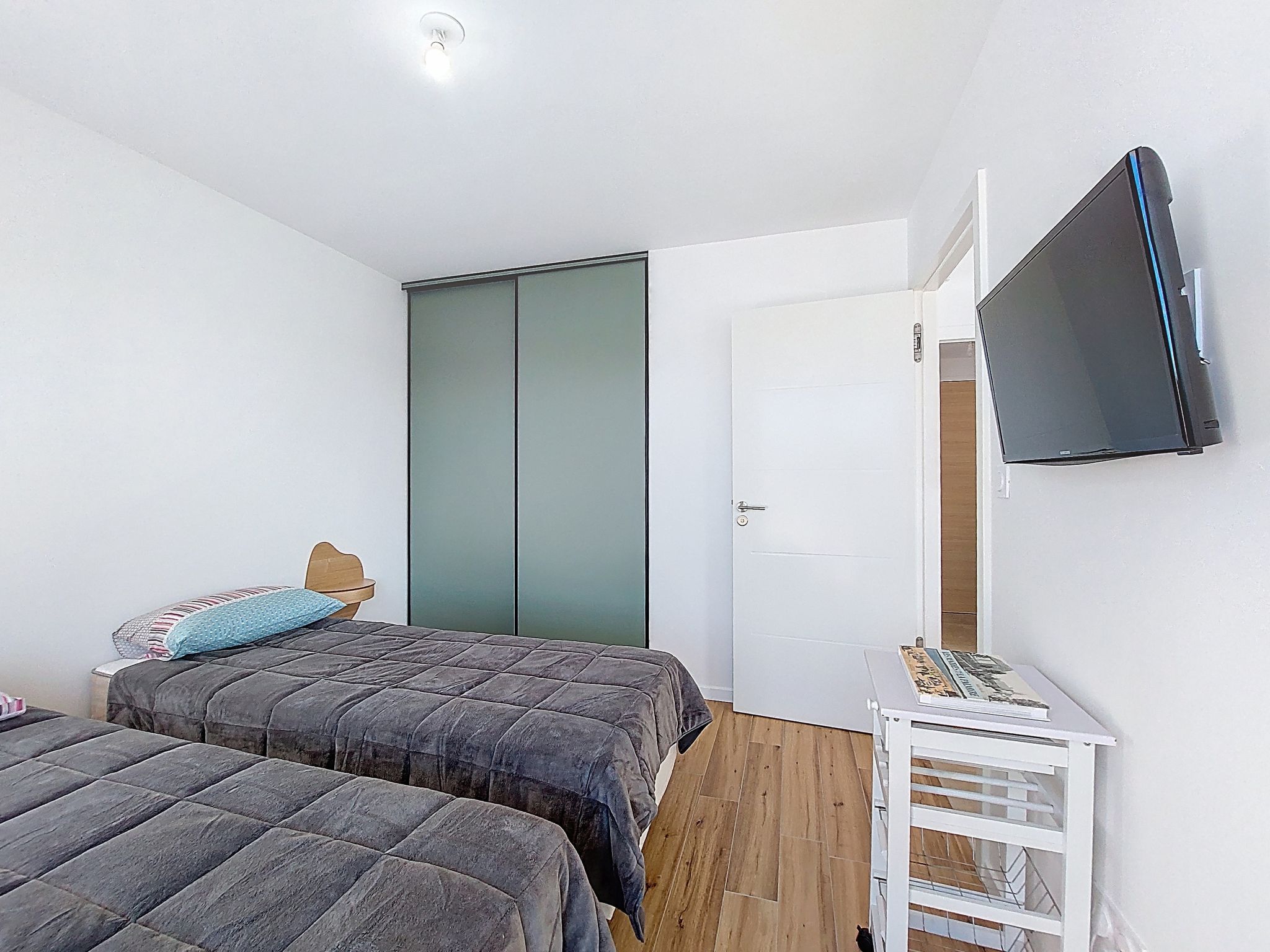 Appartement sur 2 niveaux 4 pièces 96 m2 au 3ème étage, situation sud-ouest. Aménagement confortable et moderne: séjour/salle à manger avec TV (écran plat), air-conditionné. Sortie sur le balcon. 1 chambre avec 1 grand-lit (1 x 160 cm, longueur 190 cm), TV (écran plat). Sortie sur le balcon. 1 chambre avec 1 lit double (1 x 160 cm, longueur 190 cm), TV (écran plat). Cuisine ouverte (four, 3 plaques vitrocéramiques, grille-pain, bouilloire électrique, micro-ondes, congélateur, cafetière électrique, Capsules pour machine à café (Senseo) (NON INCLUSES)). Douche, WC séparé. Air-conditionné, chauffage par le sol. À l'étage supérieur: 1 chambre avec 2 lits (90 cm, longueur 190 cm), douche/WC, double vasque et TV (écran plat). Sortie sur la terrasse. Grand balcon 15 m2, situation sud et situation ouest. A disposition: lave-linge, fer à repasser, sèche-cheveux. Internet (Connexion WIFI, gratuit). Place de parking No 3 (1 Voiture). Veuillez noter: détecteur de fumée. Annonce d'un particulier (art 155, IV du CGI).