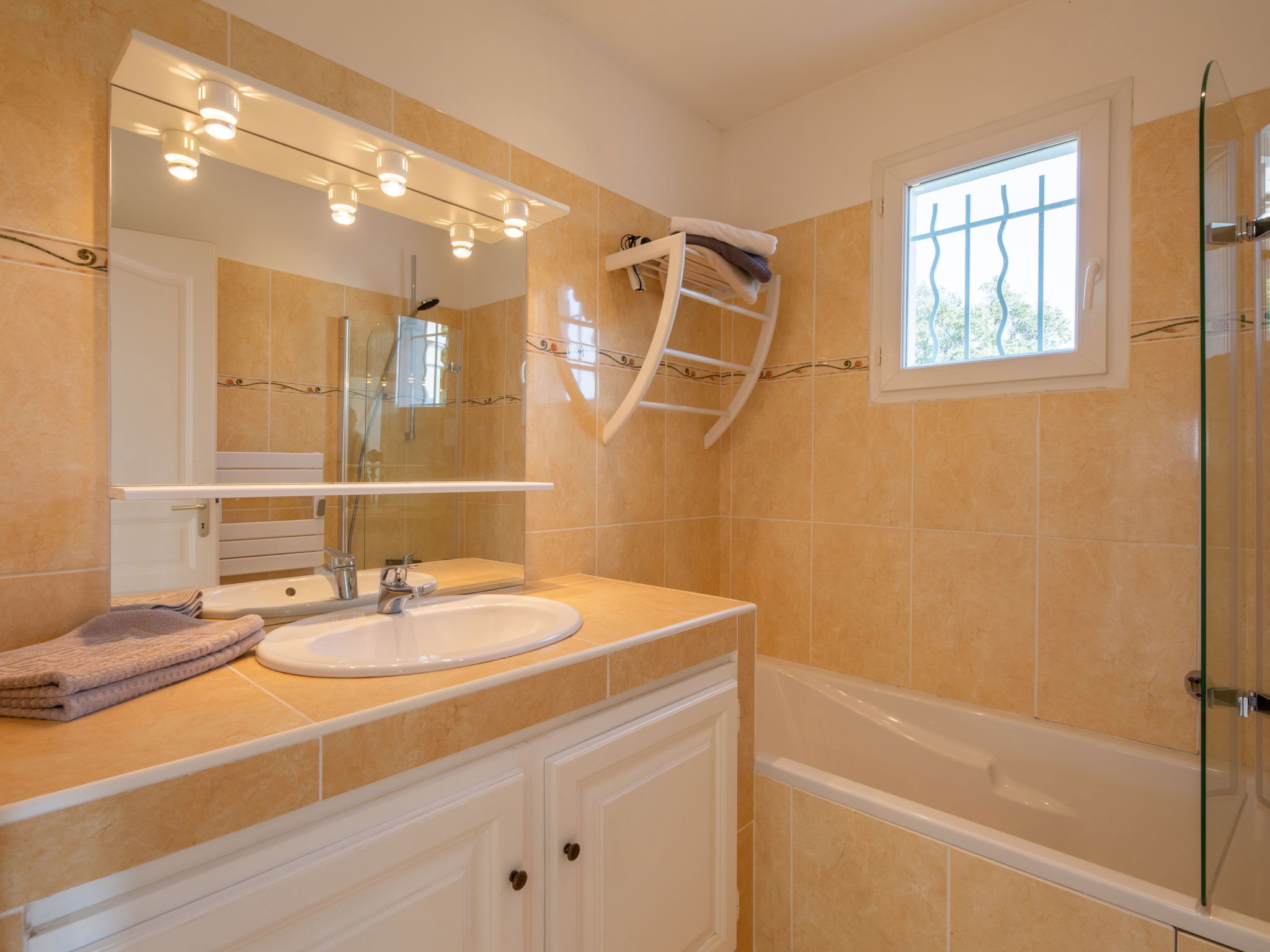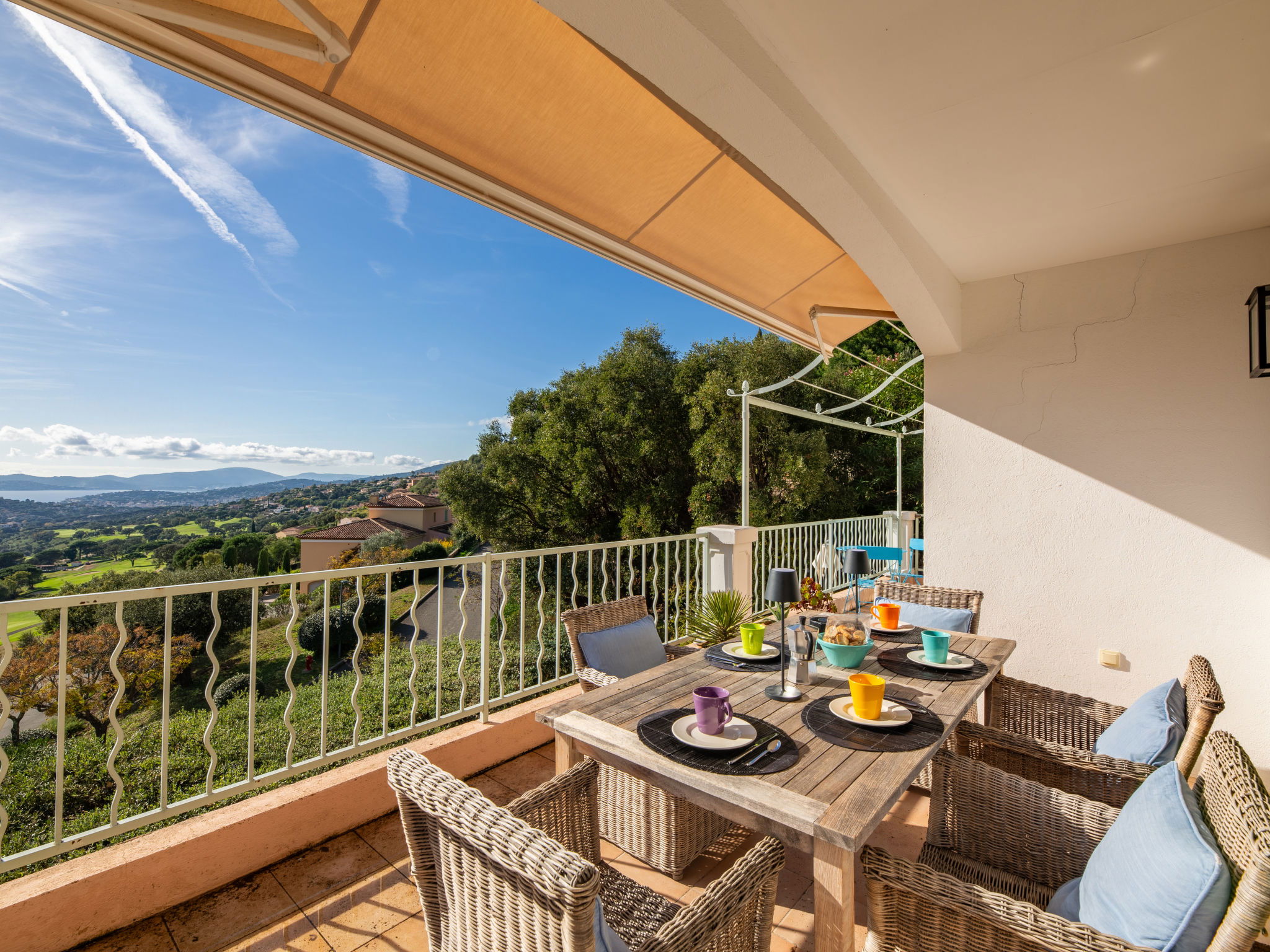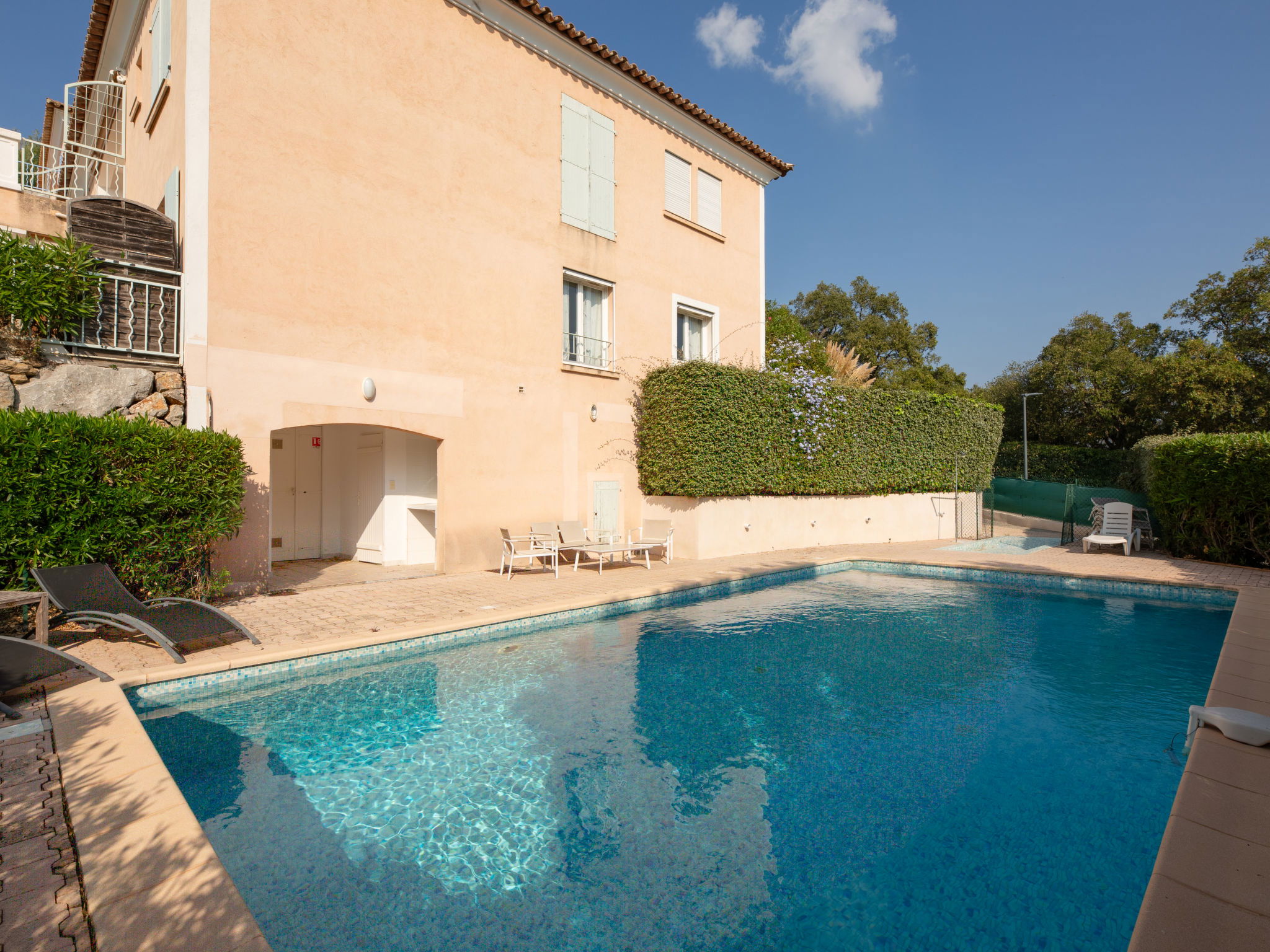 Petite résidence "Le Green", de 2 étages. 4 appartements dans la résidence. Dans le quartier de Du Golf de Sainte Maxime, en bordure de la localité, à 5 km du centre de Sainte-Maxime, situation tranquille, ensoleillée sur une colline, dans un quartier résidentiel, zone avec peu de trafic, à 5 km de la mer, juste au bord de la plage, dans une impasse, en bordure du terrain de golf, orientée sud. En commun: piscine rectangulaire (10 x 5 m, profondeur 170 - 170 cm, disponibilité saisonnière: 01.Jun. - 30.Sep.) avec marches intérieures et alarme de sécurité. Magasins 5 km, supermarché 6.5 km, arrêt de bus 4 km, gare ferroviaire "TGV Saint-Raphael" 25 km, plage de sable "La Nartelle" 4.5 km, centre thermal "Thalasso Spa Les Issambres" 8 km. Port plaisance 4.5 km, terrain de golf (18 trous) 30 m, piste cyclable 2 km. Attractions à proximité: Aqualand waterpark 6.5 km, Navette / shuttle boat St-Tropez 15min 4.5 km, Saint-Tropez Ramatuelle 18 km, Port-Grimaud 15 km, Gorges du Verdon 90 km. Région de randonnées: Massif des Maures 5 km, Massif de l'Esterel 23 km. Veuillez noter: voiture recommandée. La remise des clés a lieu à l’agence de Sainte-Maxime, 4 km.