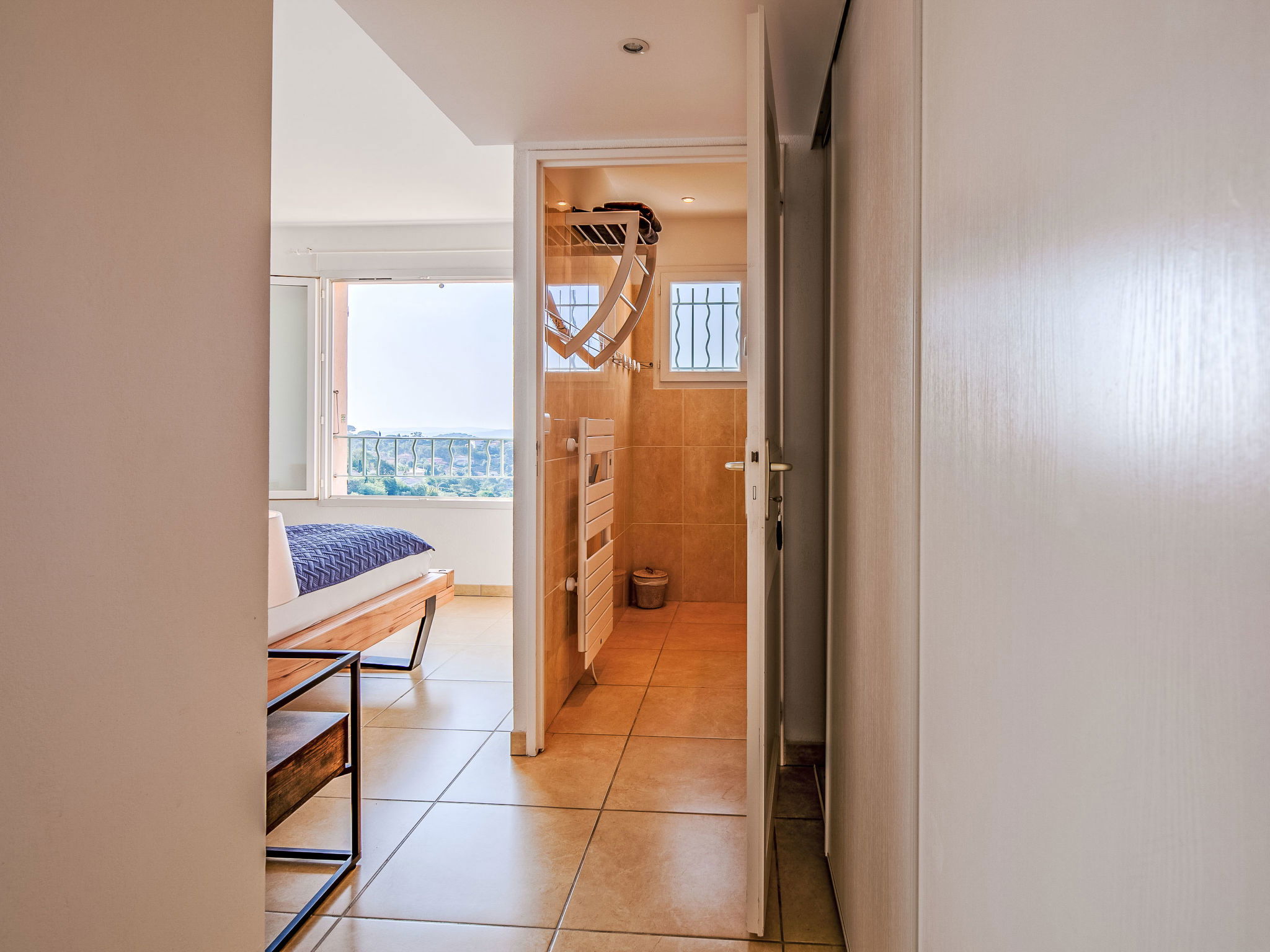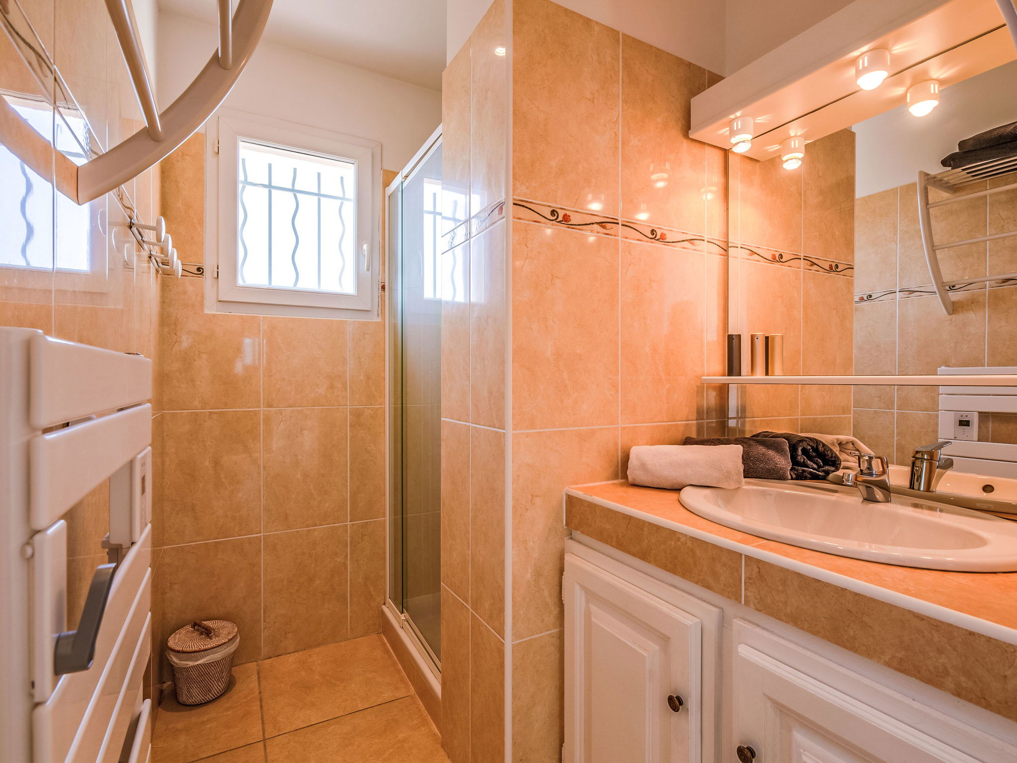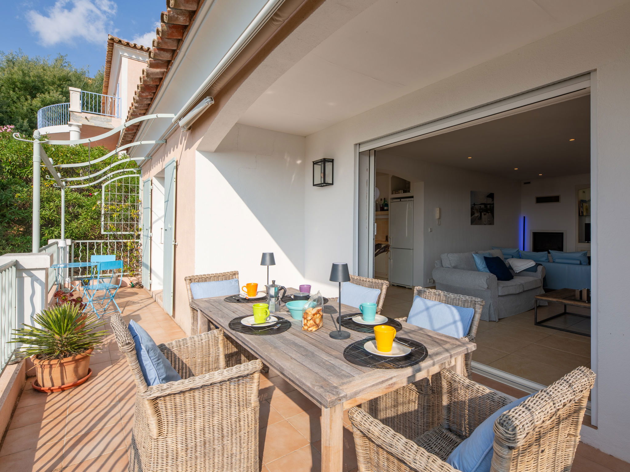 Petite résidence "Le Green", de 2 étages. 4 appartements dans la résidence. Dans le quartier de Du Golf de Sainte Maxime, en bordure de la localité, à 5 km du centre de Sainte-Maxime, situation tranquille, ensoleillée sur une colline, dans un quartier résidentiel, zone avec peu de trafic, à 5 km de la mer, juste au bord de la plage, dans une impasse, en bordure du terrain de golf, orientée sud. En commun: piscine rectangulaire (10 x 5 m, profondeur 170 - 170 cm, disponibilité saisonnière: 01.Jun. - 30.Sep.) avec marches intérieures et alarme de sécurité. Magasins 5 km, supermarché 6.5 km, arrêt de bus 4 km, gare ferroviaire "TGV Saint-Raphael" 25 km, plage de sable "La Nartelle" 4.5 km, centre thermal "Thalasso Spa Les Issambres" 8 km. Port plaisance 4.5 km, terrain de golf (18 trous) 30 m, piste cyclable 2 km. Attractions à proximité: Aqualand waterpark 6.5 km, Navette / shuttle boat St-Tropez 15min 4.5 km, Saint-Tropez Ramatuelle 18 km, Port-Grimaud 15 km, Gorges du Verdon 90 km. Région de randonnées: Massif des Maures 5 km, Massif de l'Esterel 23 km. Veuillez noter: voiture recommandée. La remise des clés a lieu à l’agence de Sainte-Maxime, 4 km.