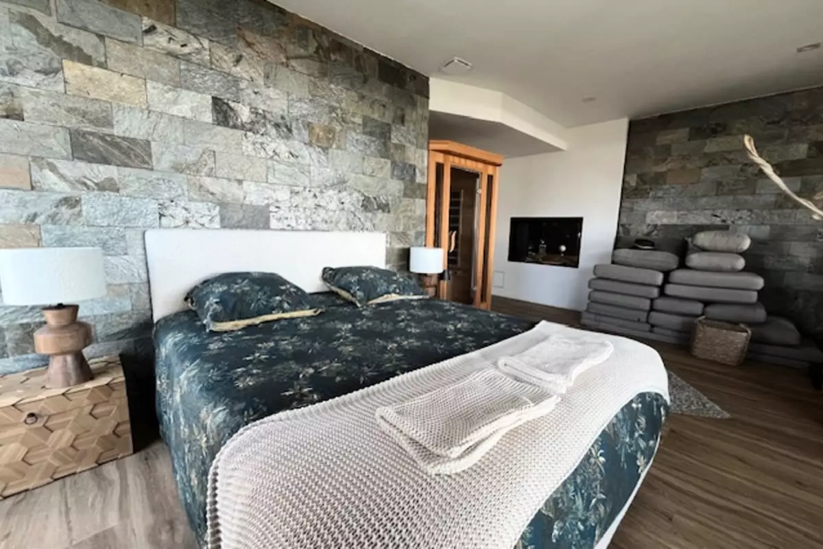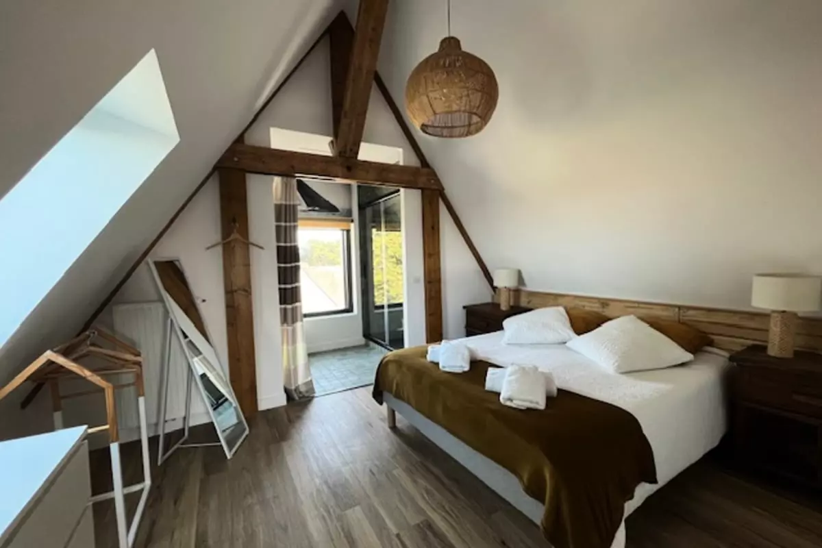 La maison comprend trois chambres confortables : une avec un lit double 200x200, une seconde avec un lit double 160x190, et une troisième avec un lit double 140x190. Vous disposerez également d’une cuisine entièrement équipée pour préparer vos repas, de deux salles de bain pour votre confort et d’un salon agréable où vous pourrez vous détendre après une journée de visites.