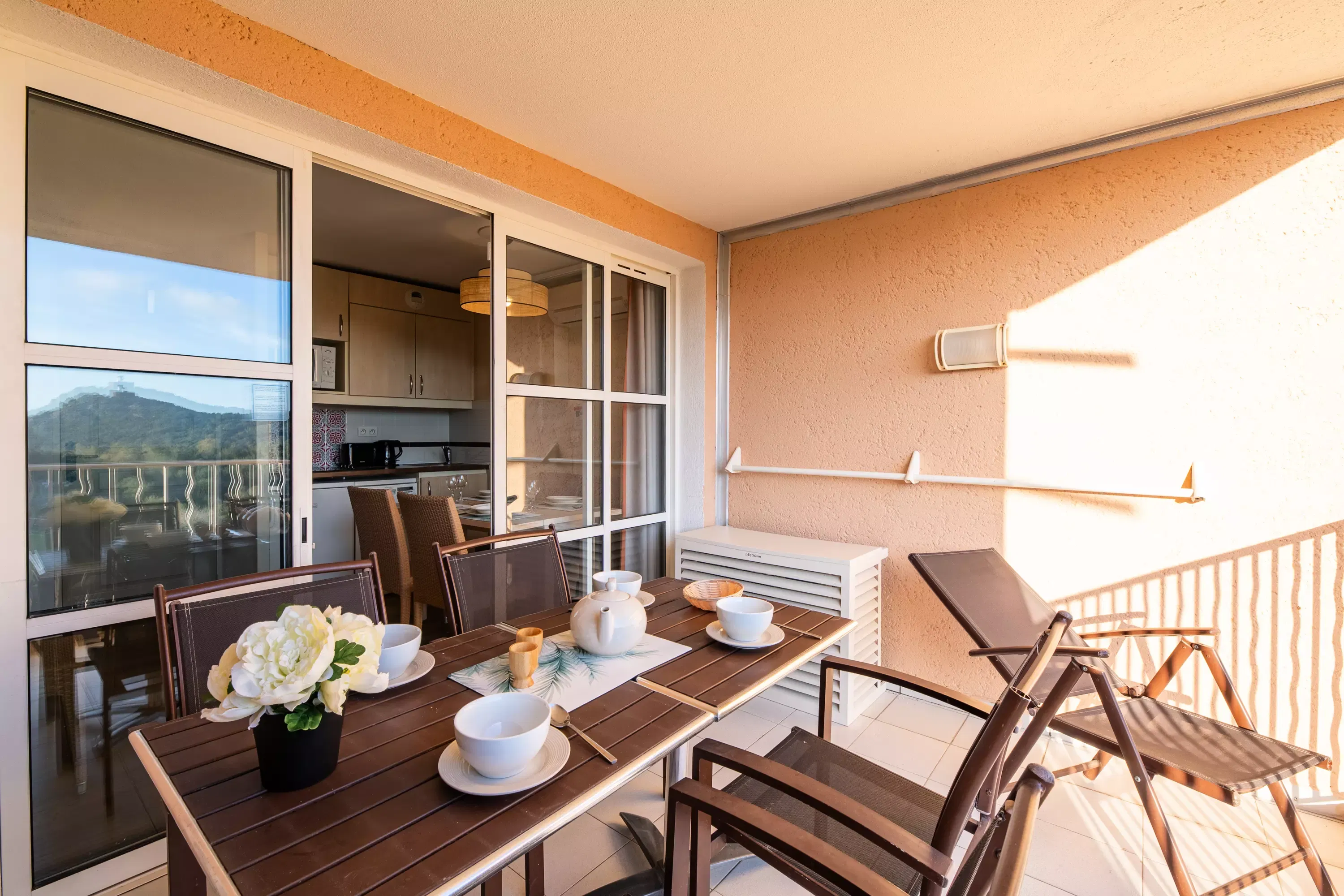 Les atouts de votre location : Situé au 1er étage, ce logement climatisé offre une agréable terrasse couverte exposée sud avec vue sur la forêt et sans vis-à-vis. Il dispose d’une cuisine américaine équipée (lave-vaisselle, micro-ondes, réfrigérateur avec freezer...) et d’un séjour confortable avec canapé, table à manger et télévision écran plat. Un parking extérieur privatif complète cet appartement idéalement situé, à moins de 100 m des commerces et activités, entre mer et nature.