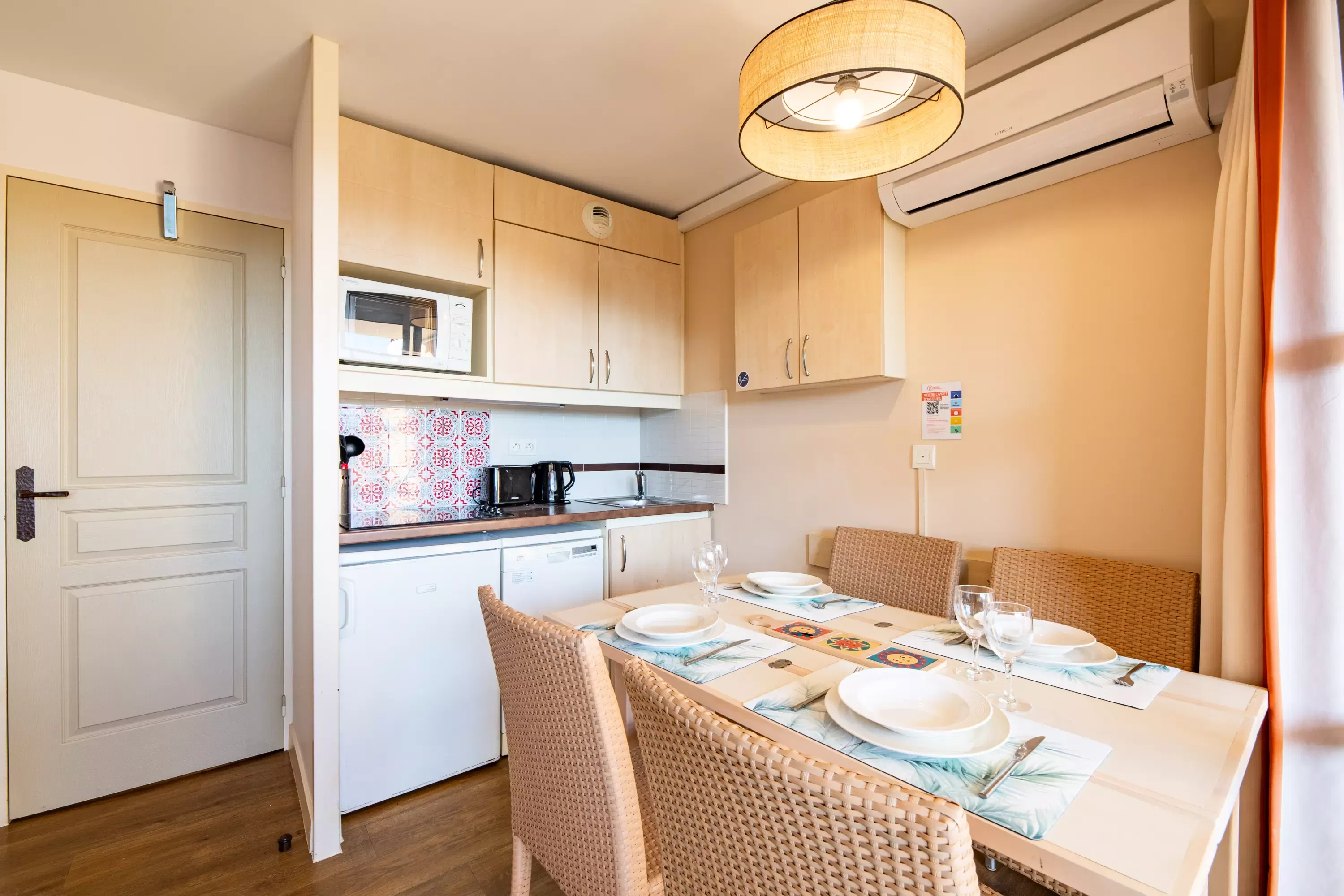 Votre location de vacances comporte : 1 séjour,1 cuisine, 1 chambre, 1 salle de bain, 1 WC séparé,1 terrasse et 1 place de parking en extérieur.
