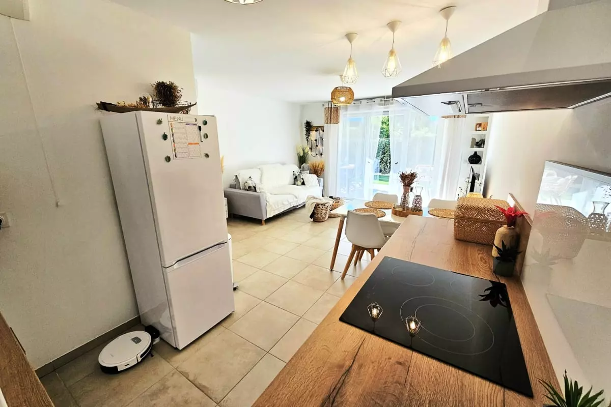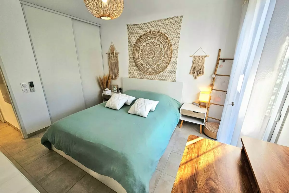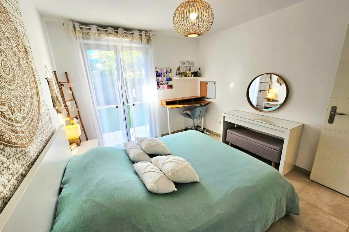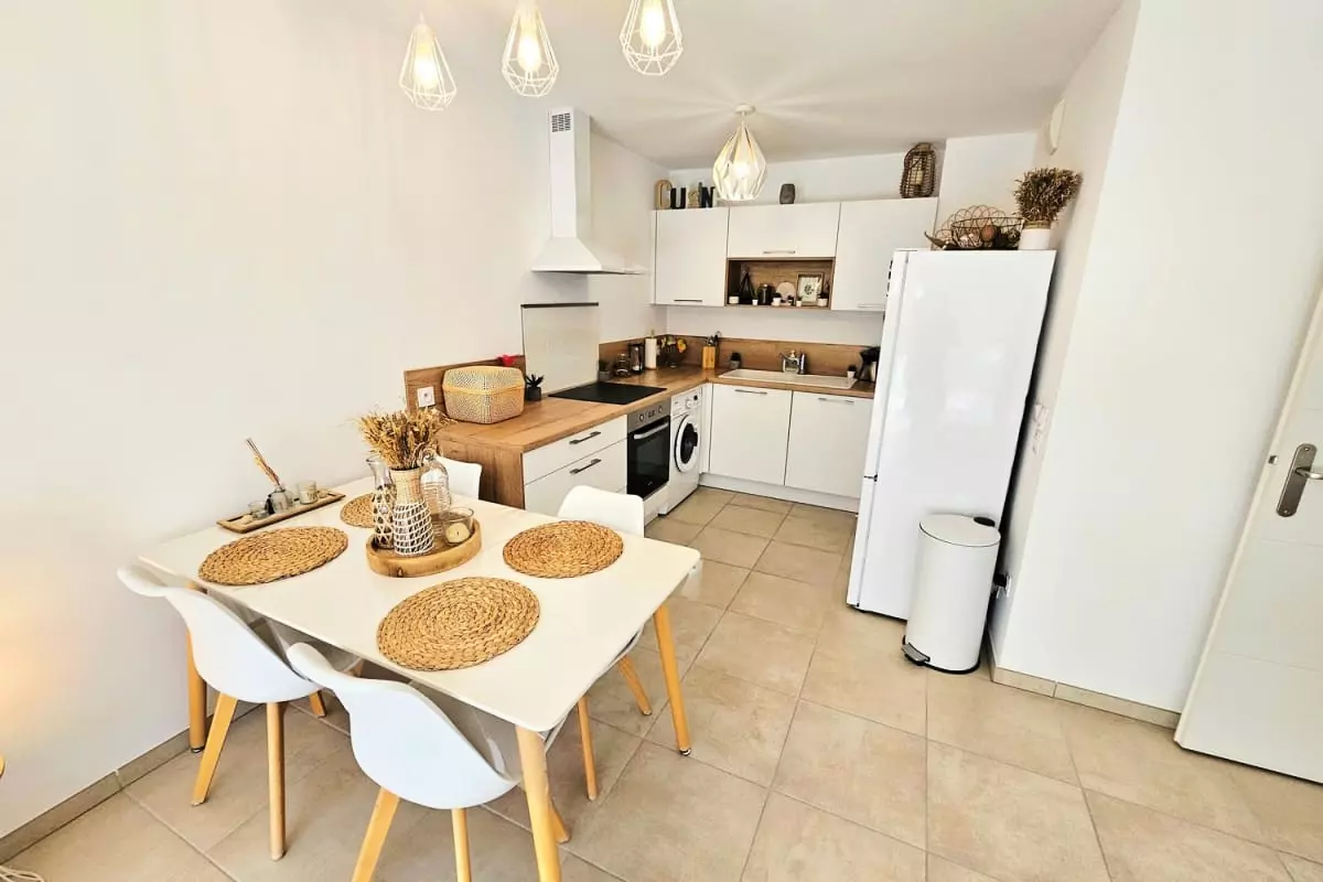 L’appartement se situe dans une résidence neuve, sécurisée et soigneusement entretenue, offrant un cadre de vie calme et agréable. Vous profiterez d’une grande pièce à vivre lumineuse donnant sur une terrasse, parfaite pour savourer un café au soleil. La cuisine moderne est dotée de plaques à induction, d’un four, d’un micro-ondes et d’un réfrigérateur-congélateur, ainsi que de tout le nécessaire pour préparer vos repas. La chambre climatisée est conçue pour offrir un repos optimal, et l’ensemble du logement est décoré avec soin pour créer une ambiance chaleureuse et harmonieuse.