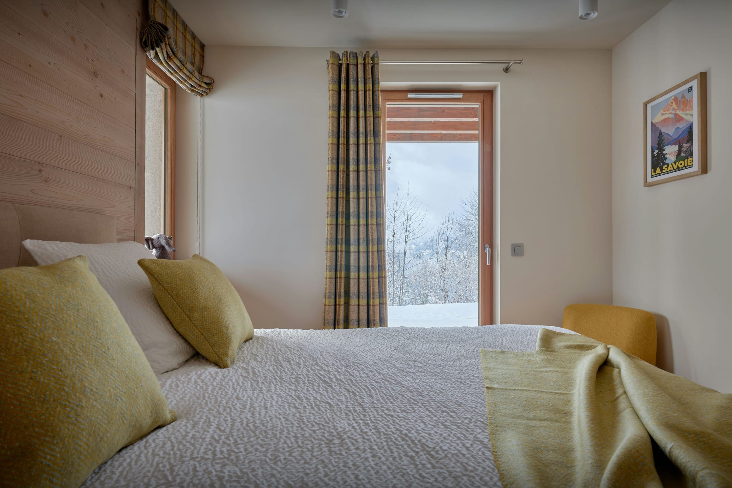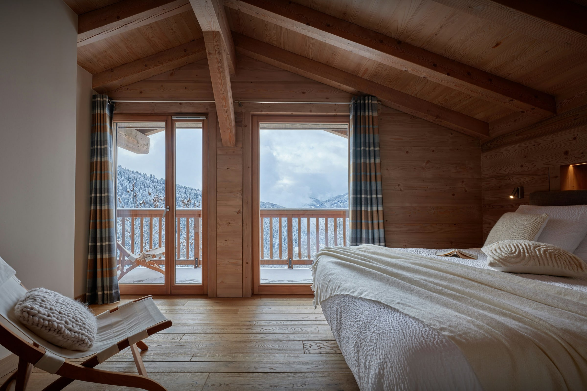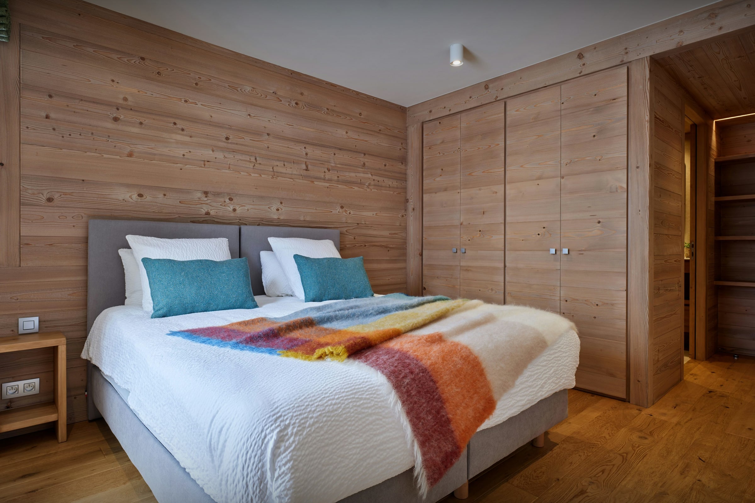 Trois des quatres chambres doubles du Chalet Gridloup occupent le rez-de-jardin. Notez que l’une d’elles peut également être préparée avec deux lits jumeaux, selon vos besoins. Elles disposent toutes d’une salle d’eau privative. À l’étage supérieur, la dernière chambre accède à un balcon et à une salle de bains.