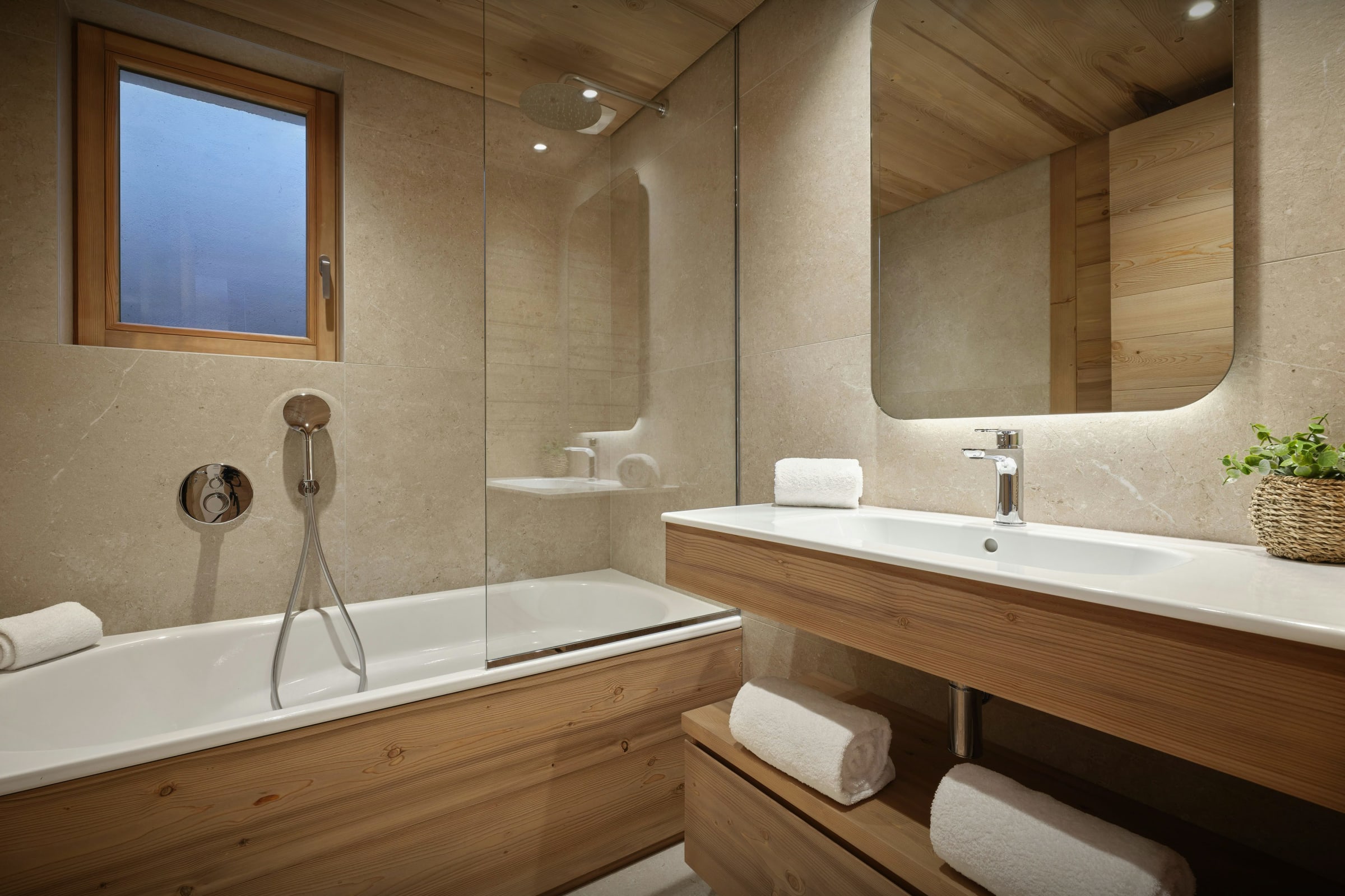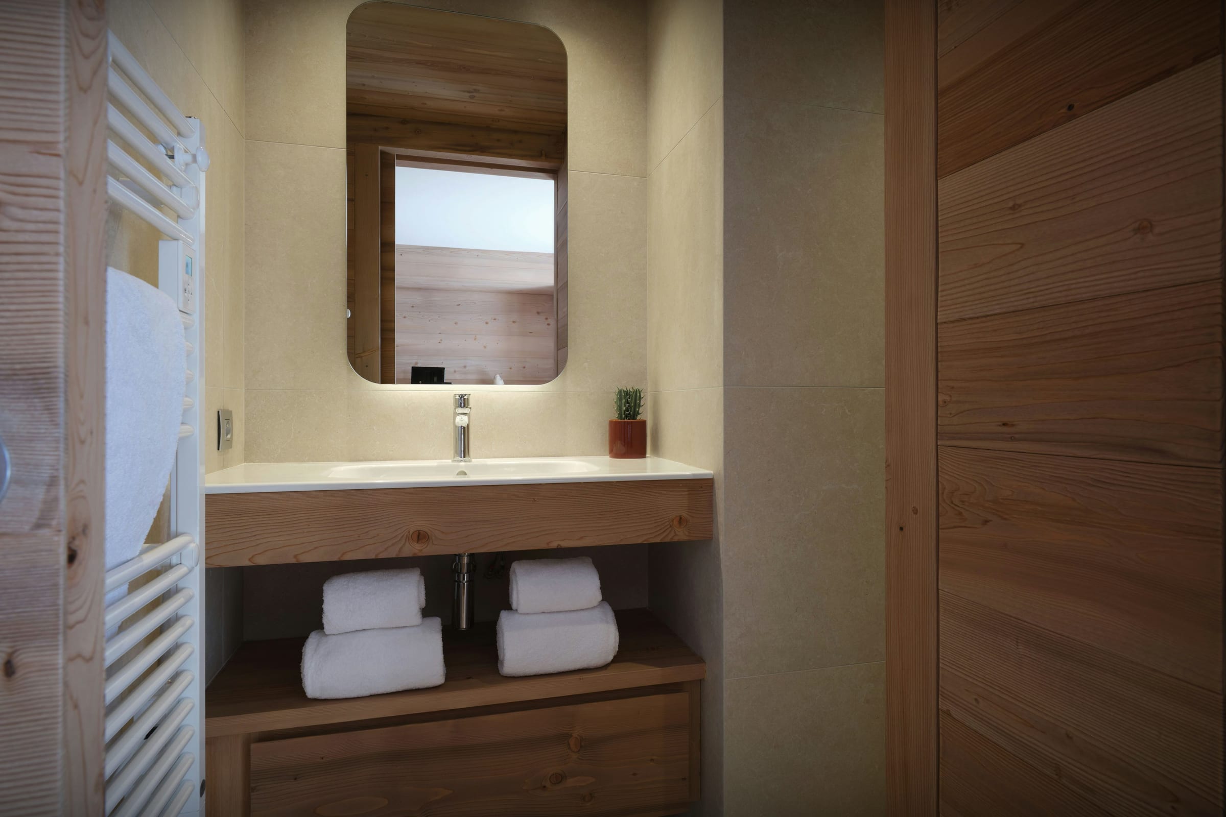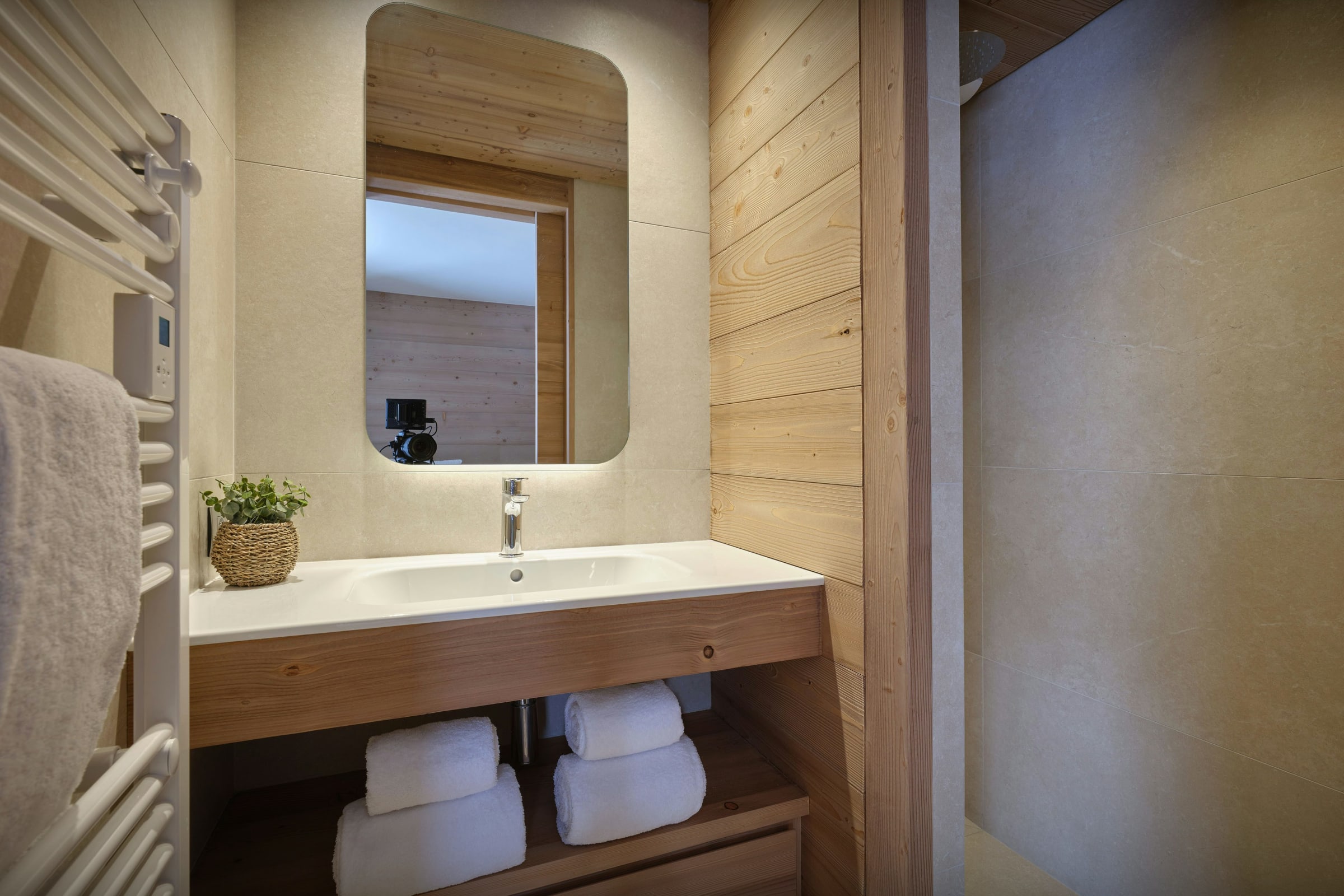 Trois des quatres chambres doubles du Chalet Gridloup occupent le rez-de-jardin. Notez que l’une d’elles peut également être préparée avec deux lits jumeaux, selon vos besoins. Elles disposent toutes d’une salle d’eau privative. À l’étage supérieur, la dernière chambre accède à un balcon et à une salle de bains.