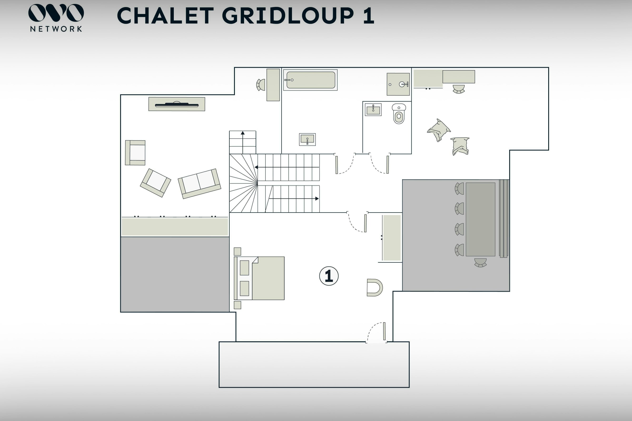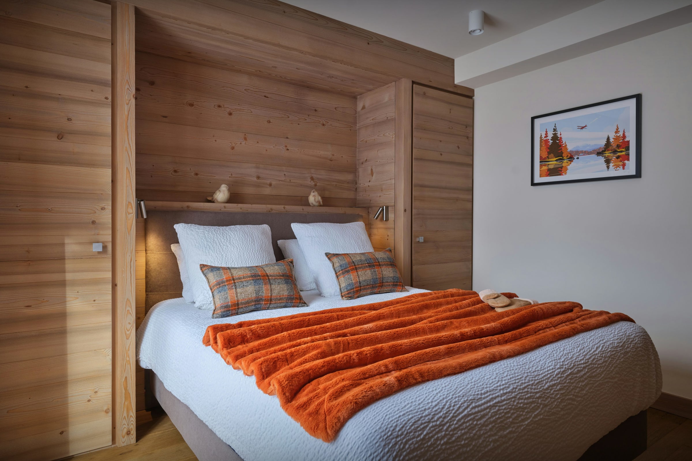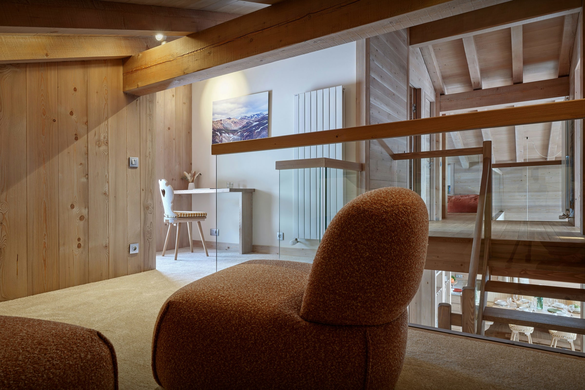 Le Chalet Gridloup possède quatre chambres et quatre salles de bains aménagées sur trois niveaux, offrant un cocon élégant pour huit voyageurs.