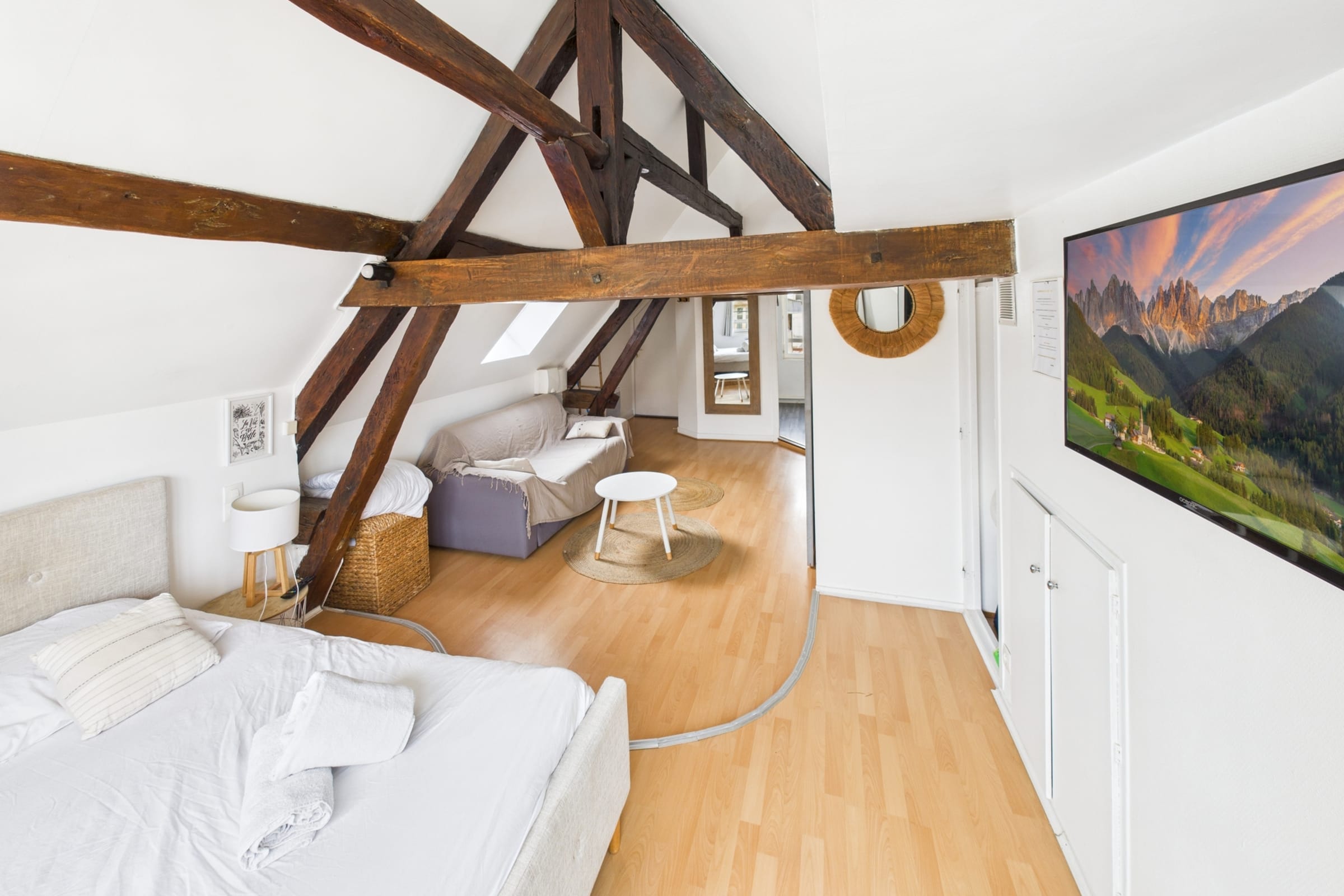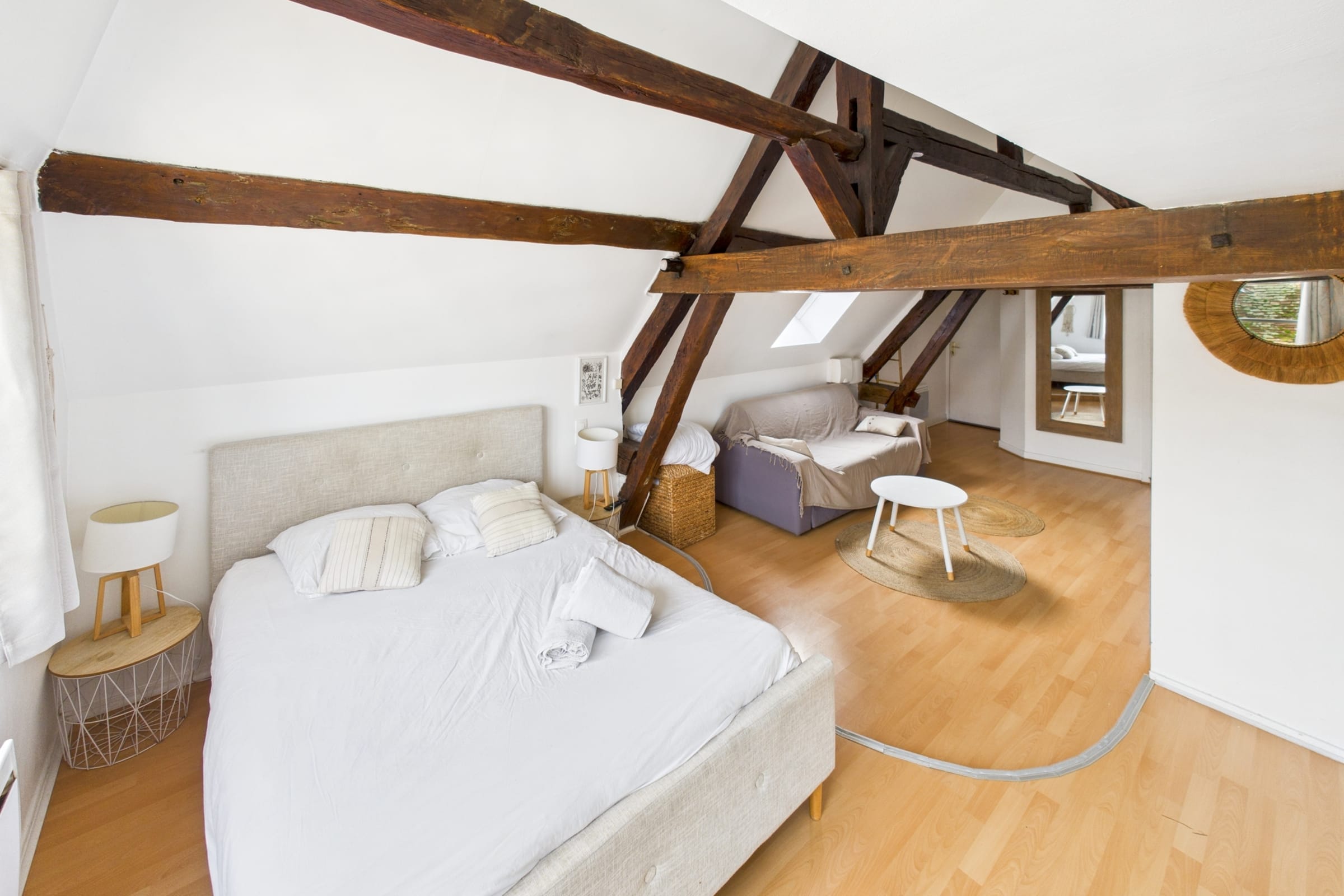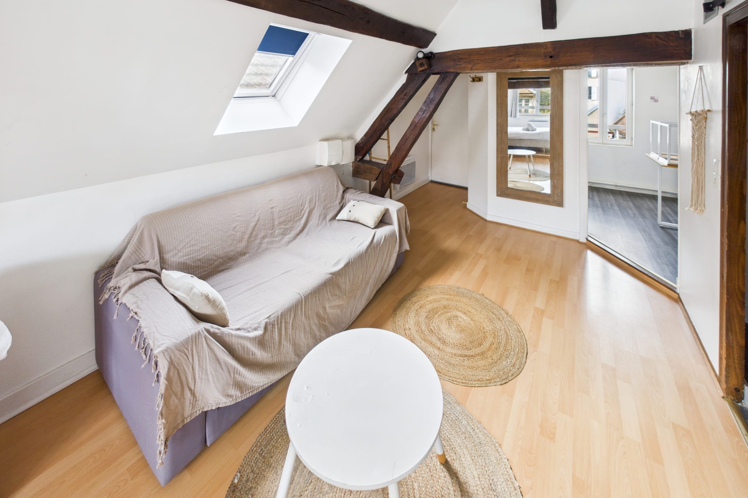 ✨ Profitez d’un studio moderne et lumineux, idéal pour accueillir jusqu’à 4 personnes avec un lit double confortable et un canapé-lit pratique pour des nuits reposantes.