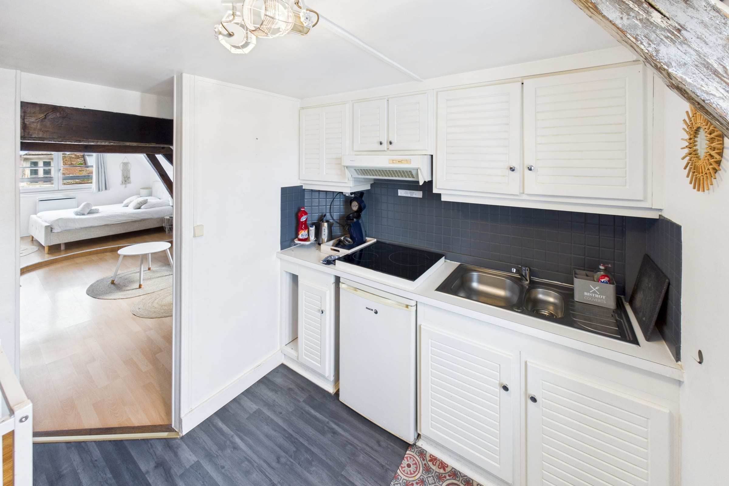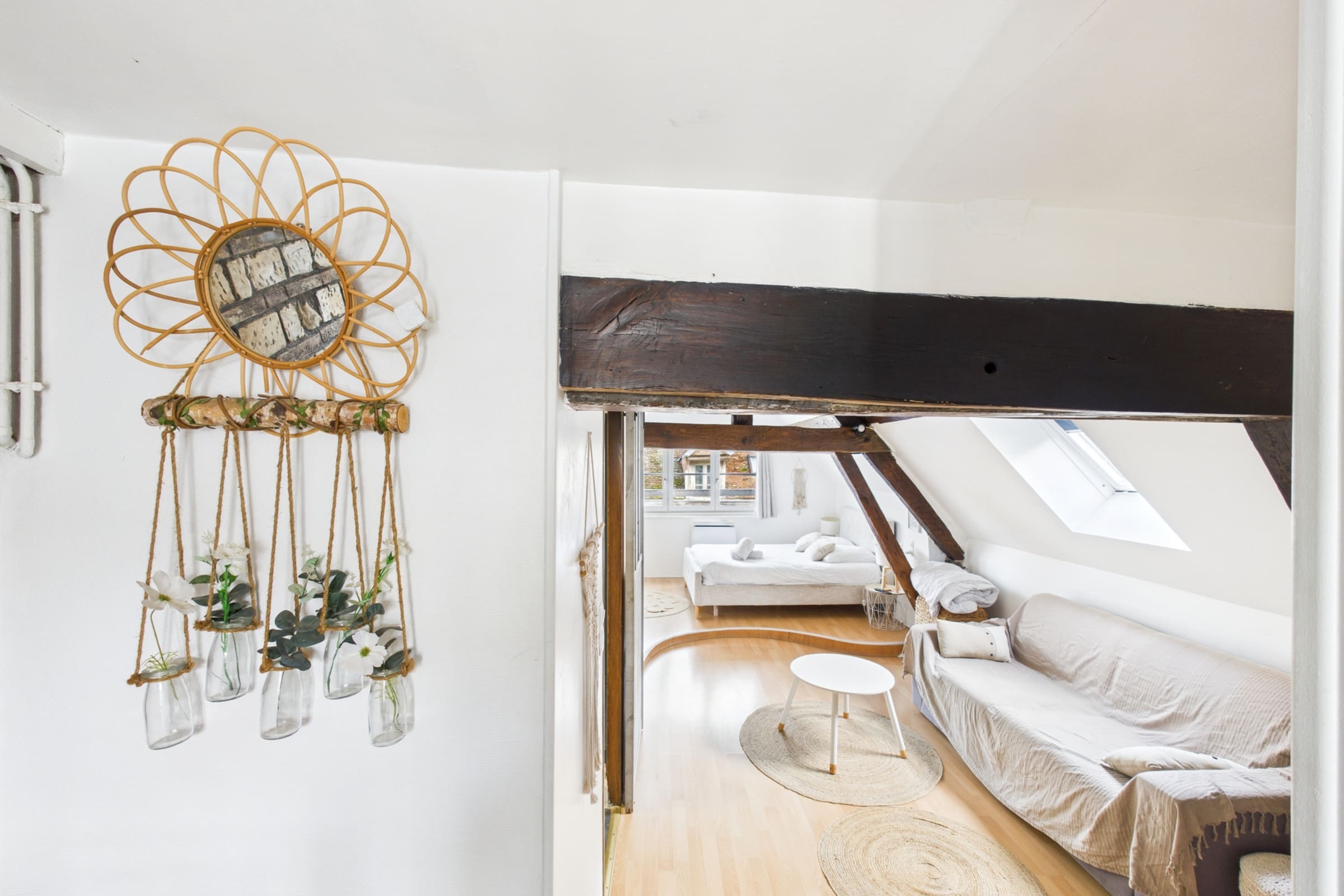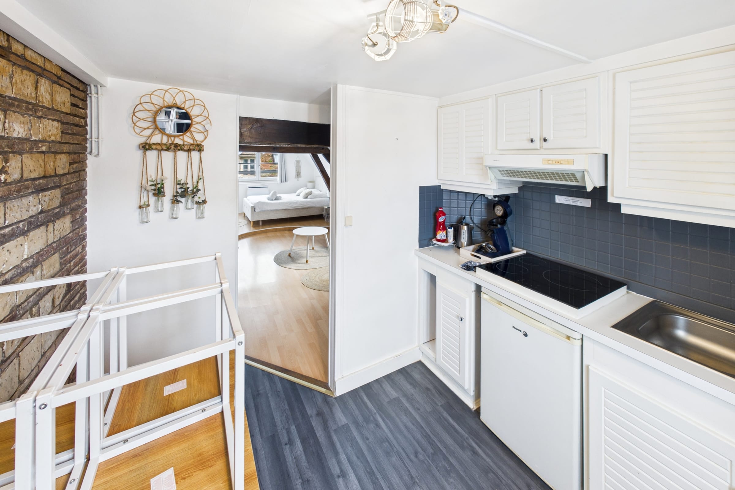✨ Profitez d’un studio moderne et lumineux, idéal pour accueillir jusqu’à 4 personnes avec un lit double confortable et un canapé-lit pratique pour des nuits reposantes.