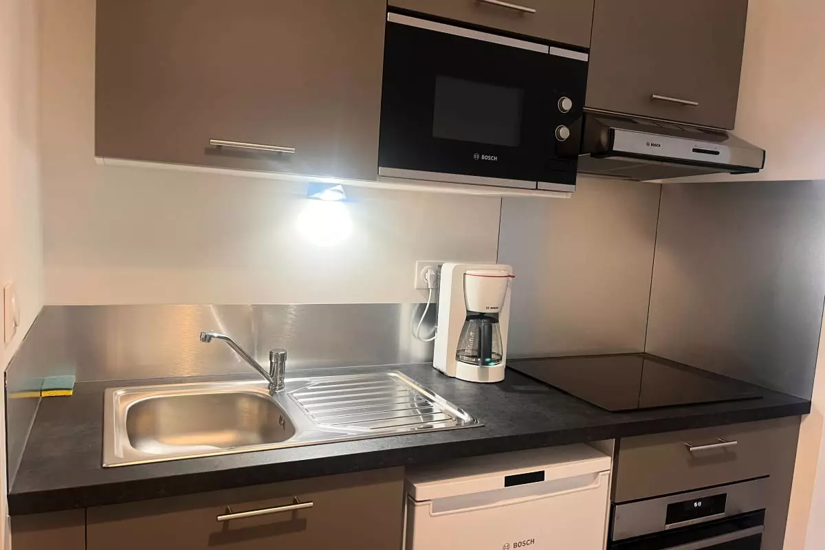 Vous apprécierez particulièrement sa praticité et sa luminosité, qui en font un espace agréable à vivre. Tout ce dont vous avez besoin pour un séjour réussi est à votre disposition, notamment le Wifi, un sèche-cheveux, une télévision, un lave-linge, une machine à café, un micro-ondes, un four et un fer à repasser. Veuillez noter que les draps et les serviettes sont fournis avec un supplément.