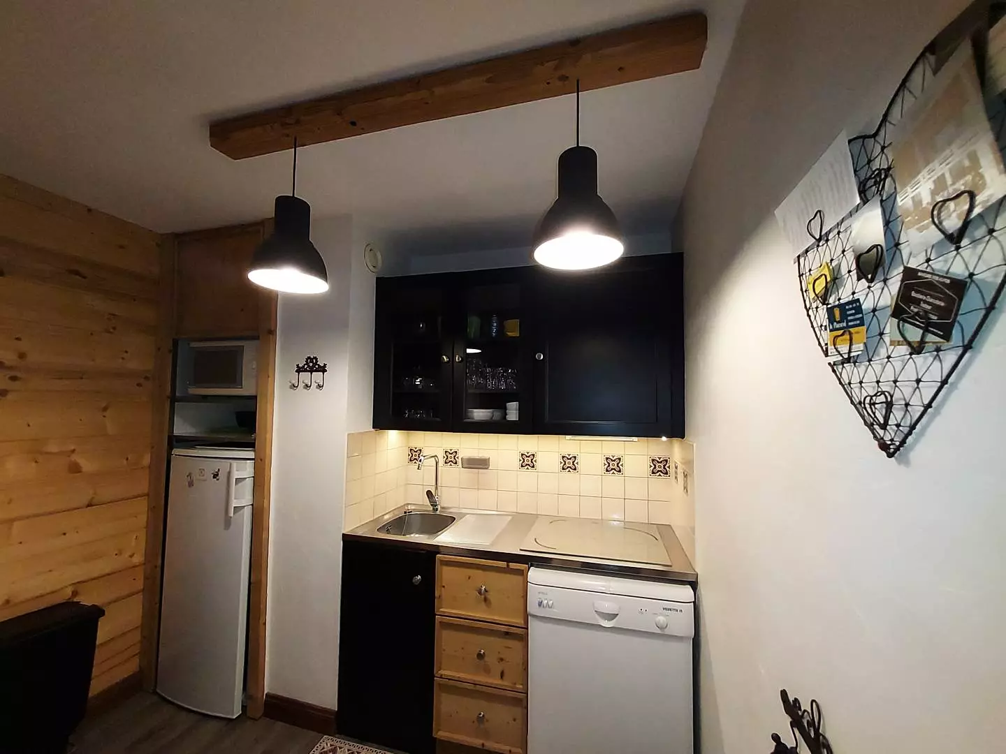 - Cuisine ouverte sur séjour équipée de 3 plaques vitrocéramiques, micro-ondes, four, lave-vaisselle, réfrigérateur, cafetière filtre, N espresso ,grille-pain