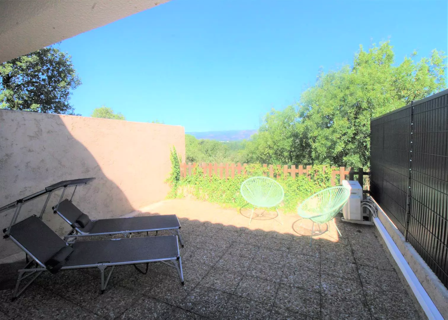 La terrasse de 30m² attenante est aménagée d'un coin repas ombragé et d'une plancha électrique.