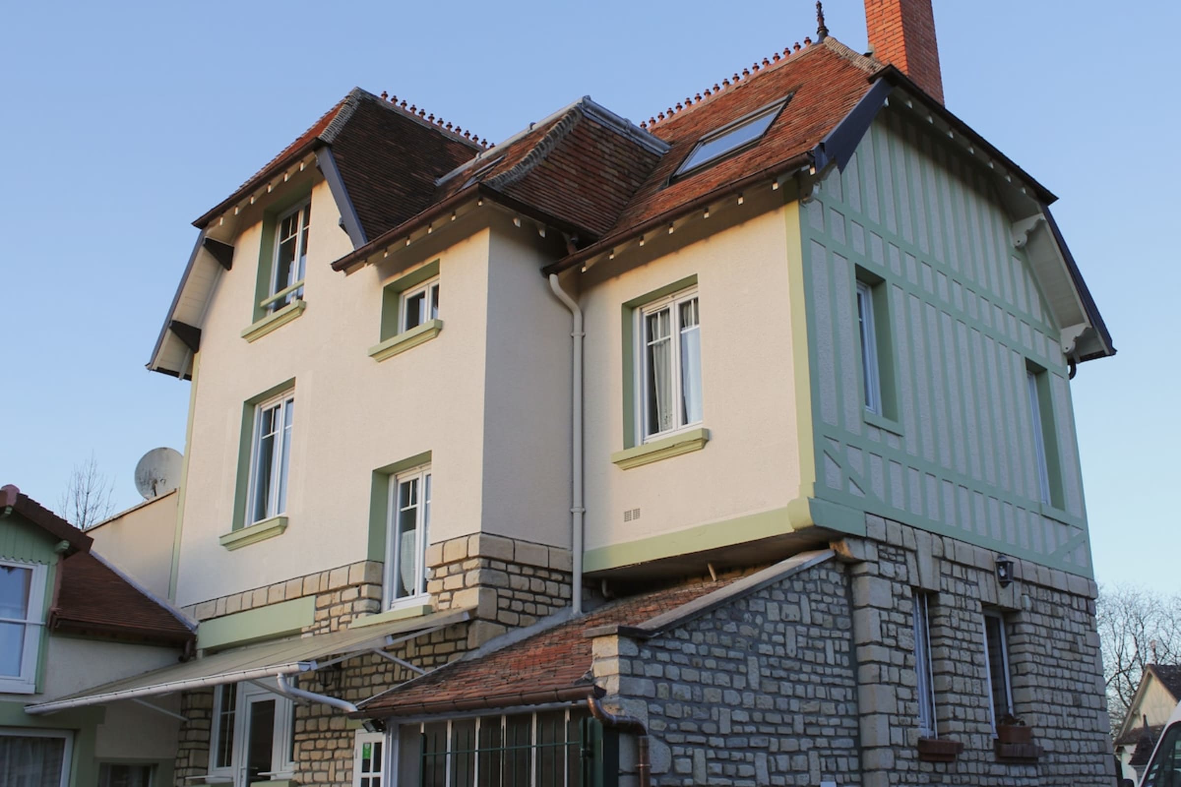 Grande maison à colombage, typique de la Normandie. A 5 minutes à pieds du centre-ville et de la gare, cette maison spacieuse (140m²) est idéalement située. Parking privé et fermé par une barrière automatique. 2 chambres avec lit doubles et 3 chambres avec 2 lits simples, chacune. Espace repas en extérieur.