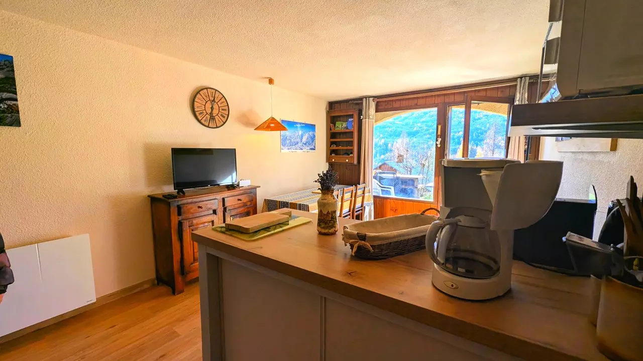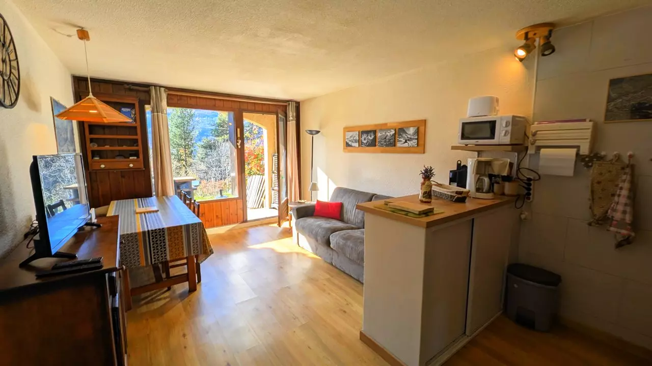 Dans la résidence les Gentianes, Appartement n°3, agréable studio situé en rez-de-chaussée, avec un accès à jardin privatif vue sur les montagnes.