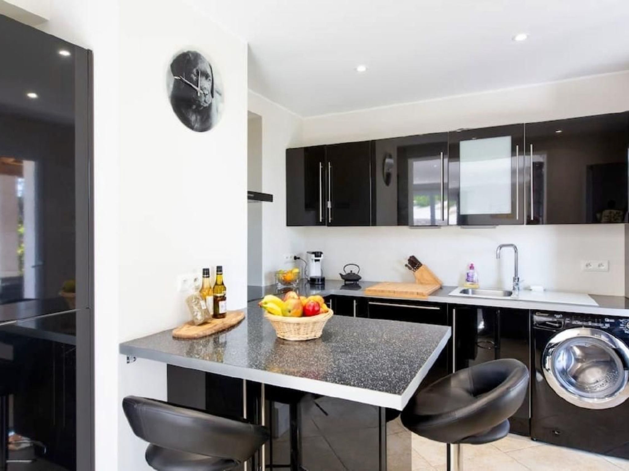 La villa se distingue par son intérieur élégant et moderne. Au rez-de-chaussée, elle propose une suite parentale avec lit Queen Size, placards et salle de douche. Un salon/salle à manger ouvert de 50 m2, équipé d'un canapé, fauteuils, et TV avec Canal +/Satellite, s'ouvre sur la terrasse extérieure. La cuisine, parfaitement équipée, ajoute au confort de la maison. L'étage accueille deux chambres supplémentaires, l'une avec un lit Queen Size et l'autre avec un lit double et deux lits superposés, toutes les deux disposant de placards et d'un bureau. Les équipements modernes tels que l'accès Internet Wifi et divers appareils ménagers complètent l'intérieur.