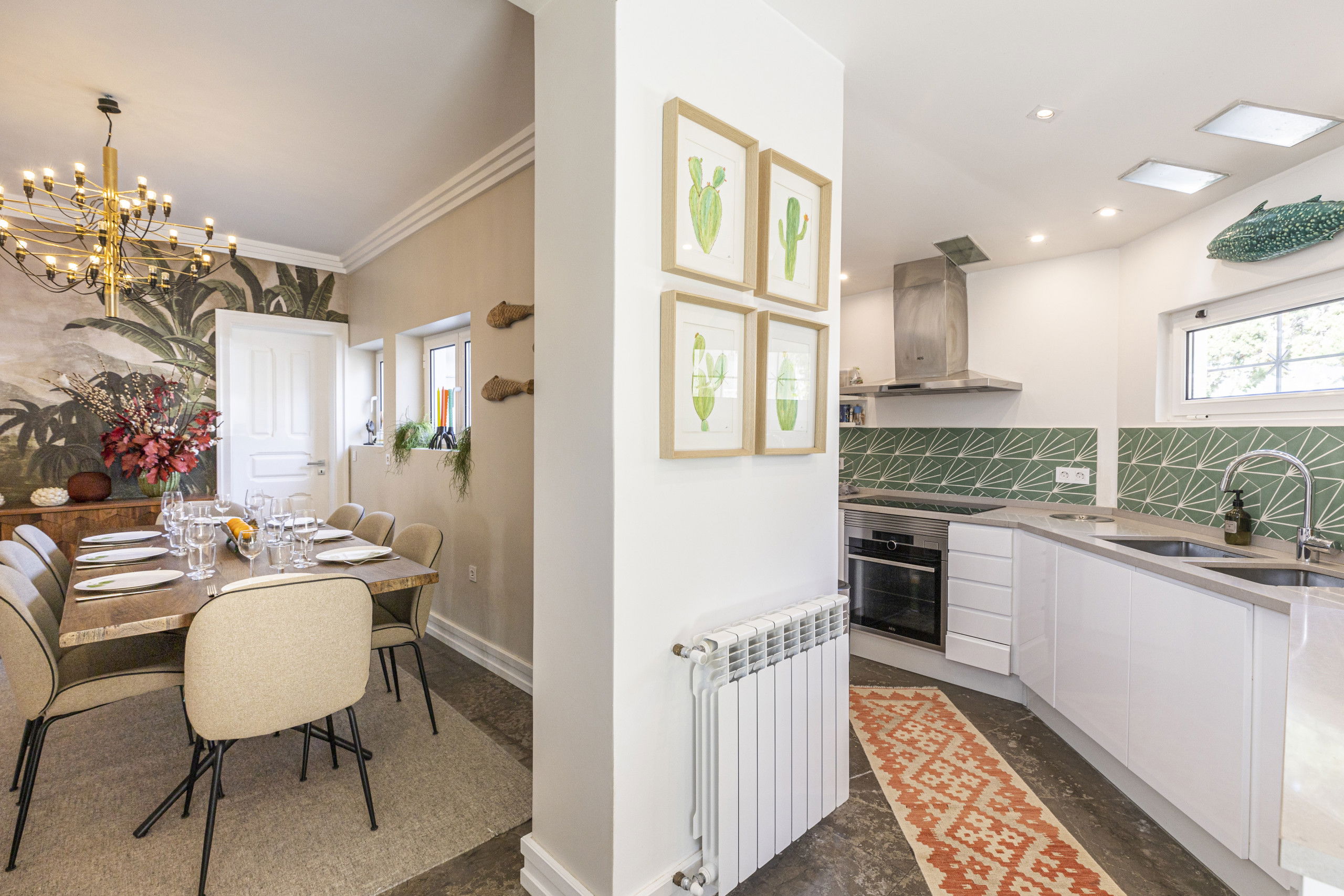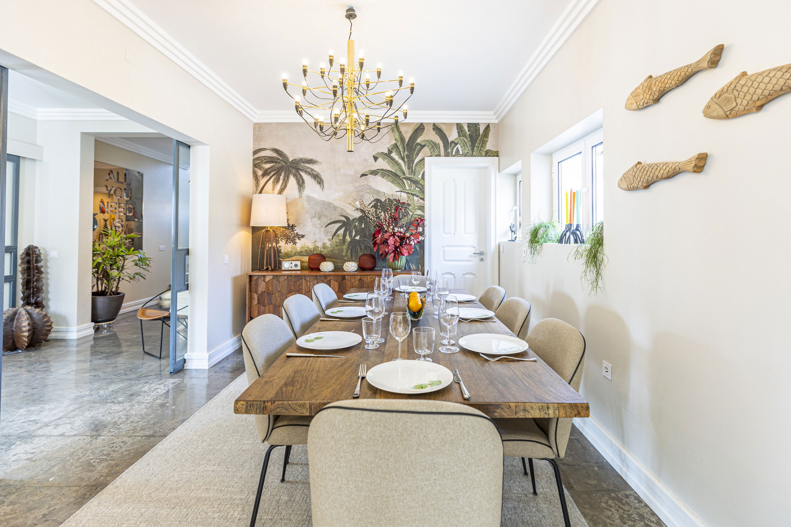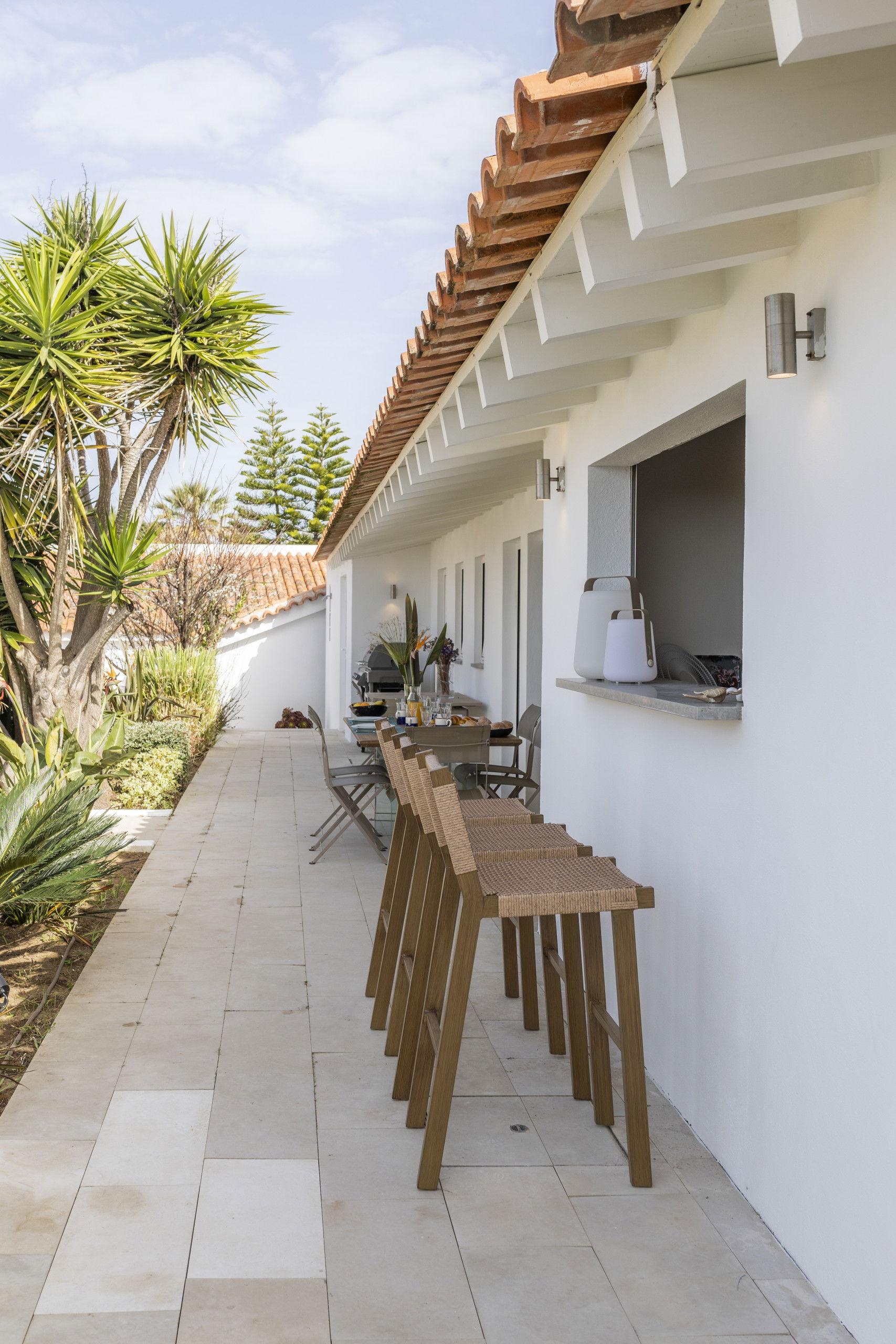 Située au cœur d'Estoril, l'une des villes de la Riviera portugaise les plus emblématiques, cette villa élégante est un véritable joyau. À seulement 30 minutes de Lisbonne et à proximité des plages dorées, son toit en tuiles rouges et ses murs blanchis à la chaux évoquent un charme intemporel, tandis que les intérieurs modernes offrent confort et sophistication décontractée. La maison principale comprend trois chambres avec salle de bain attenante, tandis qu'une annexe adjacente propose trois suites supplémentaires et une mezzanine, idéales pour les grandes familles ou les groupes multigénérationnels. À l'intérieur, les intérieurs sont frais et accueillants, avec des draps blancs, un éclairage ambré et des touches de pin doux. Les espaces de vie sont à la fois fonctionnels et amusants, avec un salon lumineux, un bar intérieur et une cuisine entièrement équipée qui s'ouvre sur une salle à manger grandiose encadrée par de l'art contemporain. Chaque coin de la maison a été soigneusement conçu pour créer un sentiment de chaleur et de fluidité naturelle. Alors que la villa principale profite des brises côtières, l'annexe bénéficie d'une climatisation dédiée.