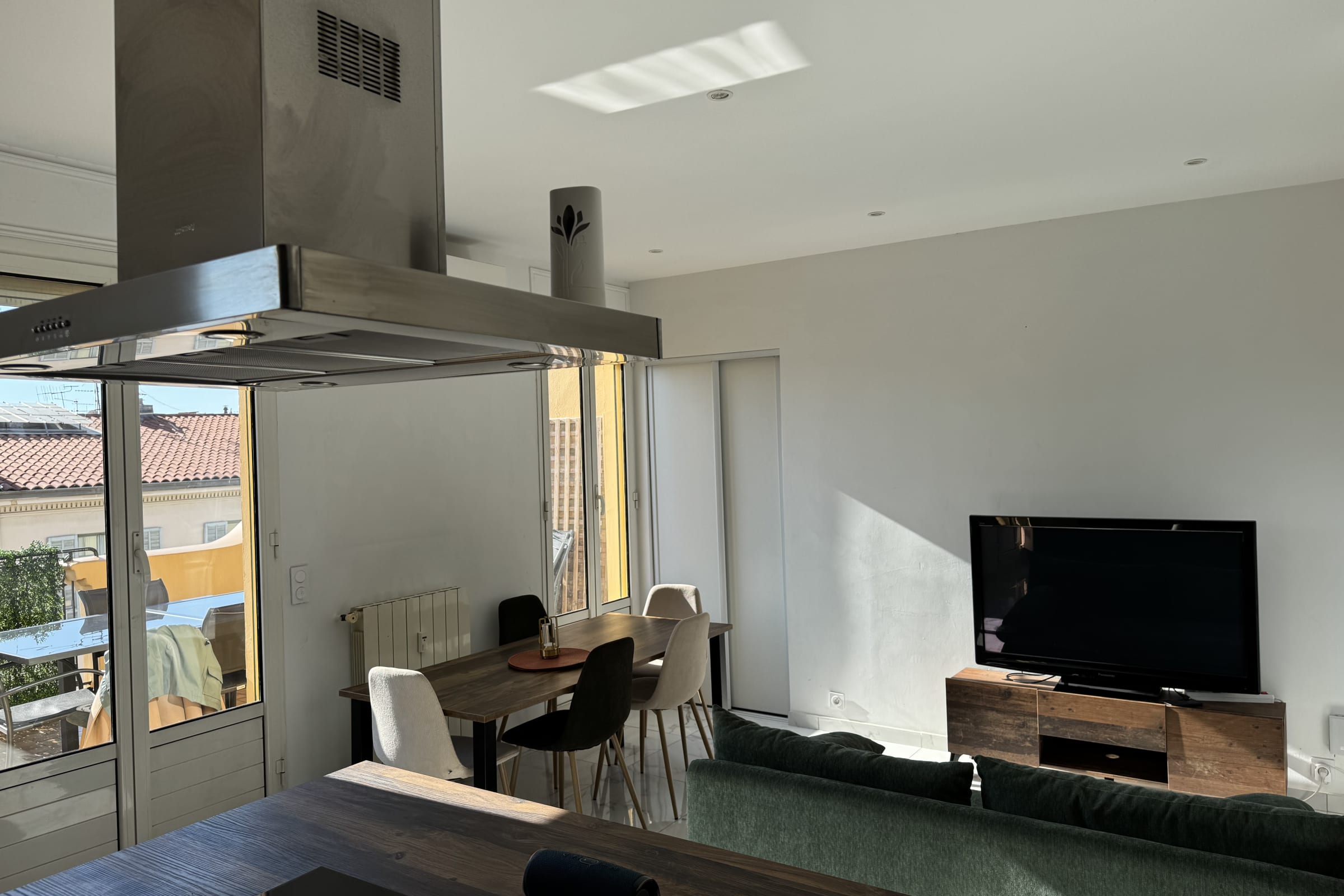 Situé rue Trachel à Nice, cet appartement moderne de 60 m², au 6ᵉ et dernier étage, offre un cadre confortable et lumineux, idéal pour un séjour en couple, en famille ou pour un déplacement professionnel.