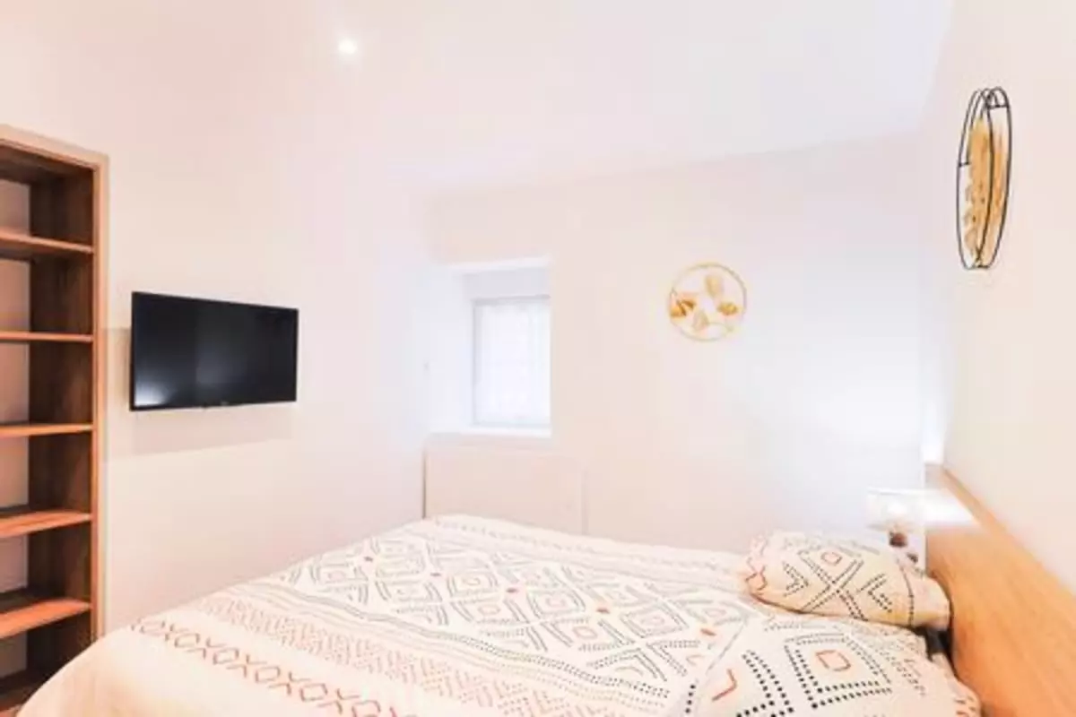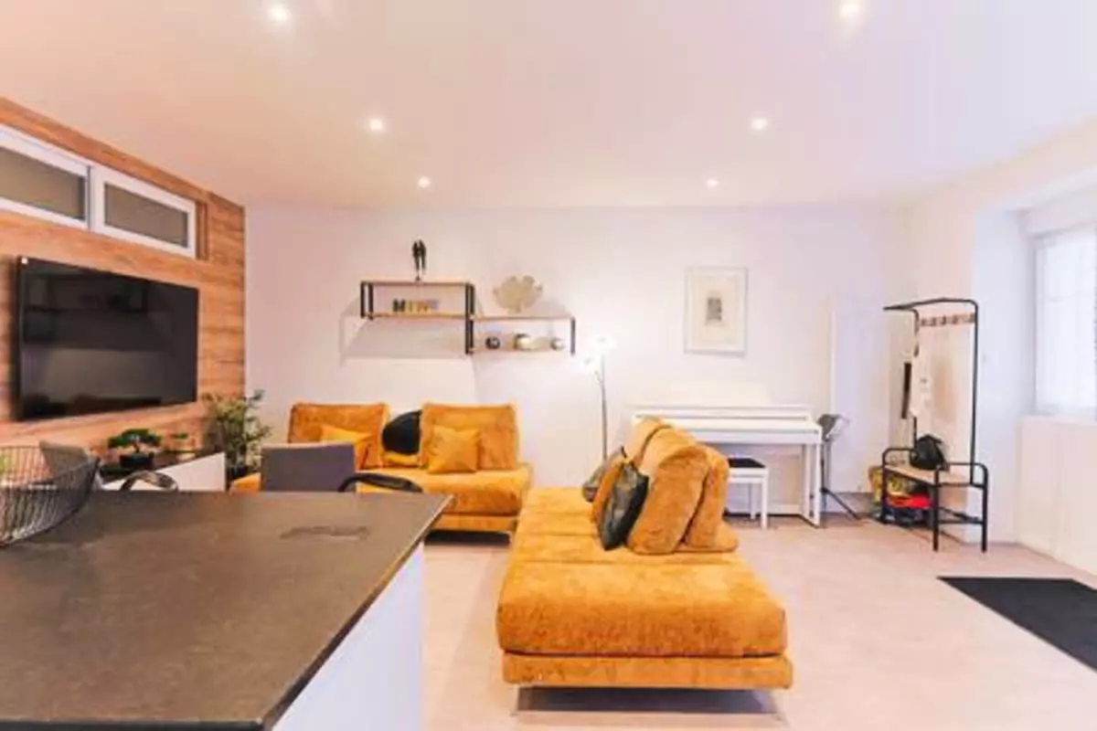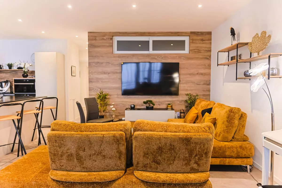 Un bel espace salon vous attend pour vous détendre après une journée bien remplie, équipé d’une télévision pour vos moments de détente et de convivialité.