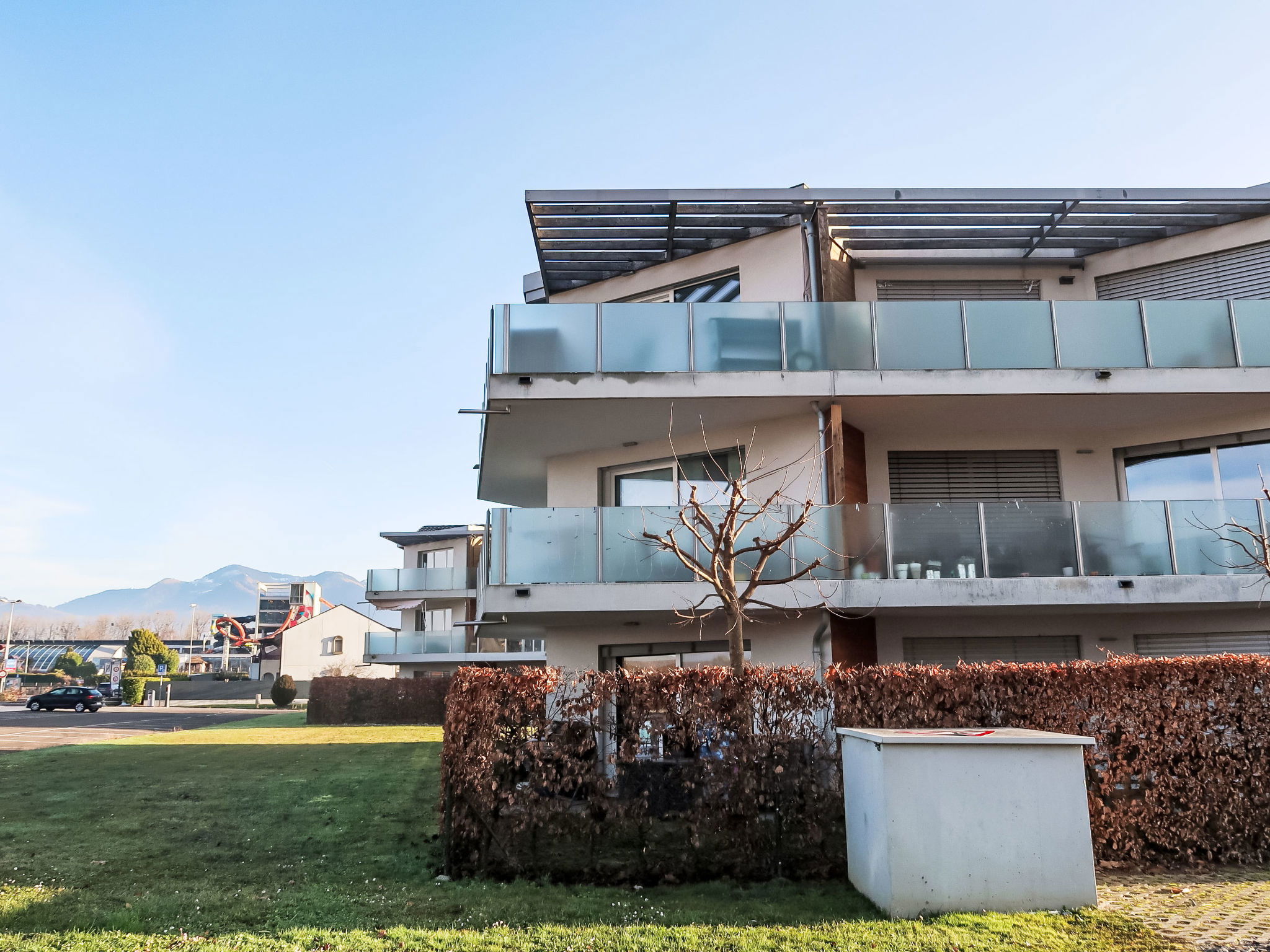 Immeuble. Dans la localité, dans un quartier résidentiel. Infrastructures de la Maison: chauffage central. Garage en commun. Supermarché 1.5 km, restaurant 300 m, boulangerie, café 850 m, arrêt de bus 1.3 km, gare ferroviaire 1.3 km, baignade en lac 300 m. Terrain de golf (9 trous) 8.1 km, piste cyclable 100 m. Attractions à proximité: Aquaparc 500 m, Swiss Vapeur Parc 1 km, Montreux 16 km, Evian-les-Bains 23 km. Les domaines skiables de renommée sont facilement accessibles: Portes du Soleil (Torgon) 21 km, Leysin 31 km. Les lacs connus sont facilement accessibles: Lac Léman 300 m. Région de randonnées: Portes du Soleil.