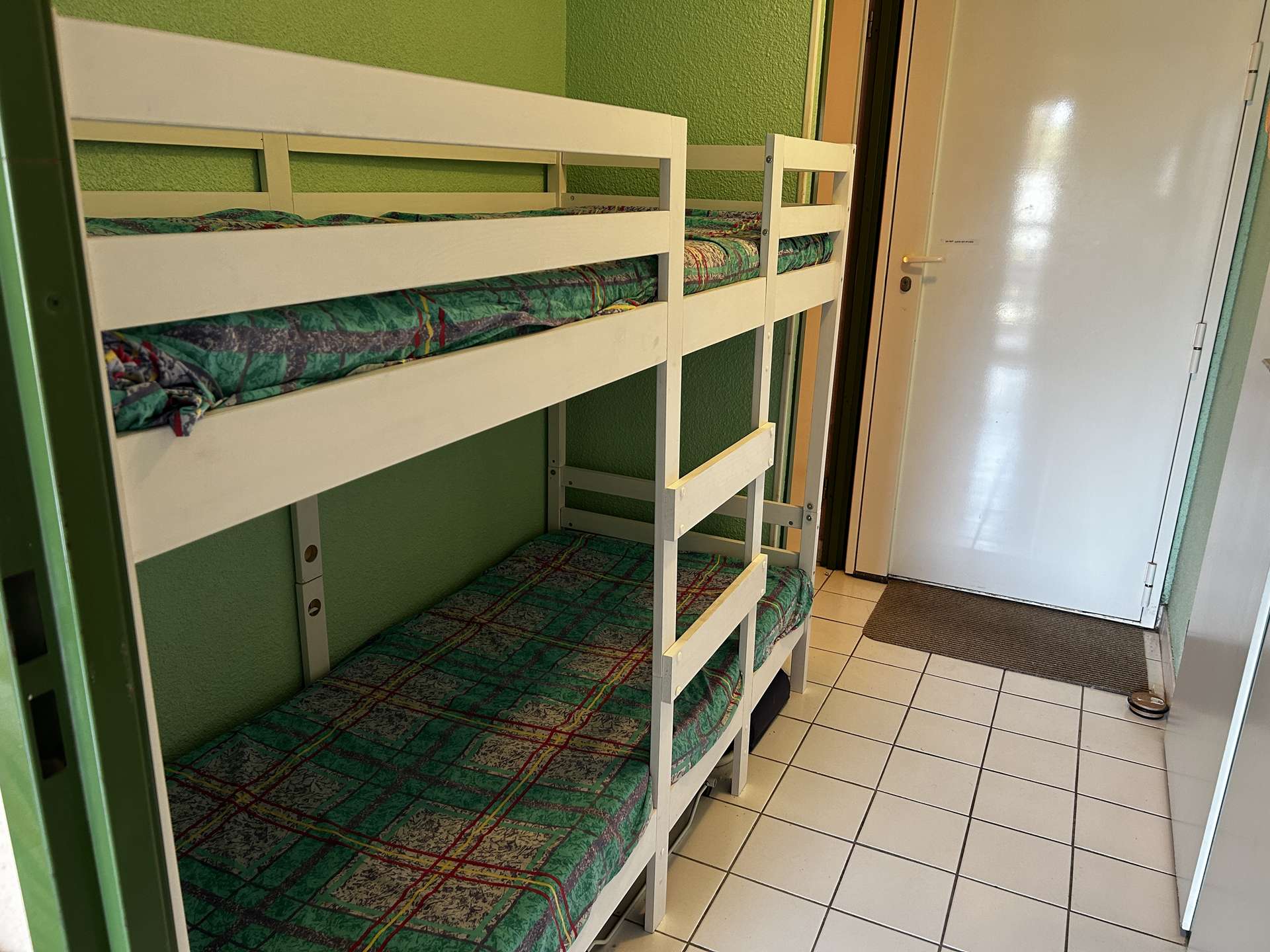 P2 de 28 m2 au 2 émè étage avec ascenseur,exposé sud-Ouest avec loggia et vue sur la piscine et le lac Salonique.Séjour avec un bz et télévision. Cuisine avec micro-ondes/four électrique et 2 plaques de cuisson électriques. Chambre avec un lit en 140 , et coin cabine à l'entrée avec un lit superposé en 90 . Salle de bain avec baignoire et WC séparè.