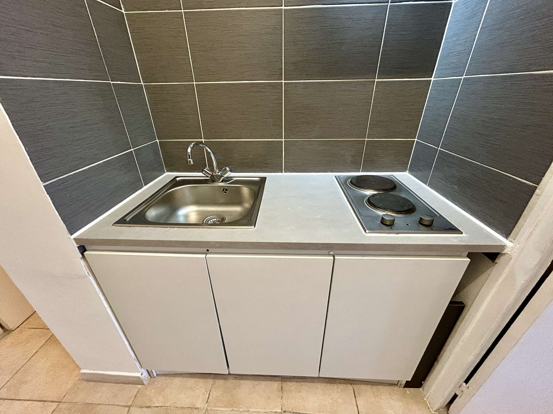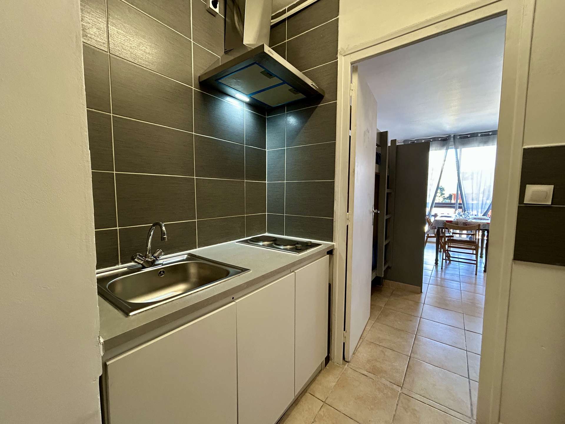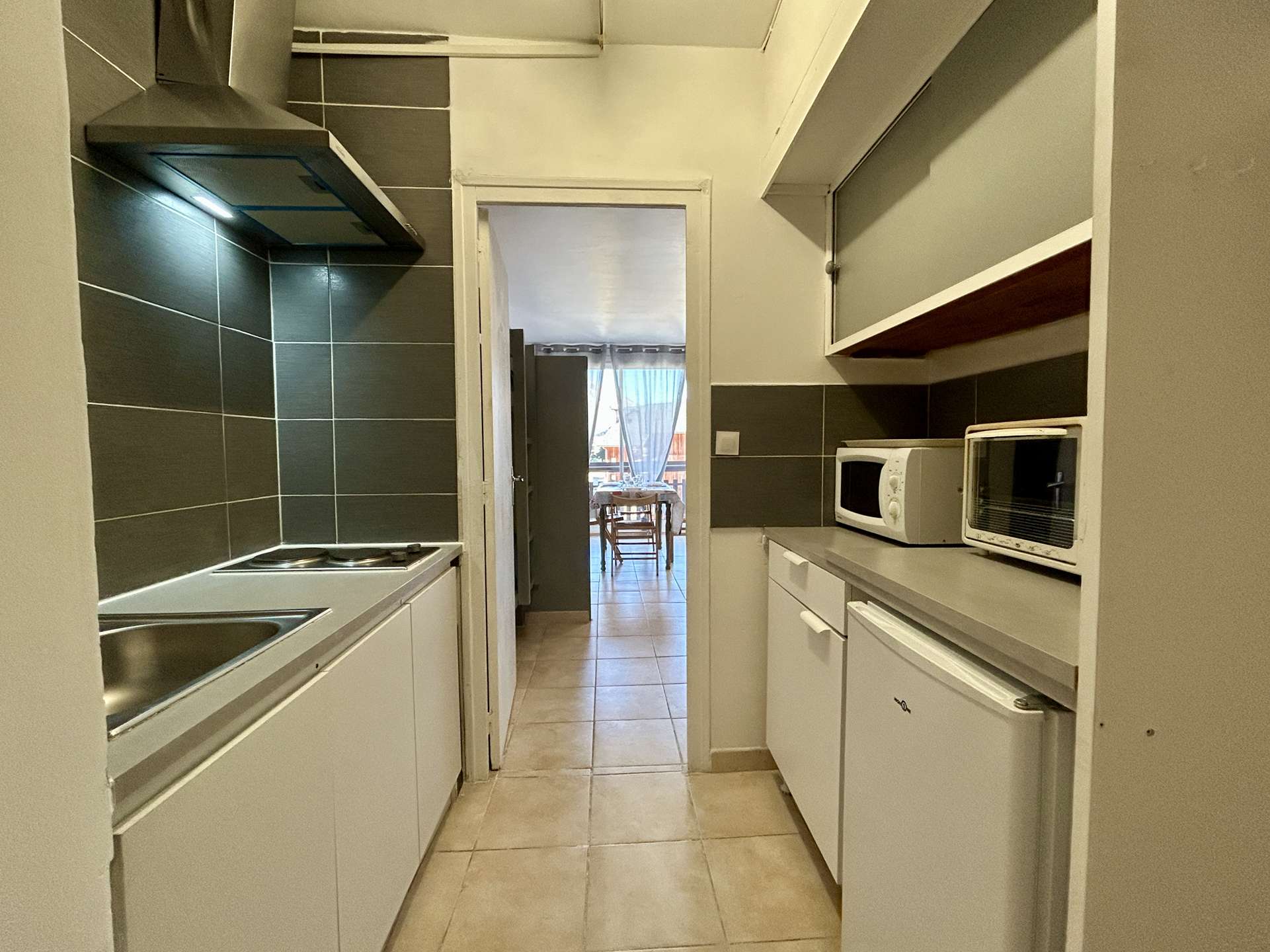 Il comprend une entrée desservant la salle d'eau / WC, une cuisine séparée équipée d'un micro-onde, d'un four, de plaques électriques, d'un réfrigérateur, d'une cafetière à dosette...