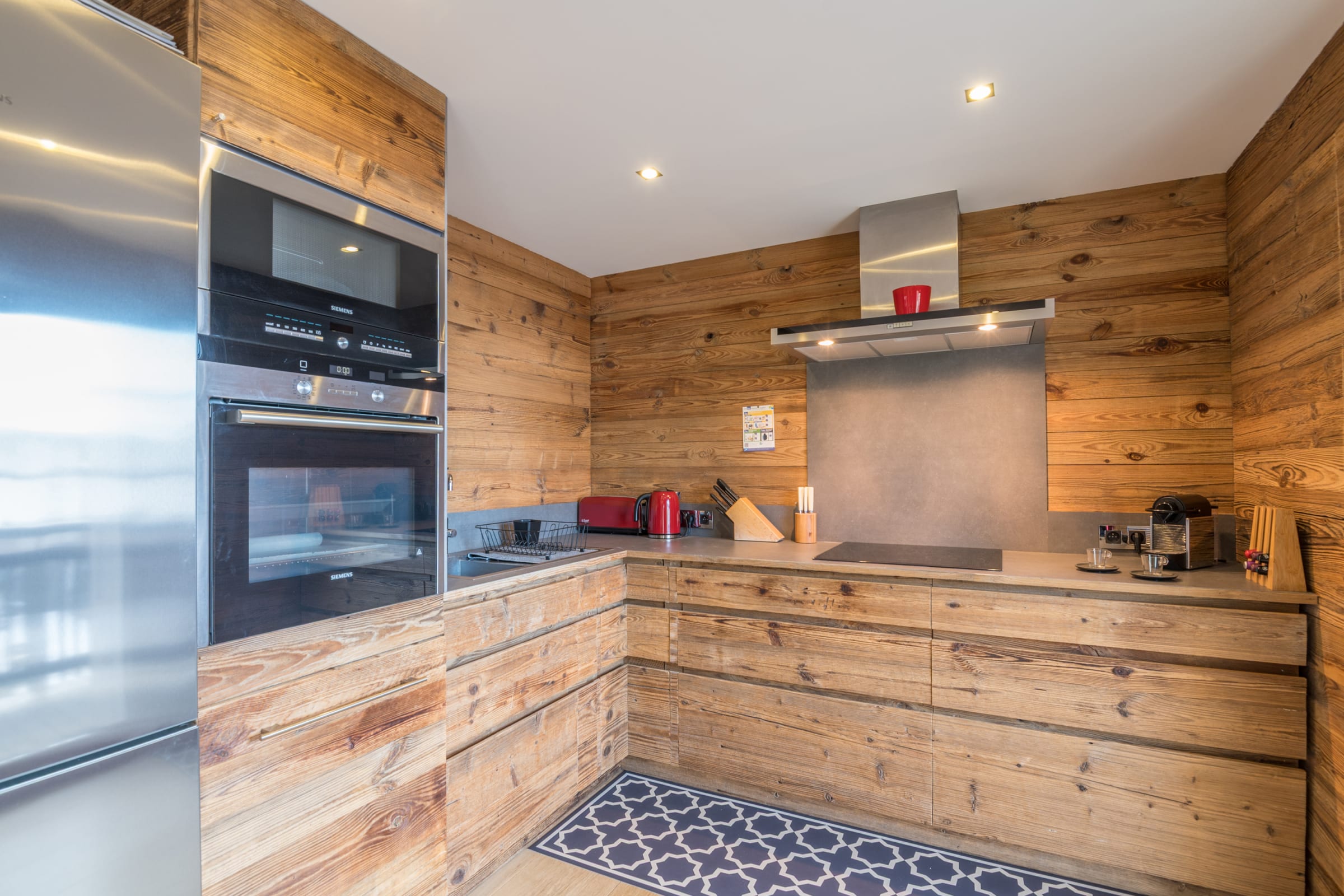 - une cuisine parfaitement équipée (Machine à café, Grille-pain, Mixeur, Bouilloire, Four, Four micro-ondes, Plaques de cuisson, Lave-vaisselle, Réfrigérateur, Congélateur),