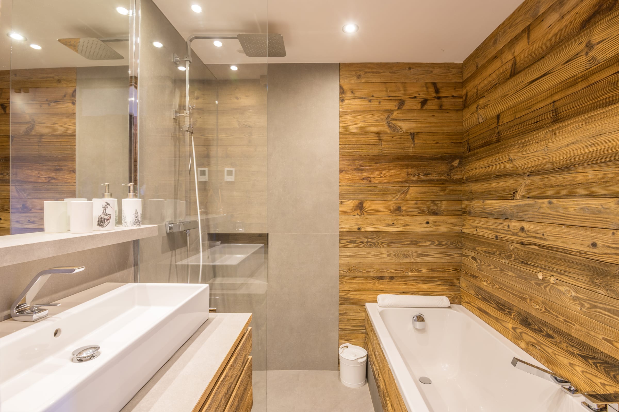 - 1 salle de bain avec douche et baignoire