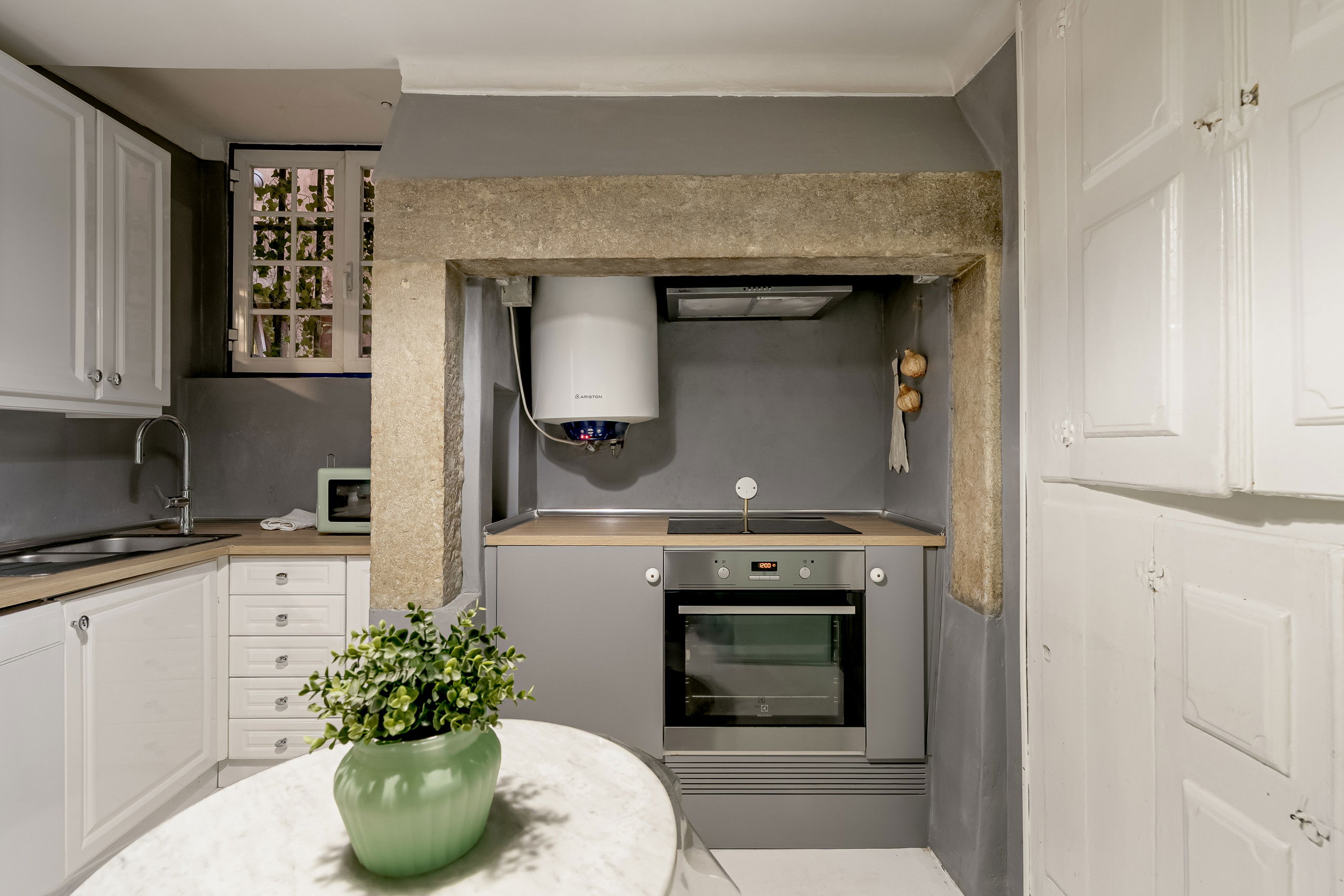 L'appartement dispose d'une salle de bain complète avec douche, parfaite pour se détendre après une journée de visites dans la ville. La cuisine, bien que compacte, possède les équipements essentiels pour préparer des repas rapides et pratiques.