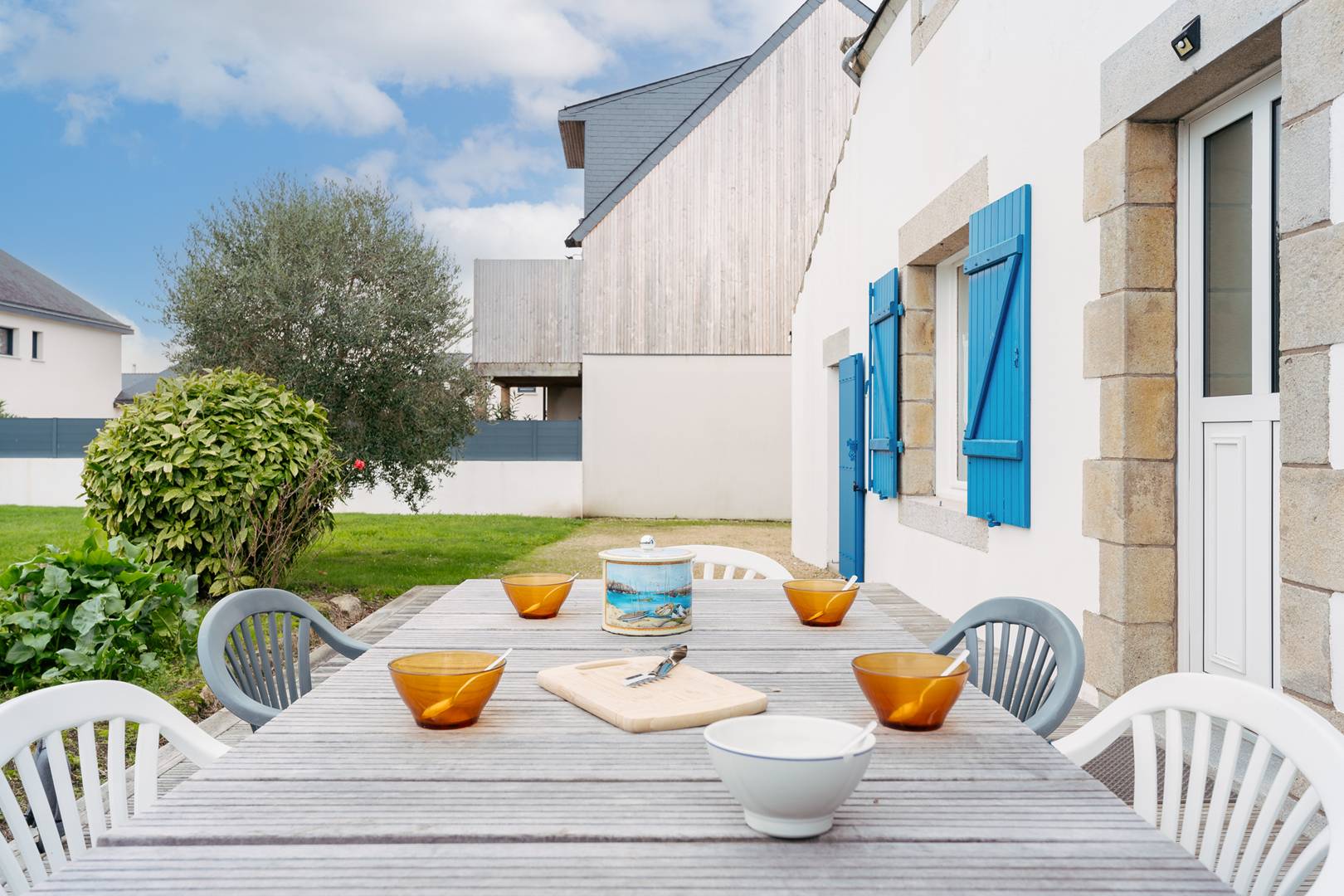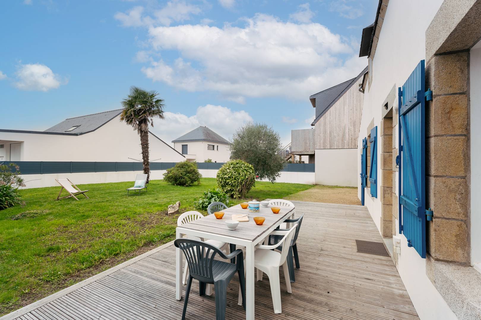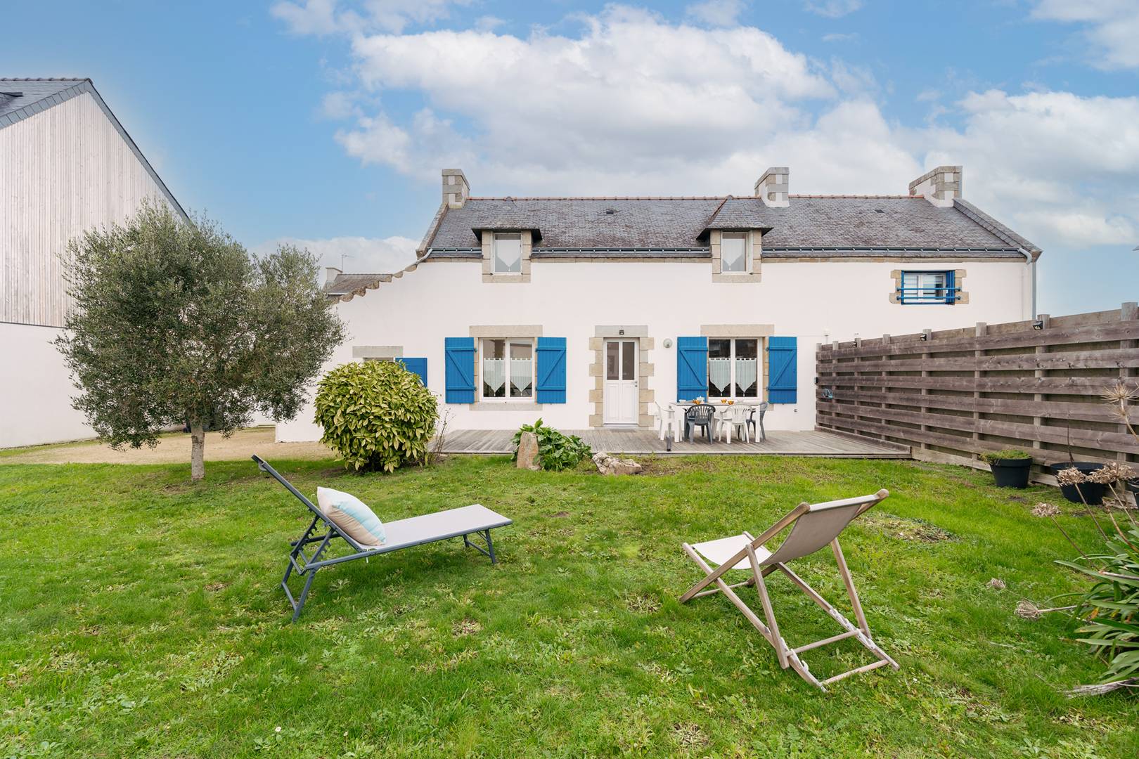 Dans le Golfe du Morbihan, jolie maison de vacances à Saint Philibert proche des plages et de toutes commodités, pour 7 personnes (env. 90m²) avec grand jardin clos de 500m² :