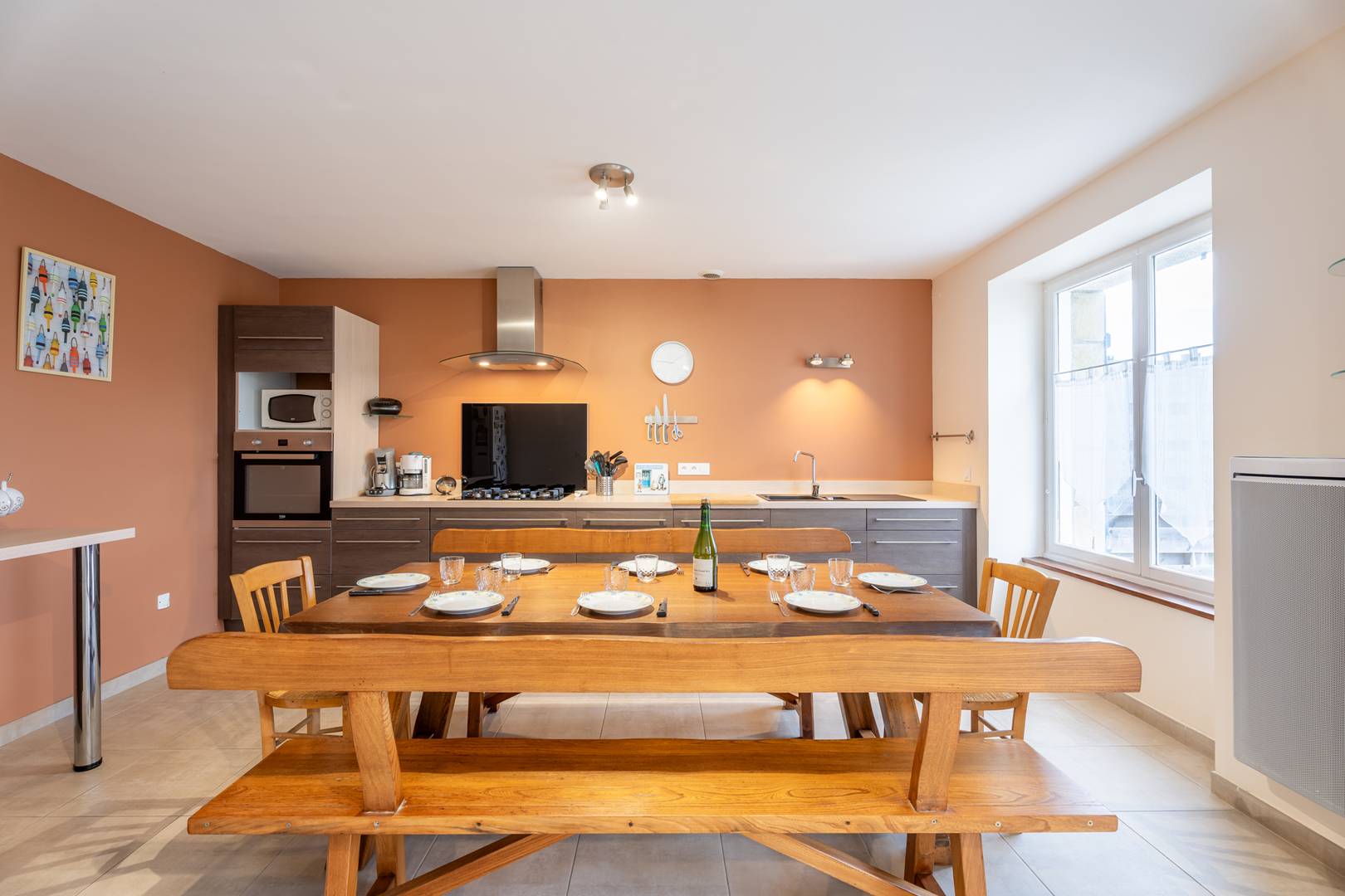 - Belle cuisine moderne toute équipée (four, plaques de cuisson à gaz 5 feux, micro-ondes, réfrigérateur / congélateur, lave-vaisselle)