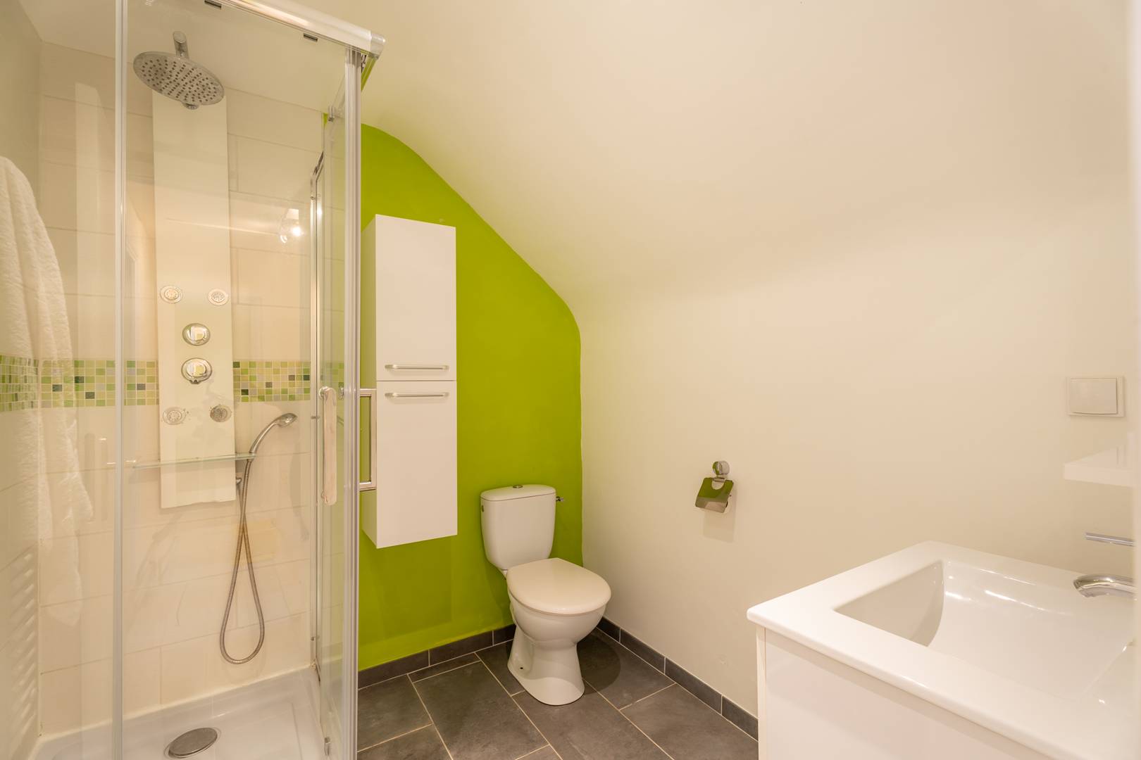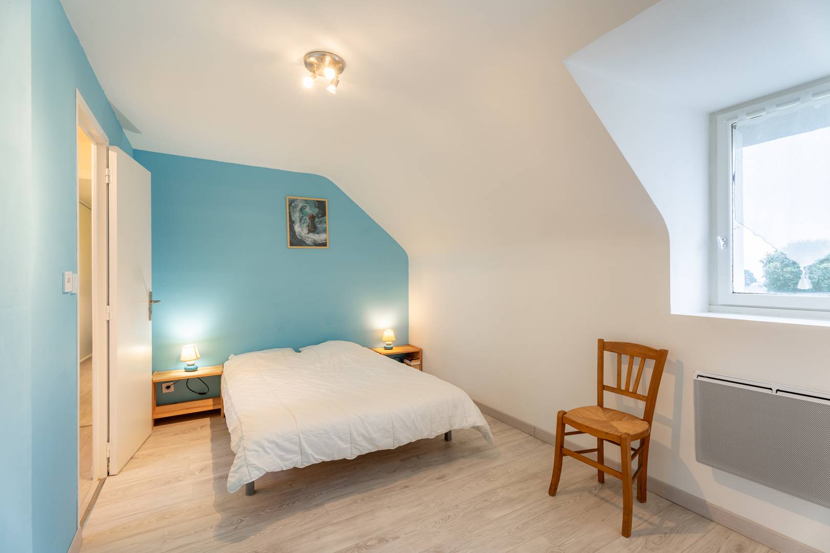 - 1 chambre avec 1 lit double (140, couette), et un lit simple (90, couette), grand placard de rangement et matériel de puériculture à disposition (lit bébé, chaise haute, table à langer)