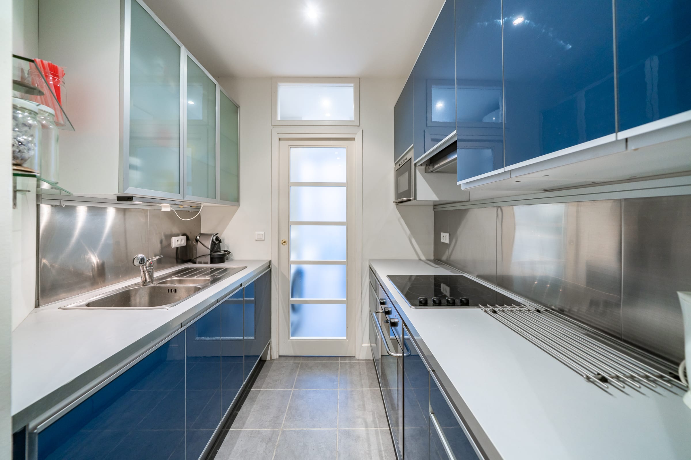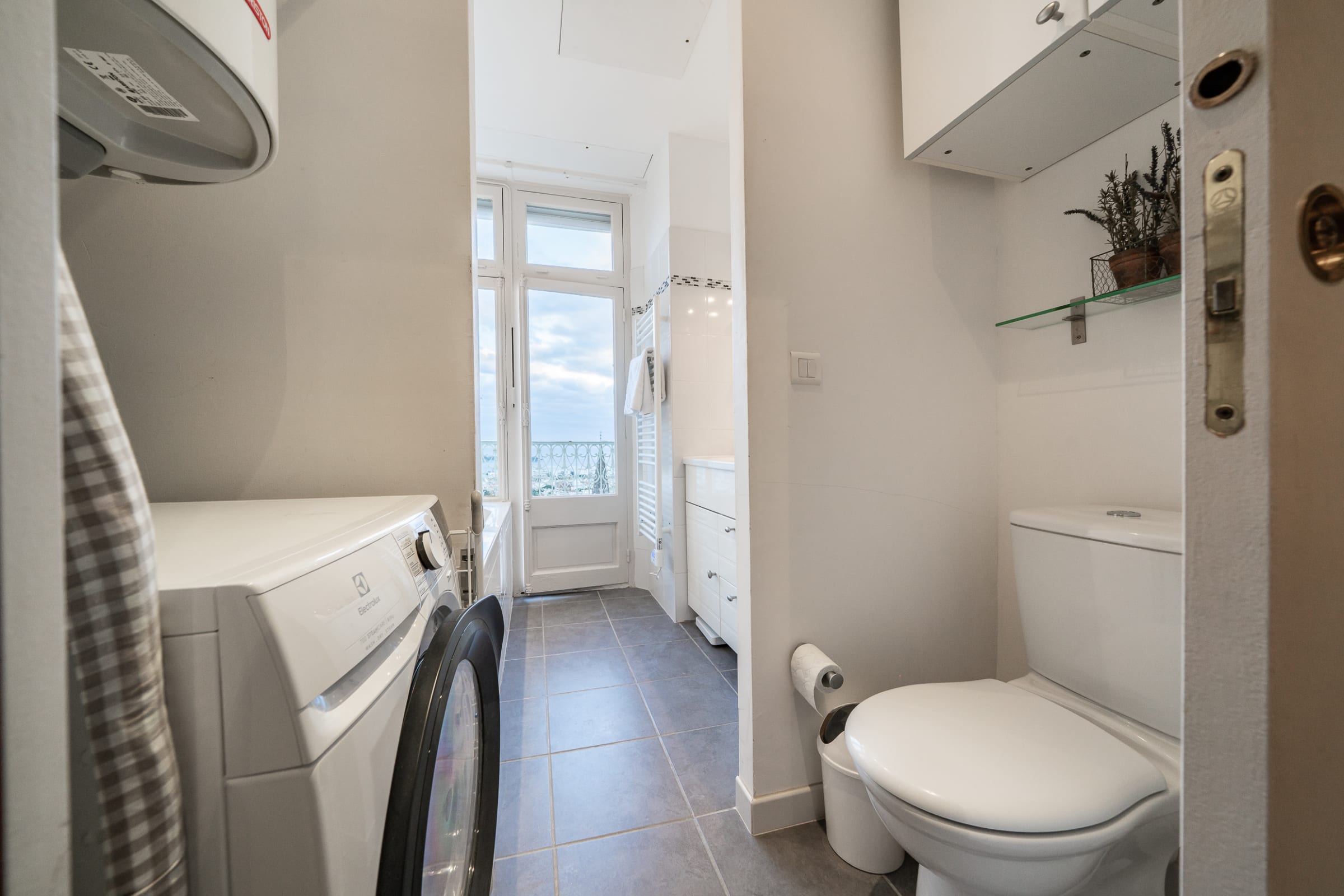 Cuisine entièrement équipée : four, micro-ondes, plaques, réfrigérateur/congélateur, lave-vaisselle, lave-linge