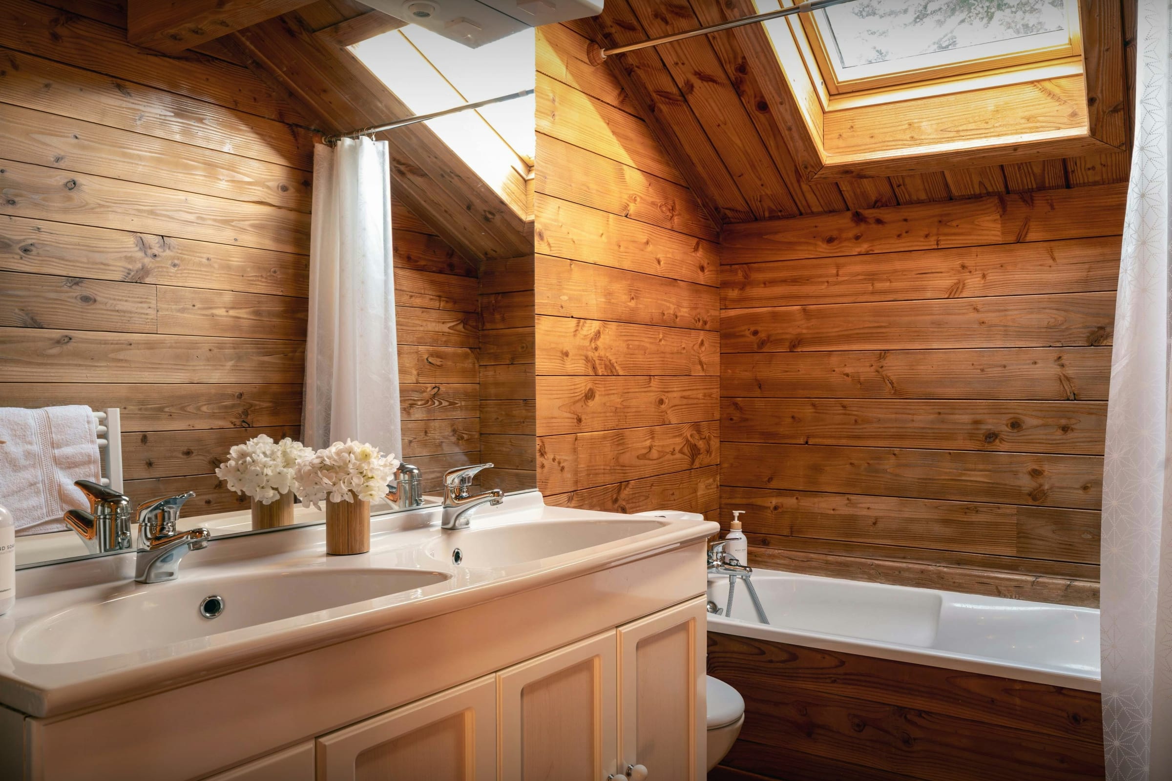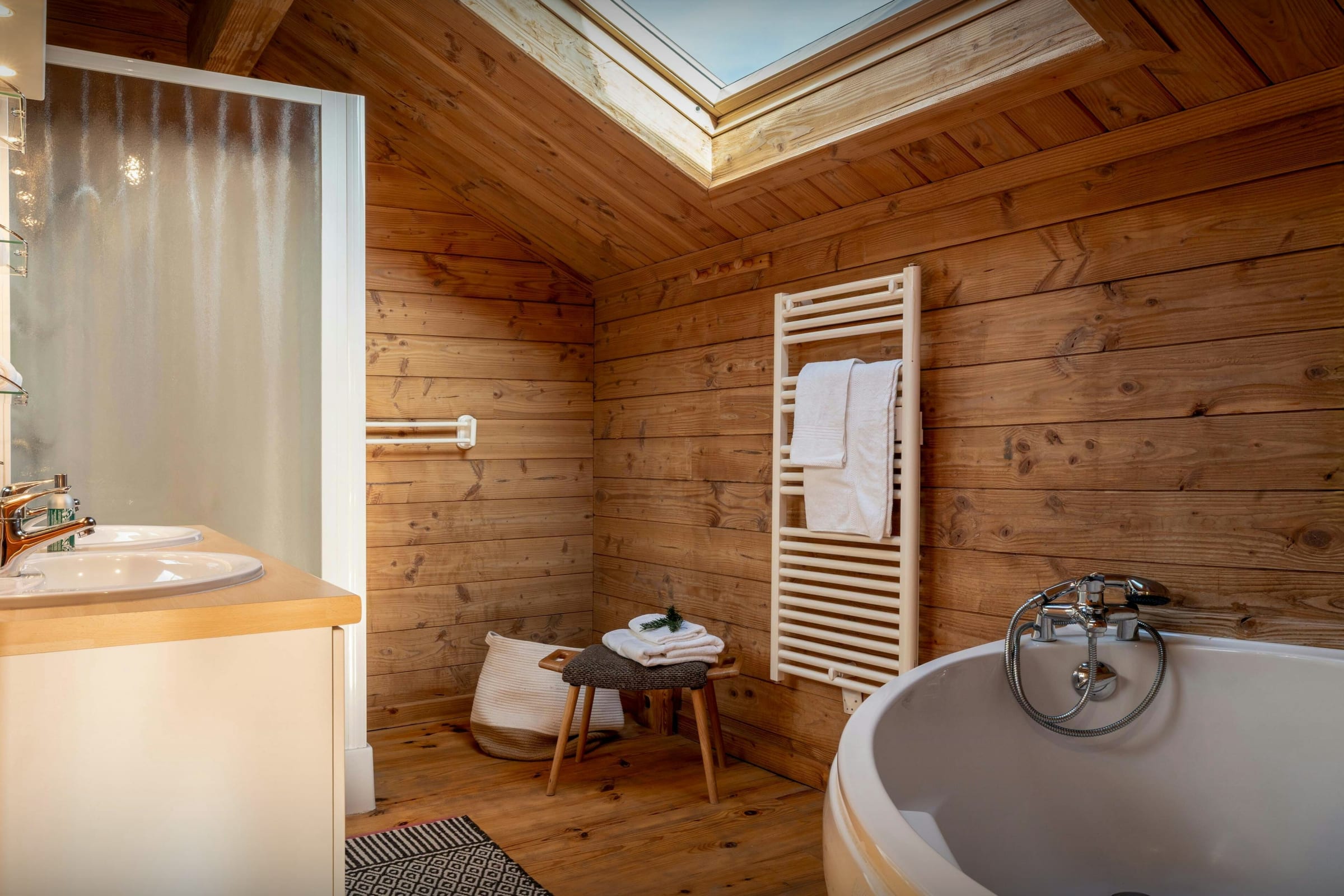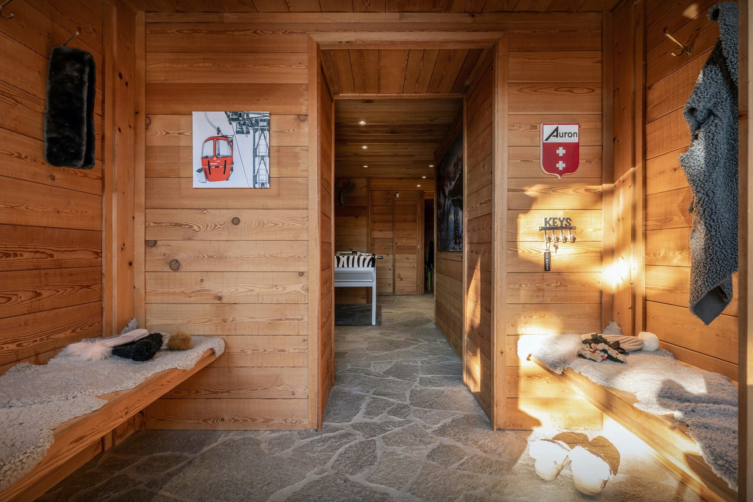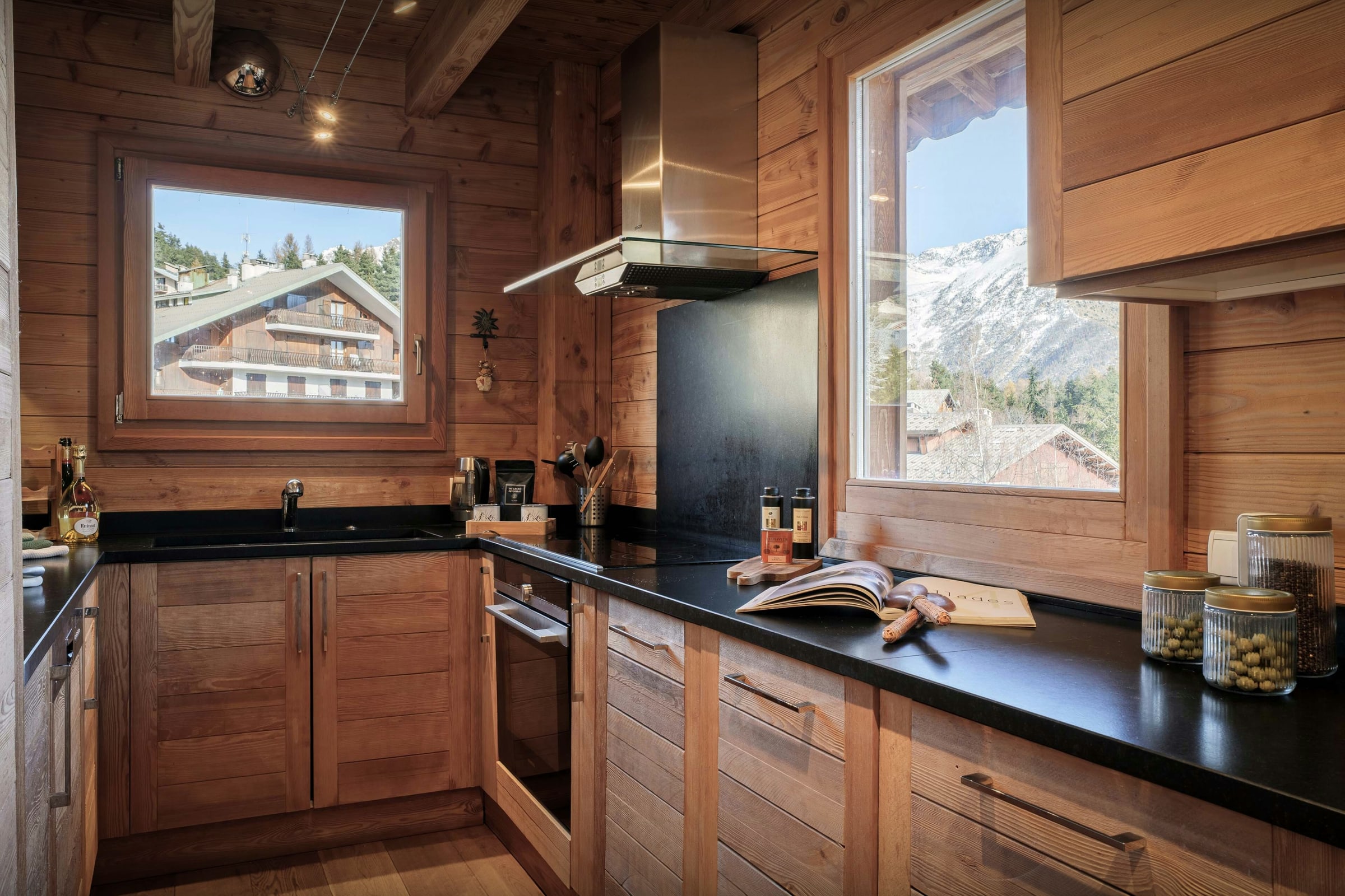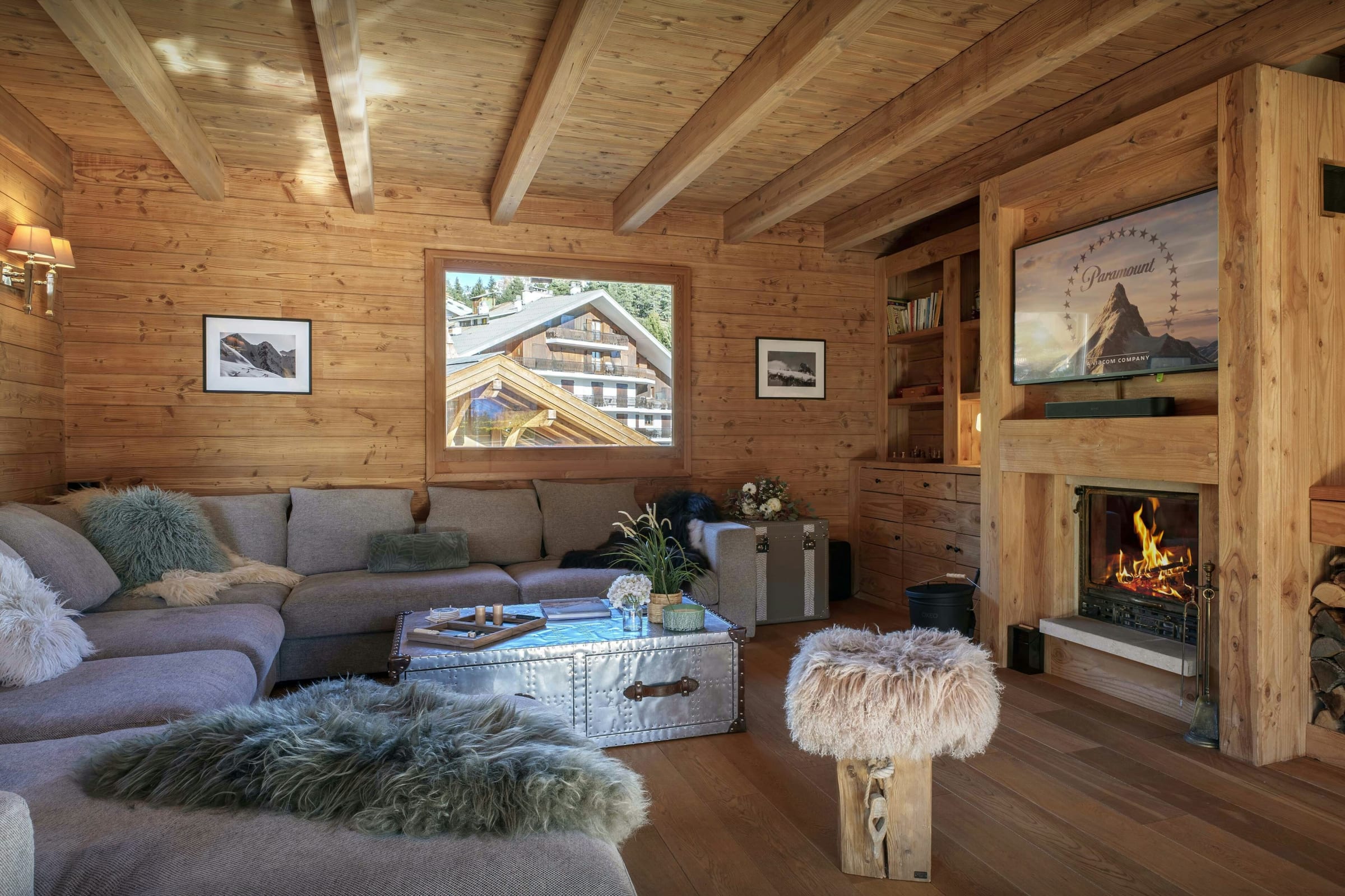 Nous apprécions particulièrement la diversité des atmosphères qu’offre ce chalet. Son espace bien-être, composé d’un sauna et d’un bain nordique extérieur, sera un véritable refuge après une journée d’activités. Le grand écran de sa salle de cinéma animera les soirées et journées pluvieuses, tandis que son vaste salon permettra de se retrouver autour d’un bon feu de cheminée.
