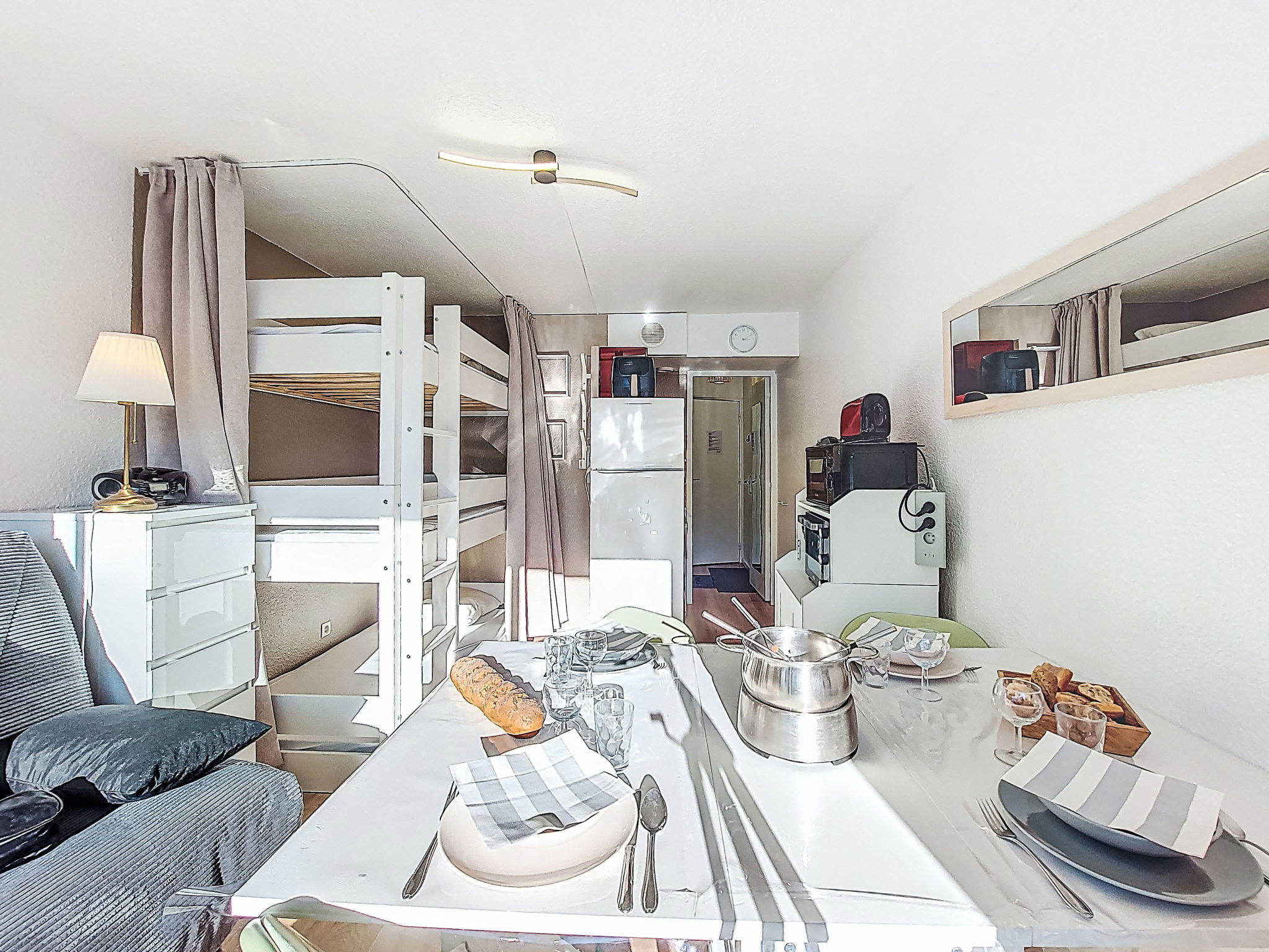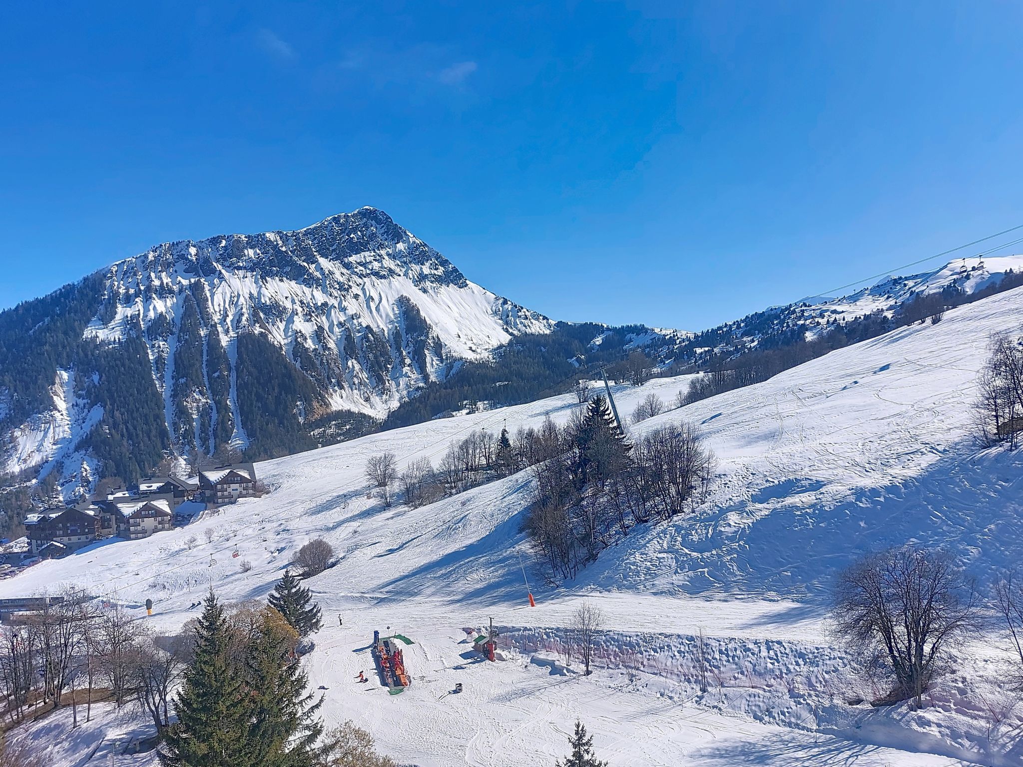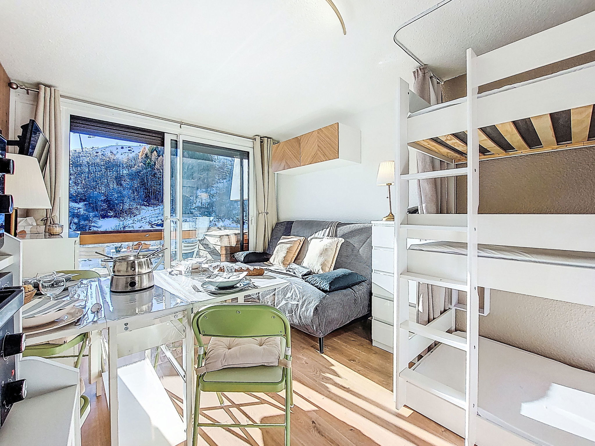 Studio 22 m2 au 9ème étage, situation sud. Aménagement agréable et moderne: séjour/salle à manger avec 1 divan-lit double (140 cm, longueur 190 cm), 1 x 2 lits superposés (90 cm, longueur 190 cm), TV. Sortie sur le balcon, orientée sud. Petite cuisine (mini-four, four, lave-vaisselle, 2 plaques à induction, bouilloire électrique, micro-ondes, congélateur, cafetière électrique, Capsules pour machine à café (Dolce Gusto) (NON INCLUSES), appareil à raclette). Bain/WC. Chauffage électrique. Balcon 4 m2, situation sud. Mobilier de balcon, chaises longues (2). Vue sur les pistes de ski. A disposition: lave-linge, fer à repasser, sèche-cheveux. Internet (Connexion WIFI, en sus). Veuillez noter: logement non-fumeur. Détecteur de fumée. Annonce d'un particulier (art 155, IV du CGI).