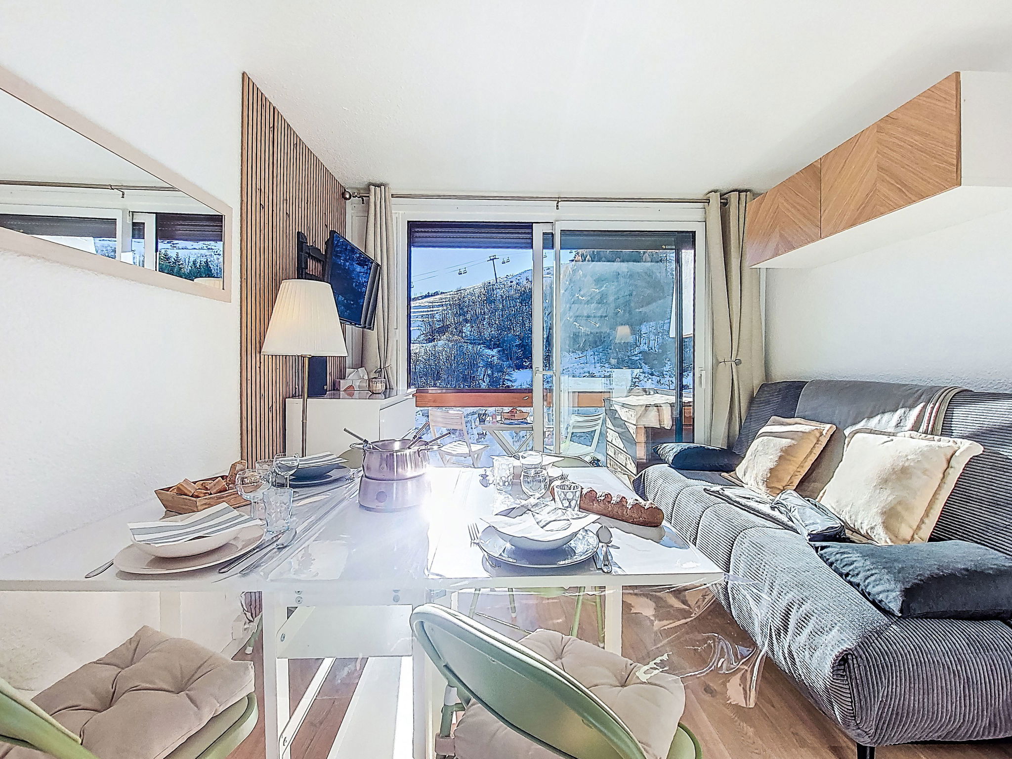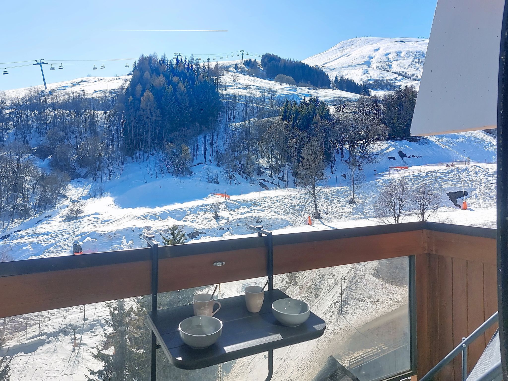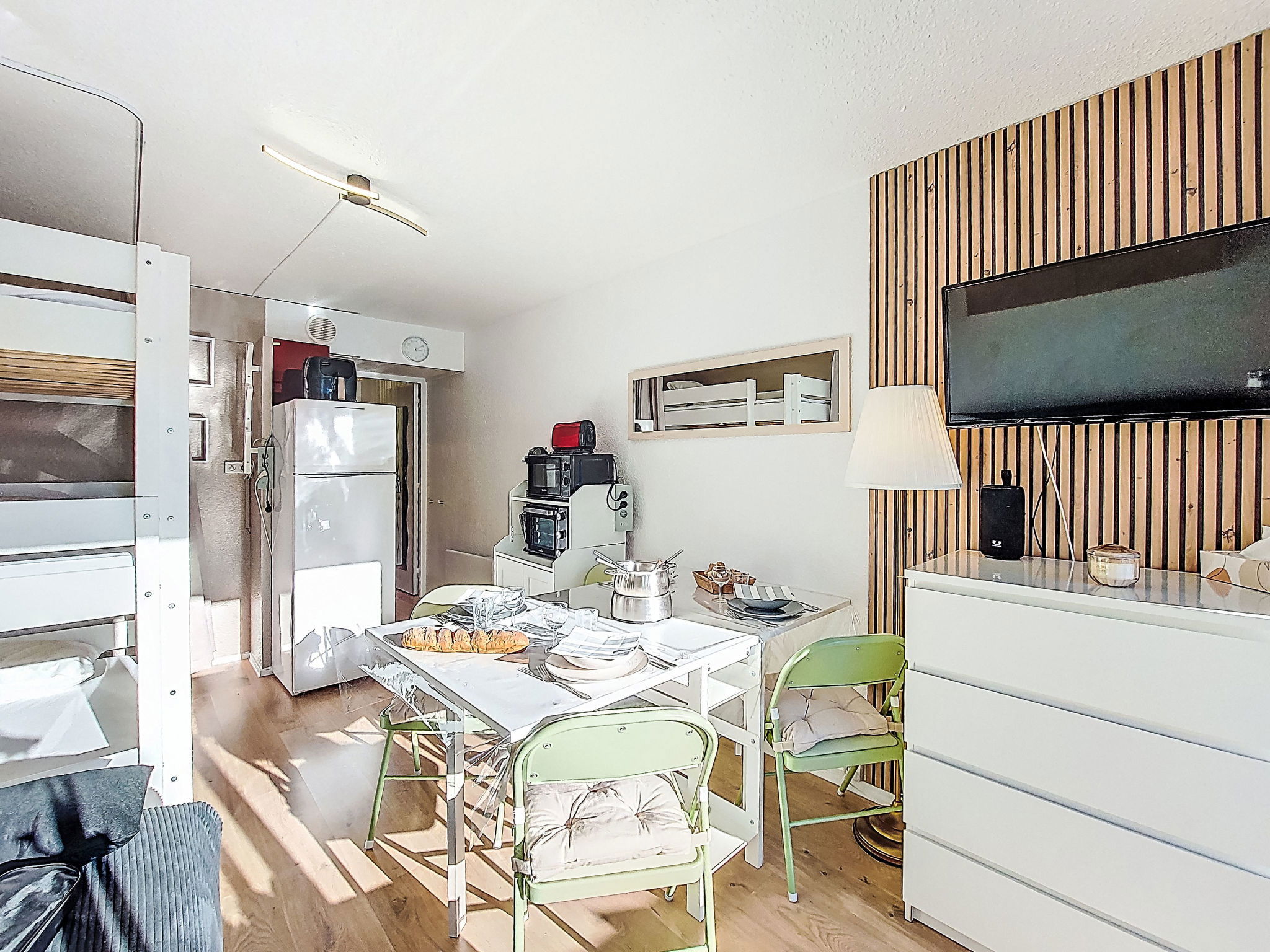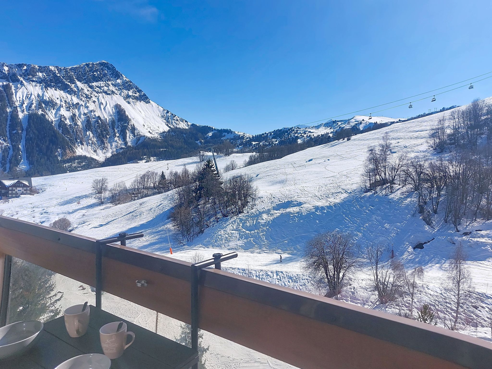 Studio 22 m2 au 9ème étage, situation sud. Aménagement agréable et moderne: séjour/salle à manger avec 1 divan-lit double (140 cm, longueur 190 cm), 1 x 2 lits superposés (90 cm, longueur 190 cm), TV. Sortie sur le balcon, orientée sud. Petite cuisine (mini-four, four, lave-vaisselle, 2 plaques à induction, bouilloire électrique, micro-ondes, congélateur, cafetière électrique, Capsules pour machine à café (Dolce Gusto) (NON INCLUSES), appareil à raclette). Bain/WC. Chauffage électrique. Balcon 4 m2, situation sud. Mobilier de balcon, chaises longues (2). Vue sur les pistes de ski. A disposition: lave-linge, fer à repasser, sèche-cheveux. Internet (Connexion WIFI, en sus). Veuillez noter: logement non-fumeur. Détecteur de fumée. Annonce d'un particulier (art 155, IV du CGI).