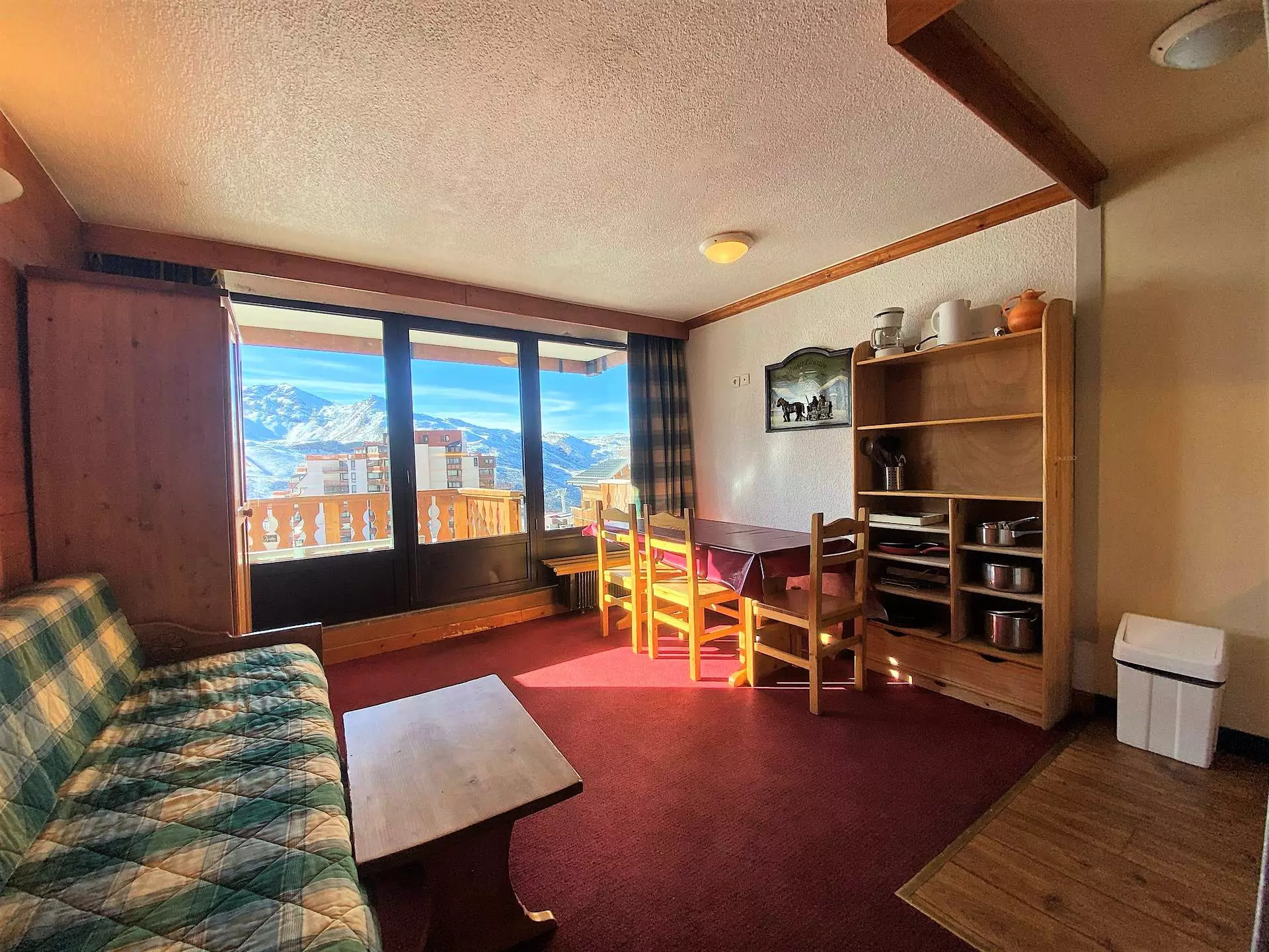 Il ofre une vue sur la station et la rue animée de Val Thorens.