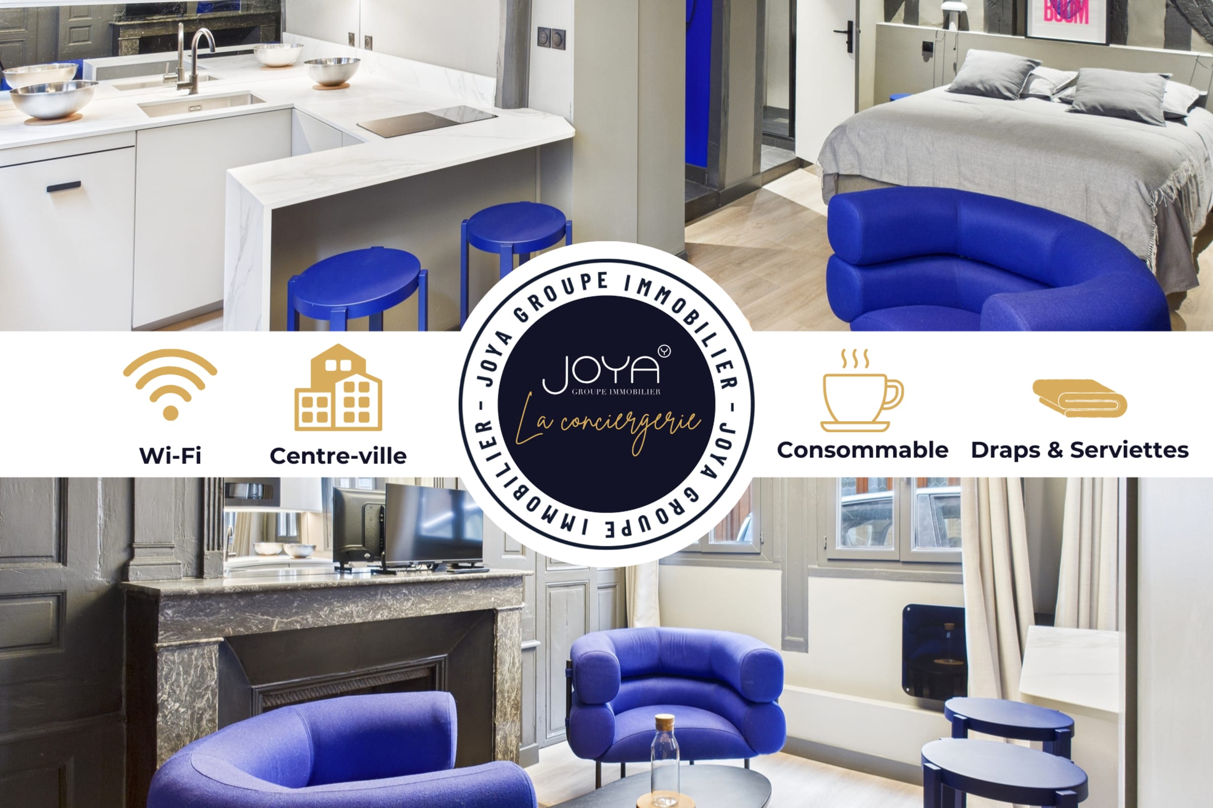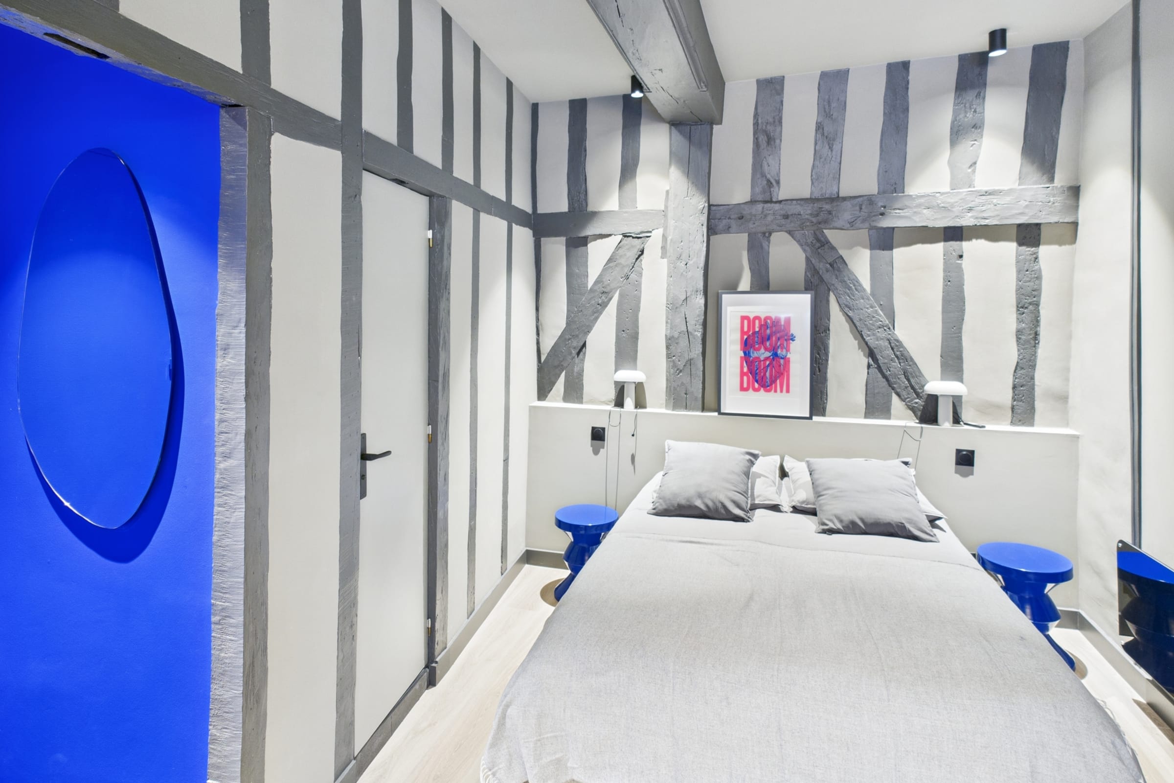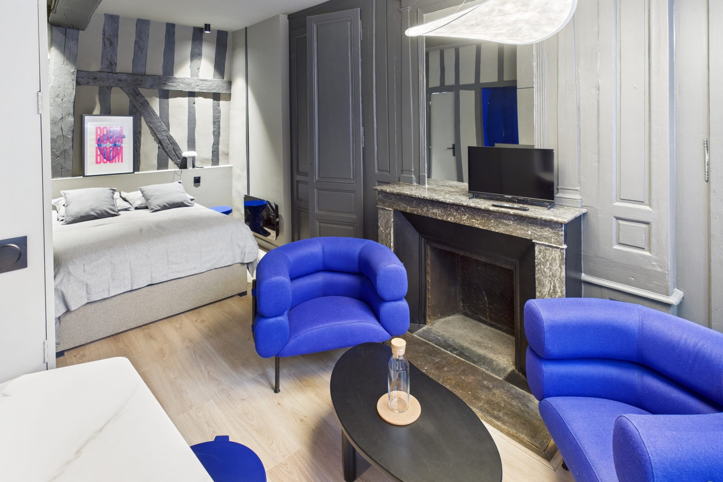 ✨ Studio atypique au design soigné, sublimé par un mobilier bleu Majorelle, pour un séjour plein de charme.