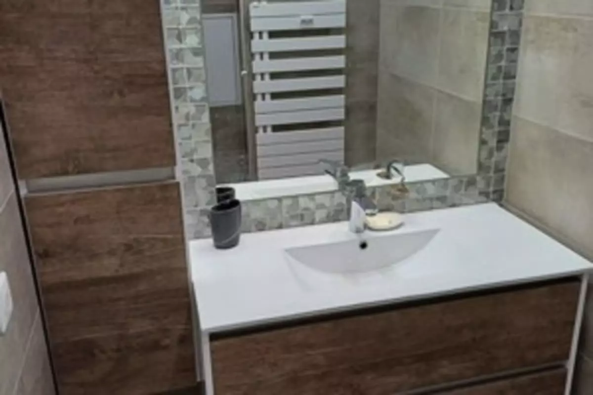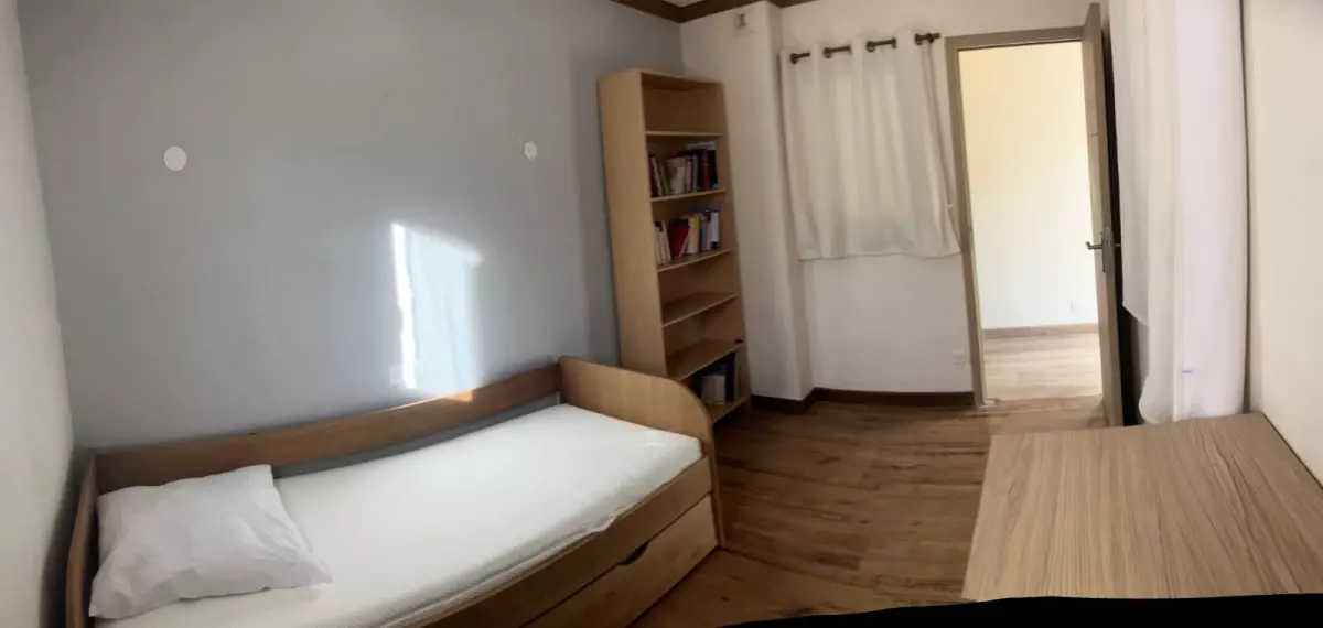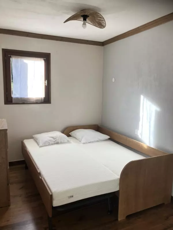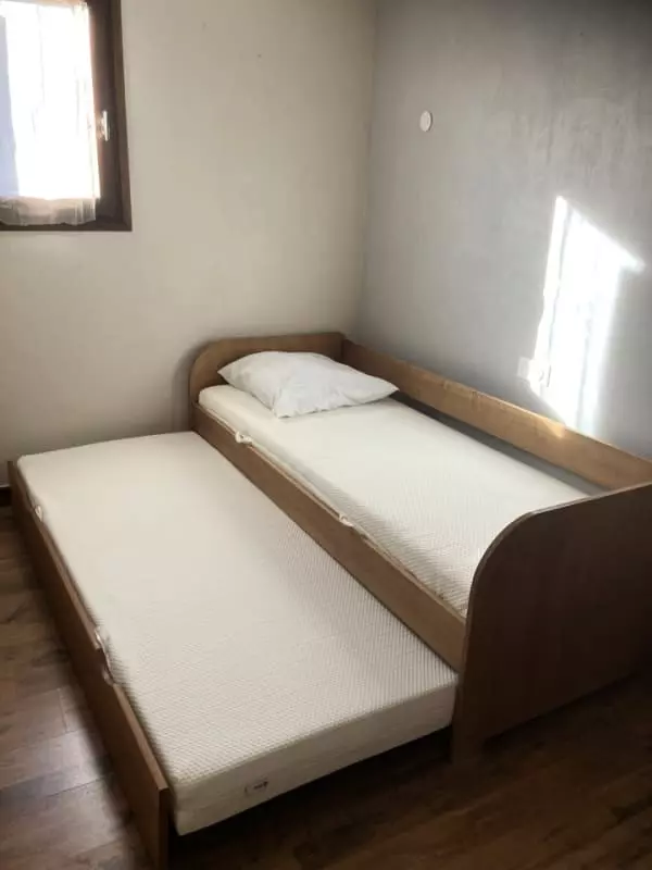 -La deuxième chambre : lit superposé 80x190cm avec tiroirs de rangements, un lave-linge, lavabo et toilette.