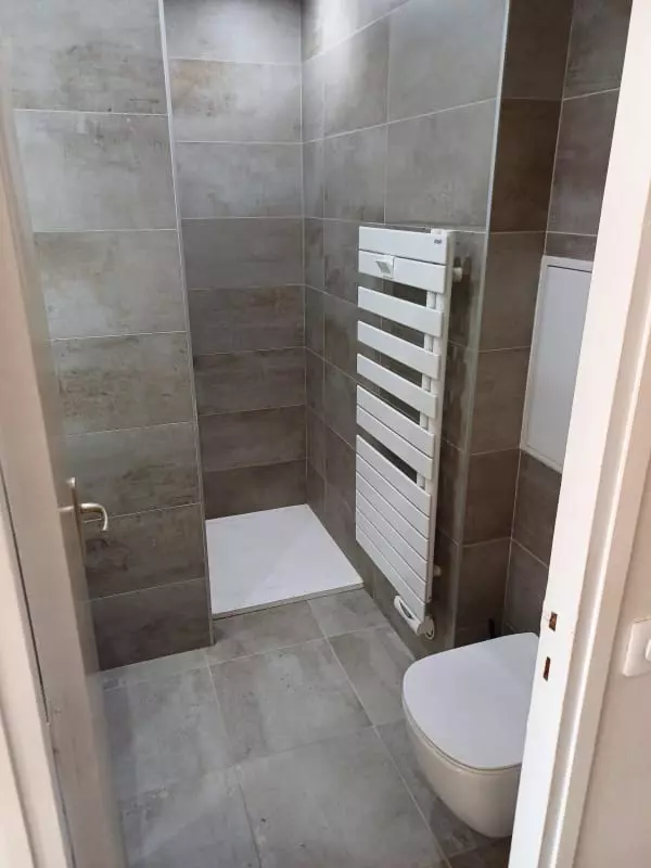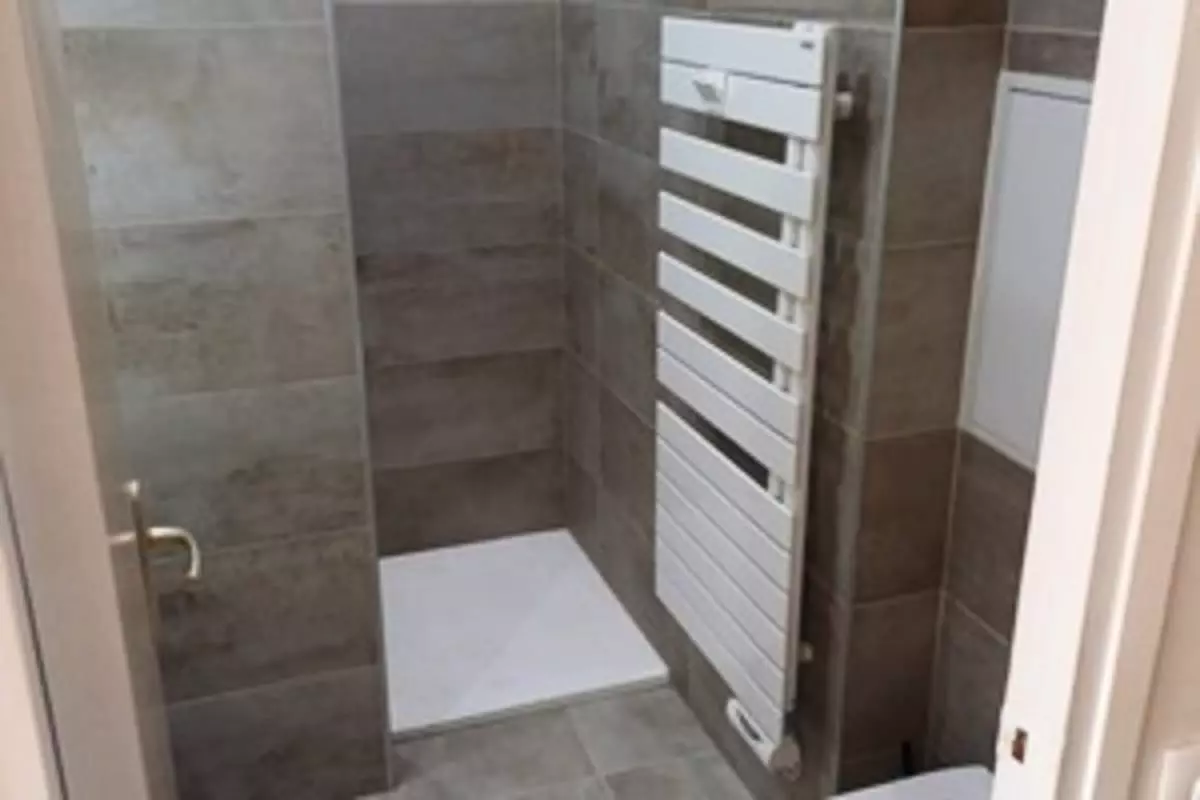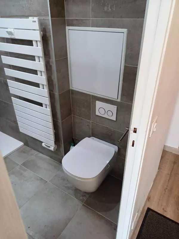 Une salle de bain fonctionnelle, avec douche italienne, lavabo et toilette.