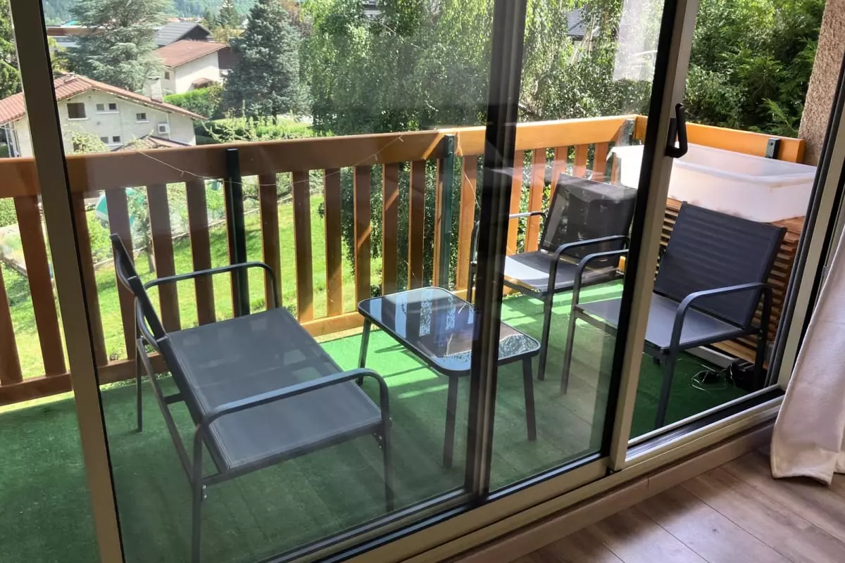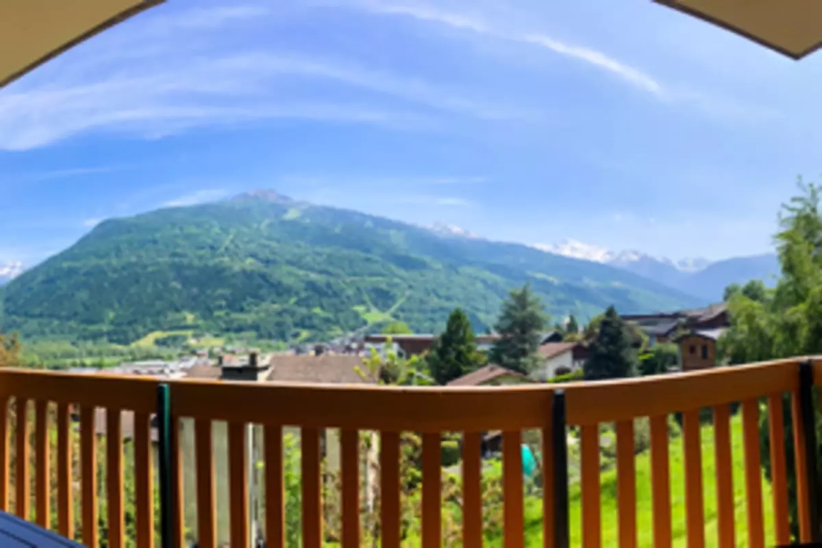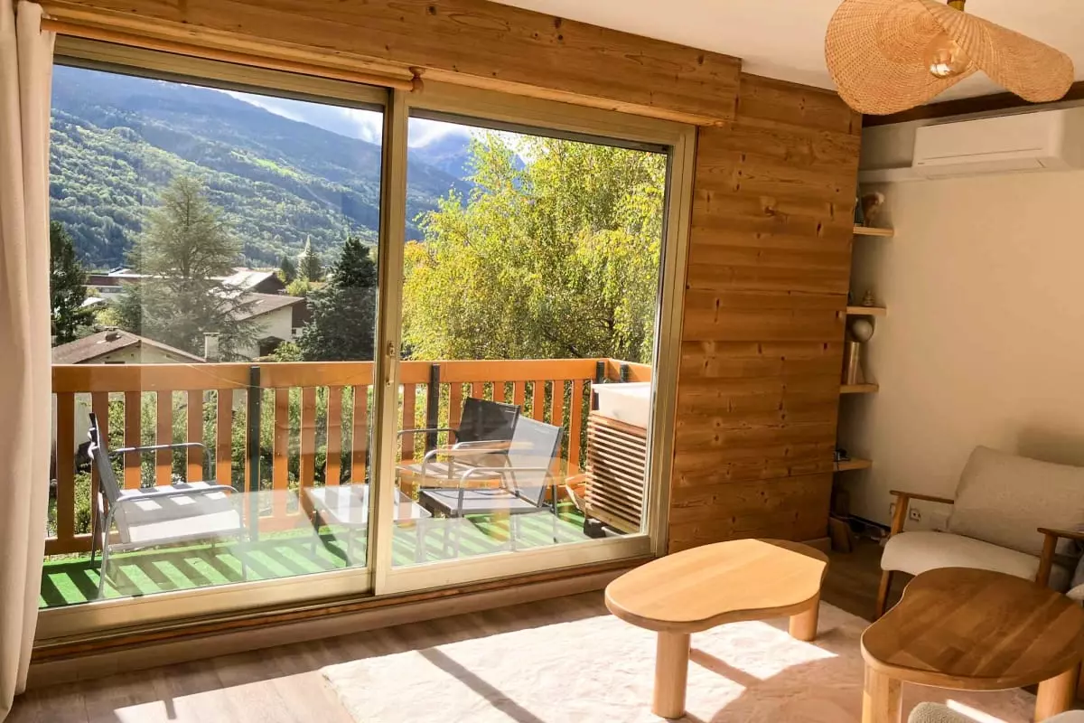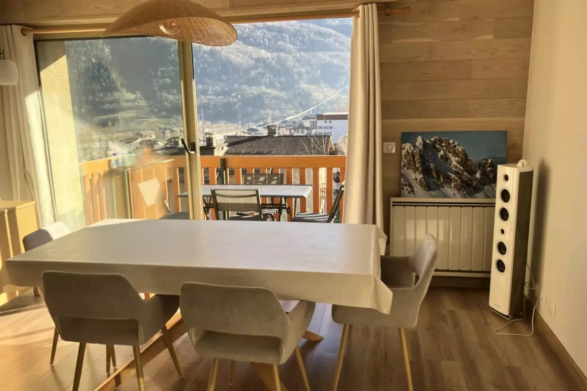 Chaque balcon dispose d’un salon de jardin avec tables et assises confortables, avec magnifique vue à 180 degrés sur Bourg-Saint-Maurice et sa vallée, offrant un appartement lumineux et baigné de soleil toute la journée par les jours de beau temps.