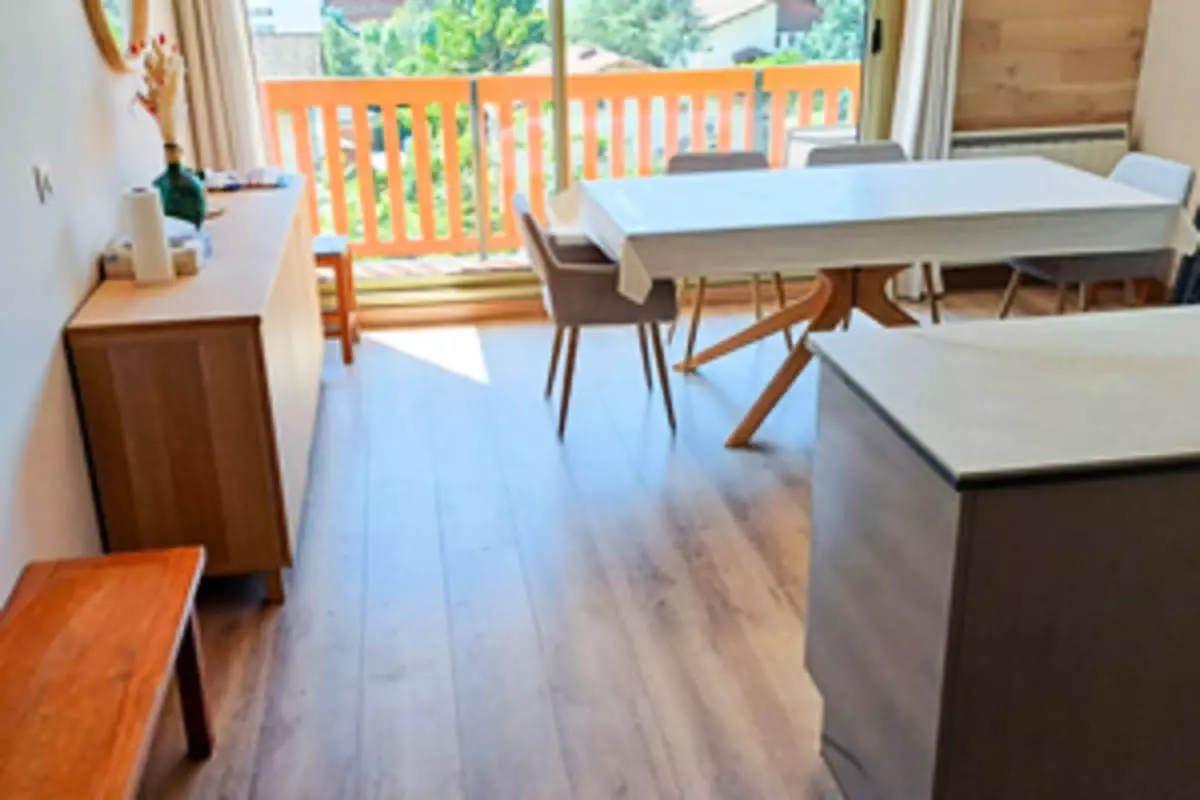 Appartement T4 lumineux de 83 m² avec 2 balcons, idéalement exposé au sud, en rez-de-chaussée. Très calme, sans vis-à-vis, à la fois très fonctionnel et reposant. Pouvant accueillir 6 personnes, il convient parfaitement en famille ou entre amis. Il est composé de :