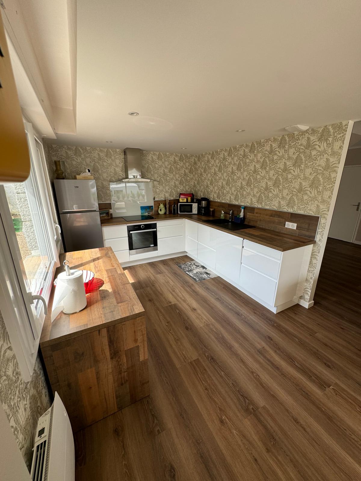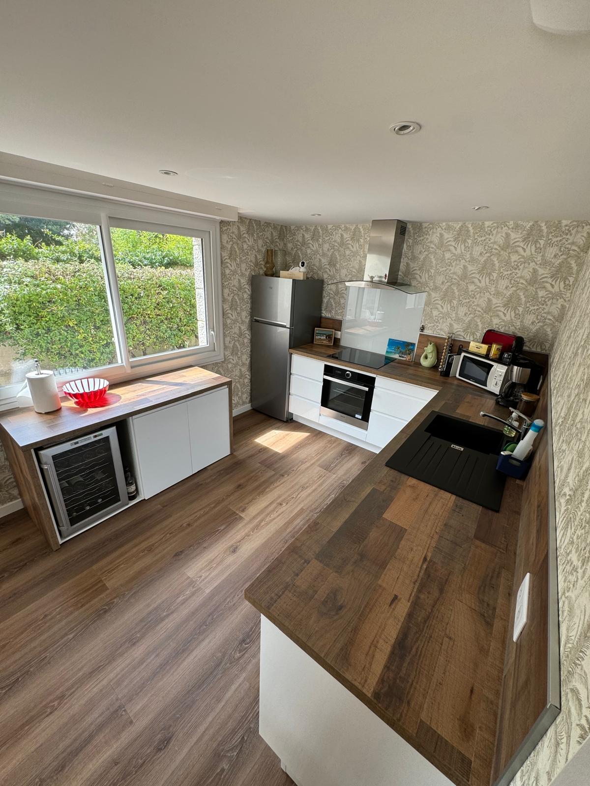 Cuisine entièrement équipée : four, plaques, micro-ondes, lave-vaisselle, cafetière, grand plan de travail
