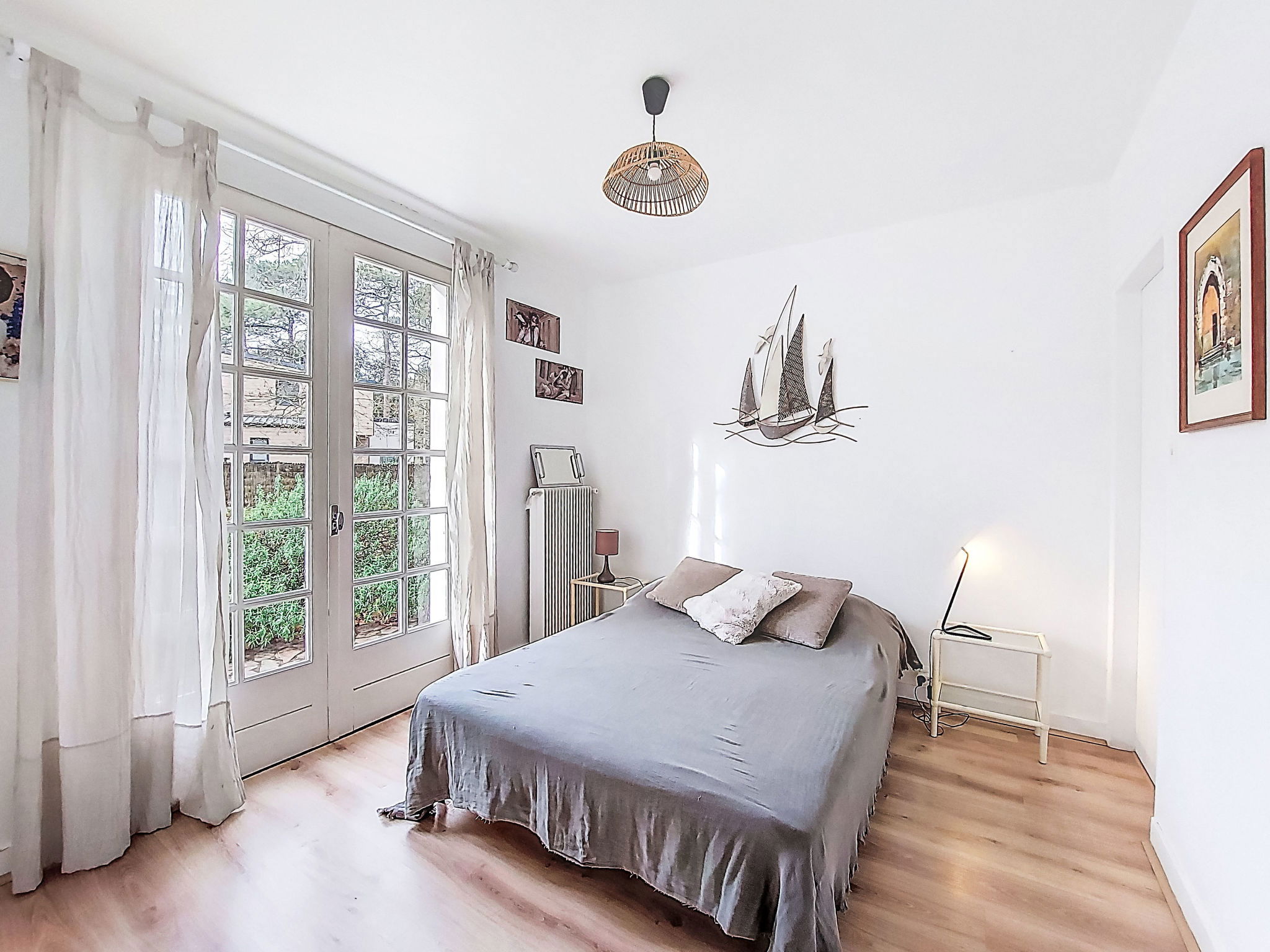 Maison individuelle "Villa Océan et Forêt". À 2 km du centre de Jard sur Mer, situation tranquille dans un quartier résidentiel, à 1 km de la mer, à 1 km de la plage, dans une impasse. A usage privé: terrain à l'état naturel 2'000 m2 (clôturé) avec arbres. Débarras disponible. Place de parking (pour 3 voitures) sur le terrain. Magasins 2 km, supermarché 2 km, arrêt de bus 2 km, plage de sable "Plage de Boisvinet" 2.5 km. Port plaisance 2.5 km, ecole de surf 3.4 km, tennis 1.1 km. Attractions à proximité: Abbaye Royale Notre-Dame du Lieu Dieu 2 km, Plage de sable fin de la Mine 3.4 km, Maison Clémenceau 5.5 km, Plage du Veillon 14 km, Les Sables d'Olonne 20 km, La Rochelle - Ile de Ré 75 km. Région de randonnées: GR8.